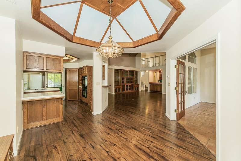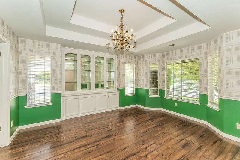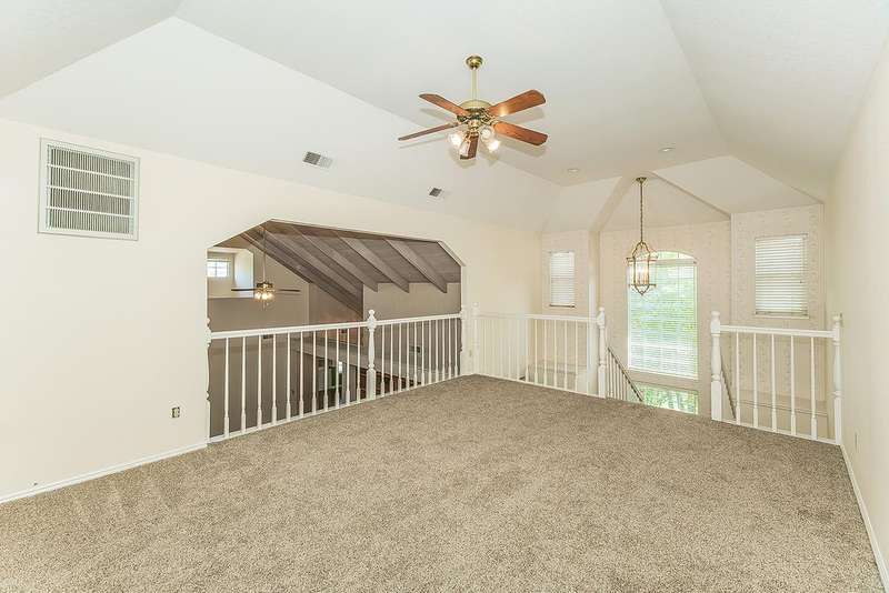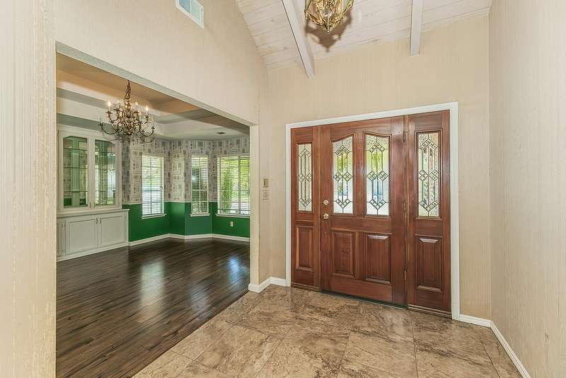 Elegant custom home located in Woodward Lake's highly sought after Mariners Circle. This gorgeous home features a well designed kitchen with island and unique recessed lighting, greatroom is highlighted by a soaring wood beamed ceiling and floor to ceiling brick fireplace, freeformpool w/ adjected in-ground spa, private master suite with two sided fireplace, jetted tub and oversized walk-in closet. Other amenities include: Formal dining room w/ built-in hutch, two patio rooms with double sided fireplace, unique built-in bar, fifth bedroom/office with open design, three car garage, lovely exterior brick veneer, laundry room with tons of cabinets, sink and ironingboard. Neighborhood has private access to Woodward lake community center which offers a club house, fitness center,tennis/pickle ball courts and community events. You will love this amazinghome with its traditional charm.