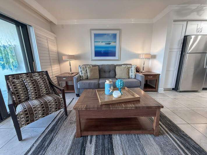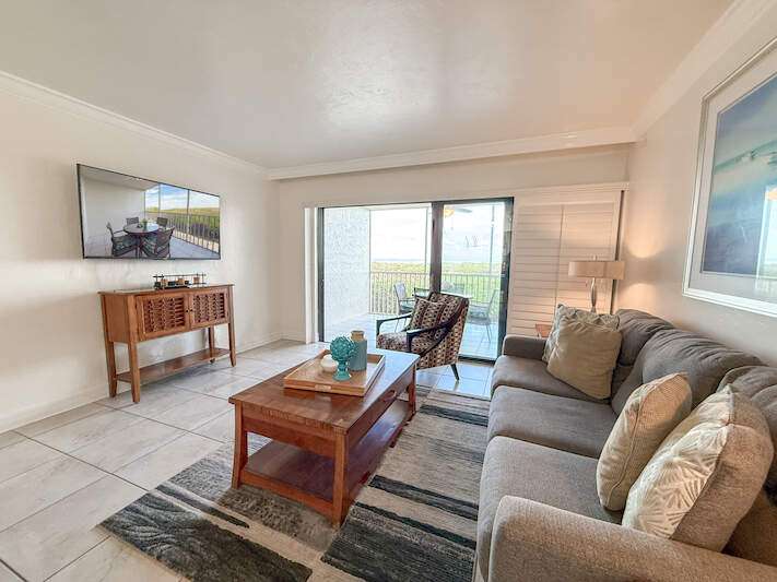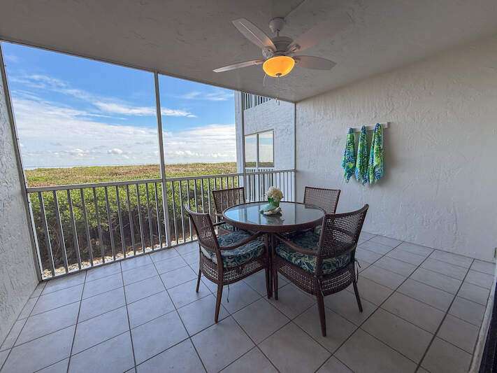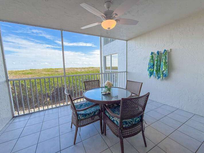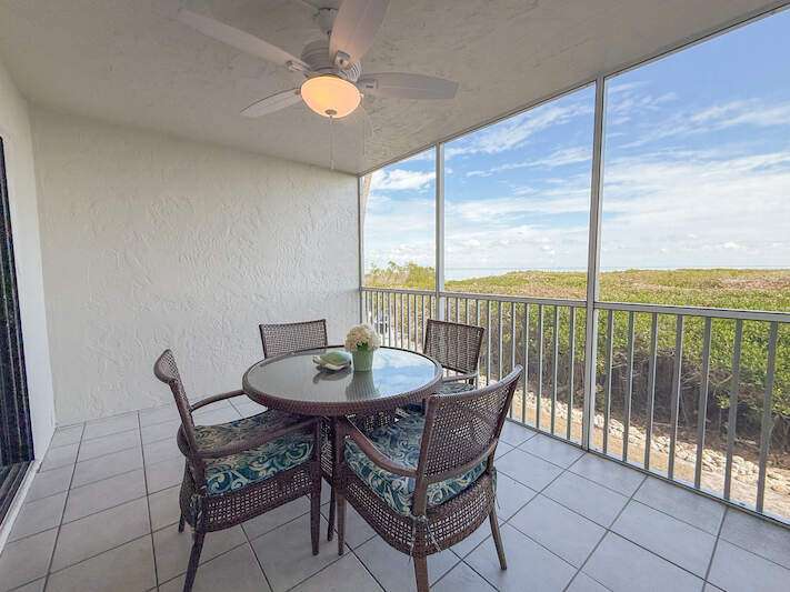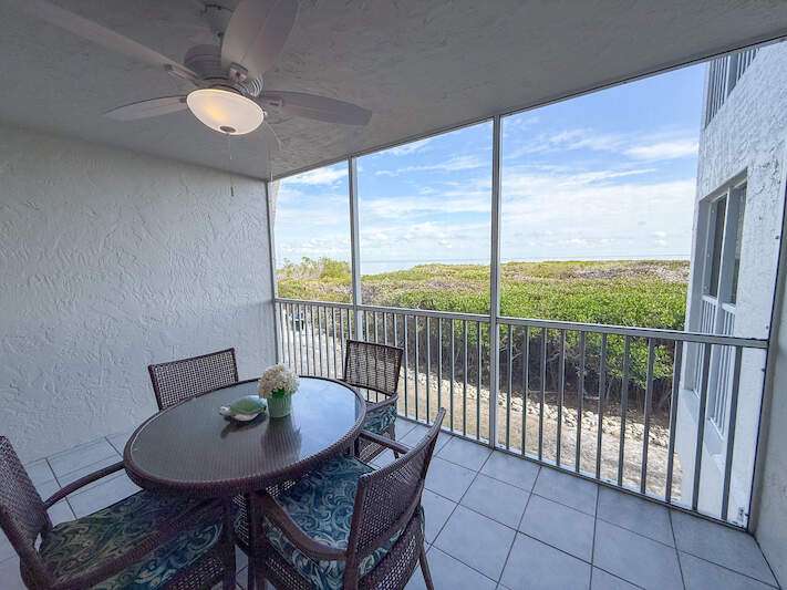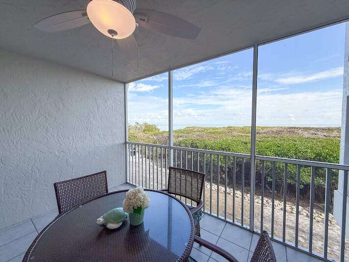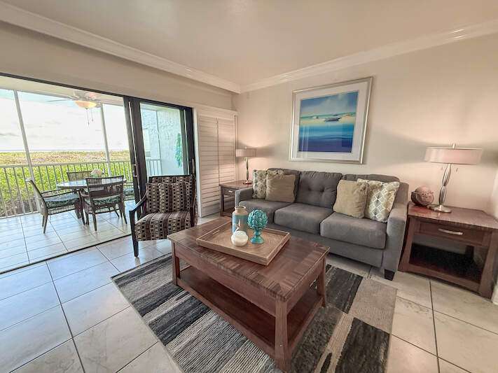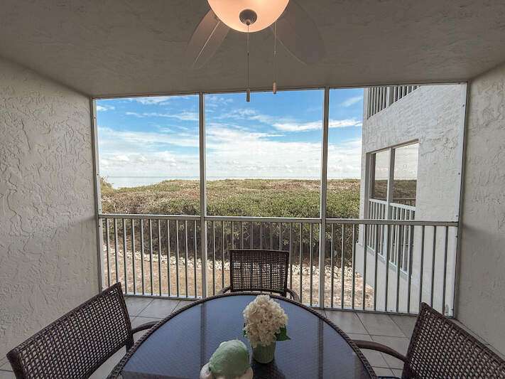 Bayside Bliss! This charming 1-bedroom, 2-bath condo combines comfort, style, and versatility-ideal for personal enjoyment or as an investment opportunity. Situated on the elevated first floor with stunning views of Pine Island Sound, the condo offers a tranquil setting with picturesque scenes of boats, wildlife and more. The interior is thoughtfully designed with coastal-inspired furnishings, creating a bright and inviting atmosphere. The kitchen features granite countertops, shaker-style wood cabinetry, stainless steel appliances, and a spacious double sink. Both bathrooms are appointed with granite vanities and decorative mirrors. Fully furnished and move-in ready, this condo ensures seamless enjoyment. Located in the heart of Captiva, Bayside Villas offers convenient access to the beach, the Village of Captiva, and popular restaurants. Amenities include a pool, spa, under-building parking, and an assigned storage locker, making this property a true gem.