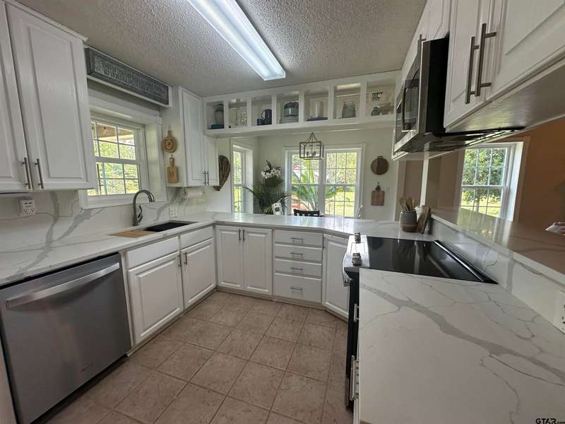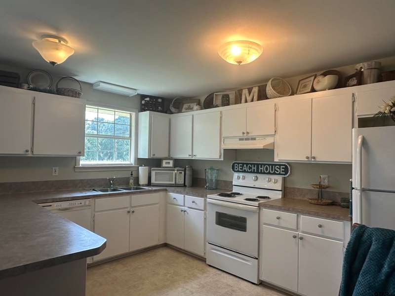 One and a half brick home comes with alot of updates & offers 3B-4B 2 baths with open living and kitchen layout. The spacious living room features a beautiful fireplace with gas logs and large windows overlooking 12.61 acres of countryside. A tiled entry flows all the way to the back door, while the updated kitchen boasts quartz countertops, white painted cabinets, abundant counter space, soft-close drawers, a bkfst bar, cozy breakfast nook & an electric range/oven. Dishwasher (new in 2024) makes this kitchen move in ready. Windows were updated in 2019. Home includes a pantry/utility room combo, plentiful closet storage, ceiling fans & fenced yard. Outdoors you'll find a 15 x 25 open shed, 8 x10 storage garage, 10 x 14 greenhouse with lights and exhaust fan, above ground pool with wood decking. Gorgeous landscaping. Double covered carport. As a bonus the property includes a 1B 1B brick guest house in excellent condition, 900 sq.ft.. It offers a spacious kitchen with ample cabinets & counter space, a utility/pantry combo, large bath with walk in closet and comfortable bedroom. Clean and move in ready. This property is perfect for multi-generational living or rental income.
