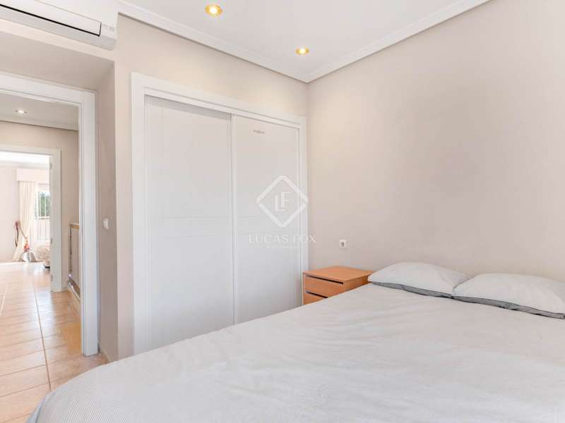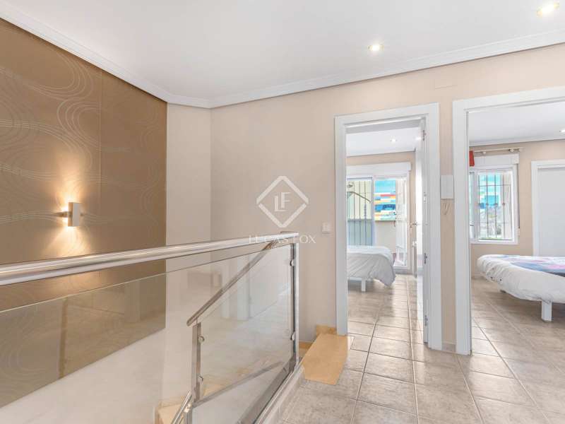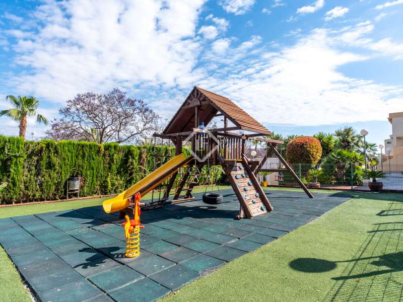 Discover this elegant 3-level townhouse located in the exclusive Alicante Golf area, within a gated residential complex offering top-tier amenities including a swimming pool, multi-sport court, and children’s playground. The ground floor offers a bright, fully equipped kitchen, a spacious living room with direct access to a private terrace boasting open golf course views, a built-in barbecue, and an outdoor dining area. This level also features a dedicated office and a full bathroom. The upper level includes a generous main bedroom suite with an en-suite bathroom and private terrace, plus two additional bedrooms and a shared bathroom. One of the secondary bedrooms also has access to its own terrace. A large secondary living area with natural light is found in the lower ground floor, along with a second office space, a storage room, and a private garage for two cars offer ultimate flexibility and convenience. The property is equipped with city gas heating and air conditioning, ensuring year-round comfort. Just steps away from the Alicante Arena gym, tram and bus stops, and surrounded by restaurants, supermarkets, and all essential services, this is a perfect blend of comfort, style, and location. Please contact us today to schedule a visit and make this beautiful home yours.