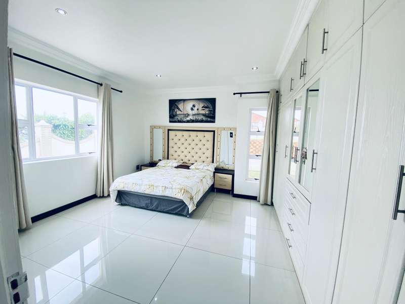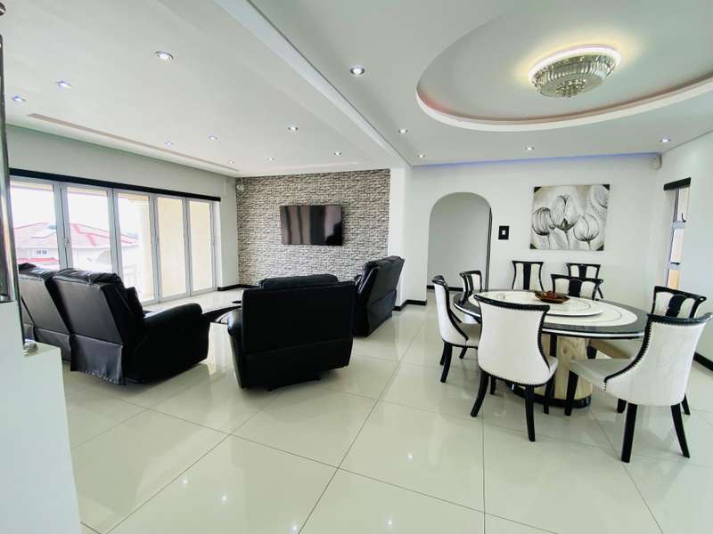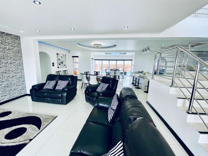 Multi-Level secure Living in Larnaco Estate Prime property listing, positioned on a private stand of Larnaco Estate, overlooking into the sugar can forest and Illovo Beach Ocean views very central setting of the estate A reflection and interpretation merger of earthy tones, clean finishes, inspired by the homes setting, being one with the immediate surroundings, yet maintaining a current architectural trend, of modern farm style living. The high glass foldable doors and features of inviting natural extra light and airflow through this open plan high volume exposed truss ceilings. The main residence presents a defined open plan on one level, contemporary living, leading out onto a large patio and entertainment, pool. Accommodation of 6-bedrooms, 3 upstairs and 3 bedroom on the ground level, en-suite, gathered in a united blend of contemporary coastal and countryside essence, within the larger scheme of a gated estate, providing for a safe family indoor and outdoor lifestyle within the walls of Larnaco. Inside, the residence offers an inviting private TV lounge, an elegant two formal dining room, a tranquil living area, and a versatile meeting room, catering to both relaxation and productivity. At the heart of the home lies a state-of-the-art gourmet kitchen, thoughtfully designed with a separate scullery to ensure effortless meal preparation. The convenience gate control access points restricts congestion and traffic in and out of the estate, affording residents options of use to shopping centres, schooling restaurants, hospitals and much more. Larnaco is a 50 minutes?ÇÖ drive from The International King Shaka Airport off the N2 and a 40-minute drive from Gateway Theatre of Shopping and The Umhlanga business commercial hub.