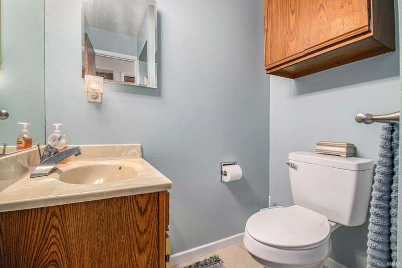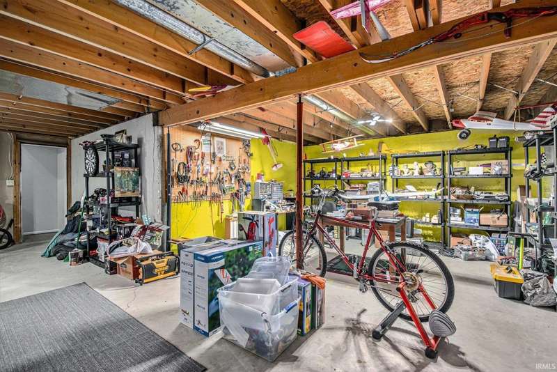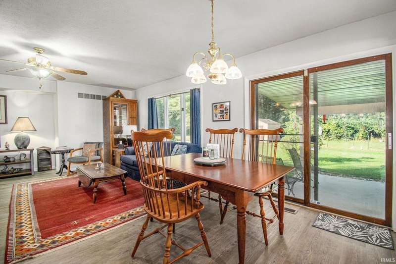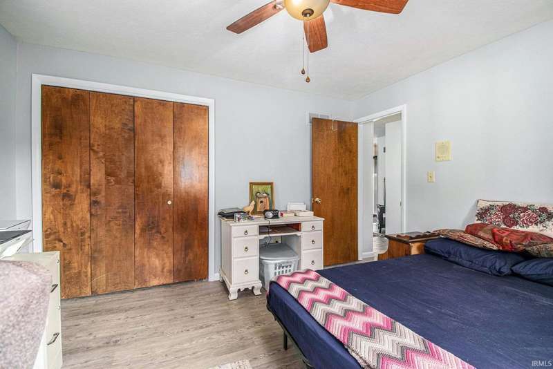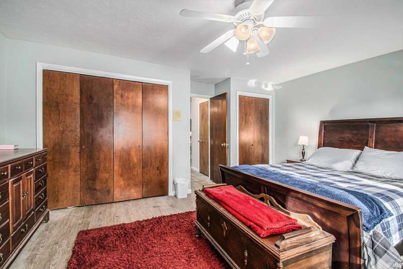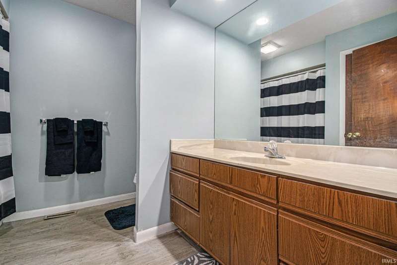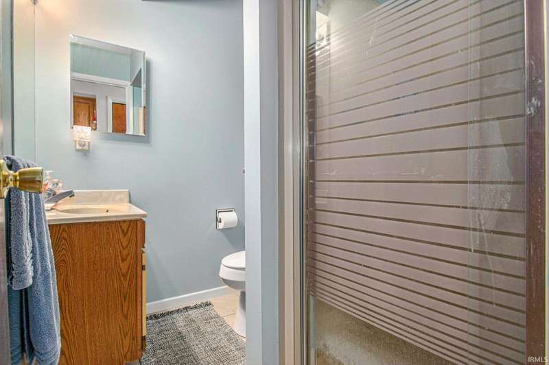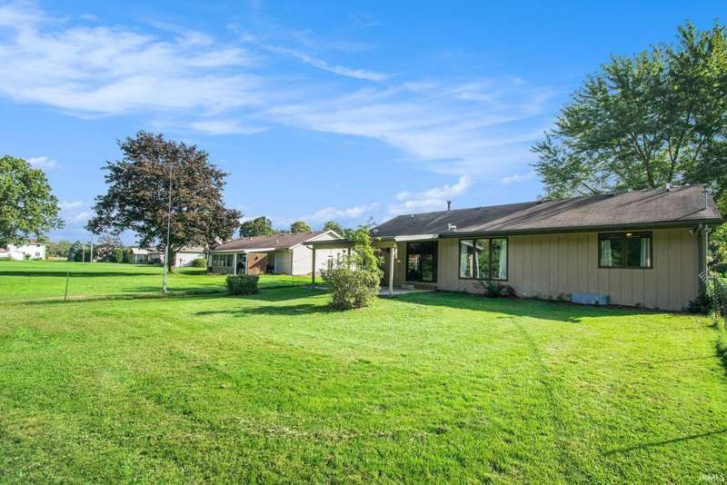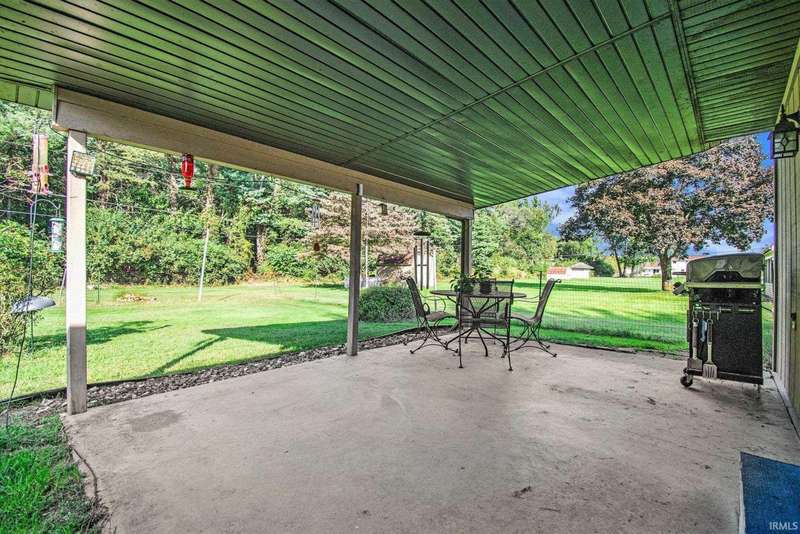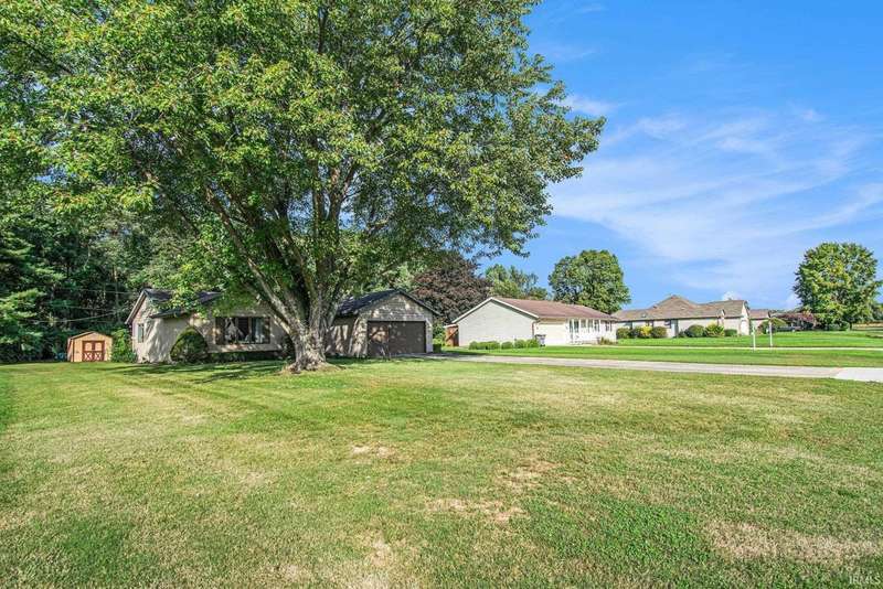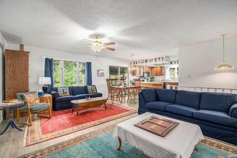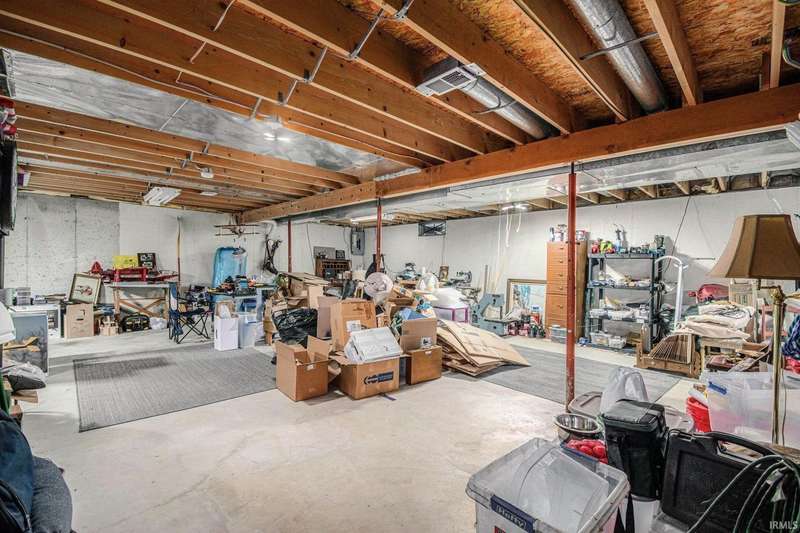 Welcome to this inviting open-concept ranch home perfectly located on the Elkhart/Granger line. Nestled on a large lot offering privacy and space, this home features two generously sized bedrooms and two full bathrooms. The main level showcases updated flooring and a seamless flow between the kitchen and living area, creating a bright and spacious feel. Enjoy the convenience of main level laundry complete with a utility sink, and step outside to a covered porch overlooking the private backyard. An open rail staircase leads to a large unfinished basement- ready for your personal touch and endless possibilities. Completing the home is a large two car garage, making this property both comfortable and functional.