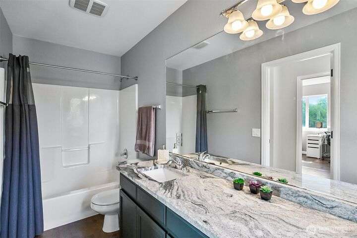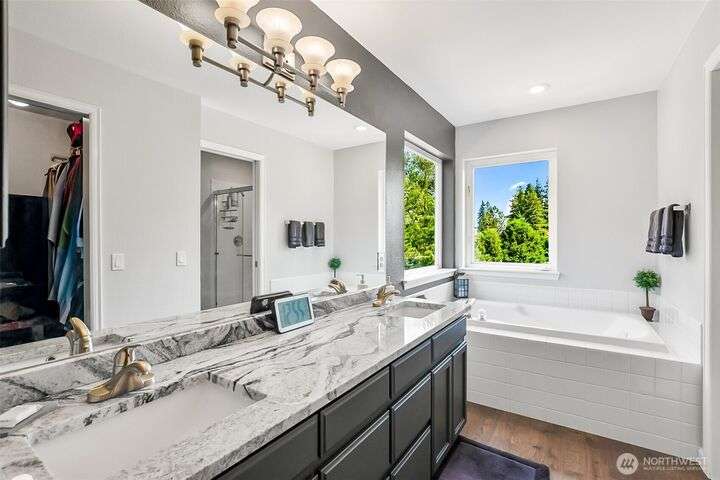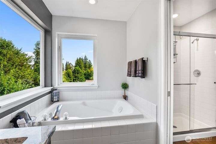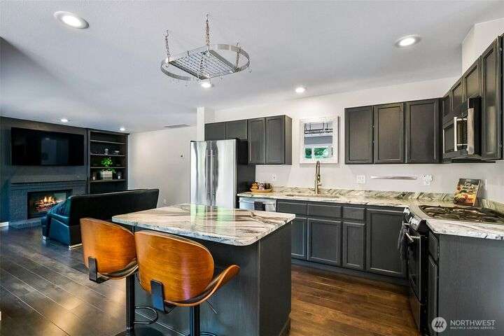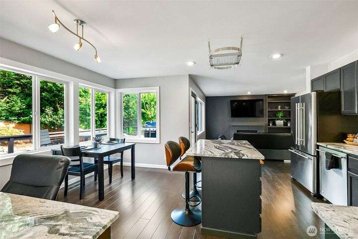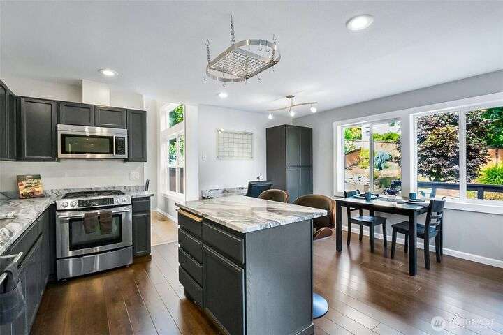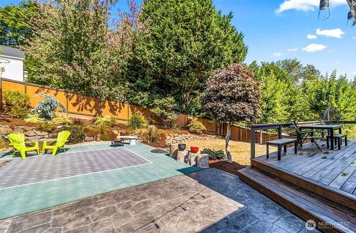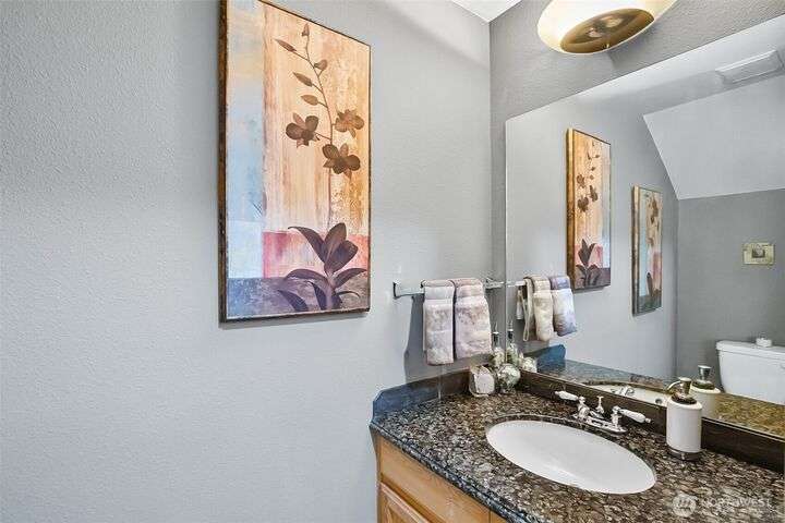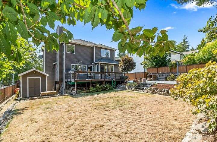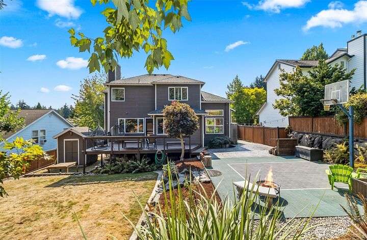 Discover this inviting Finn Hill two-story with 3 spacious bedrooms and a thoughtful layout. The main level is ideal for entertaining, with dining spaces flowing into the updated kitchen featuring granite countertops and island, stainless steel appliances, and a family room with cozy gas fireplace or access to the deck for outdoor gatherings. Vaulted ceilings and updated flooring add modern appeal. Upstairs, the primary suite offers a spa-like 5-piece bath with walk in closet, plus 2 additional bedrooms. Enjoy the oversized deck, sport court, fenced backyard, and storage shed. Conveniently located on a quiet cul-de-sac. Close to top-rated Lake Washington schools, parks, trails, and all that Kirkland has to offer.