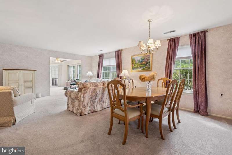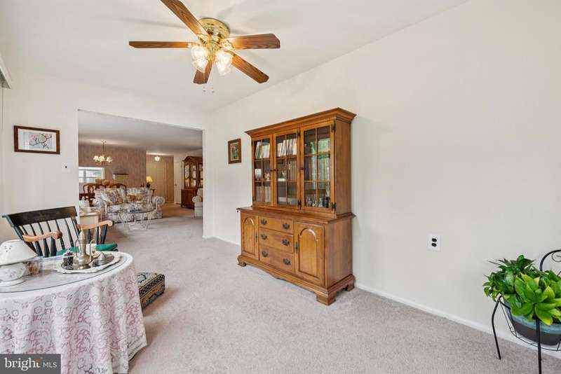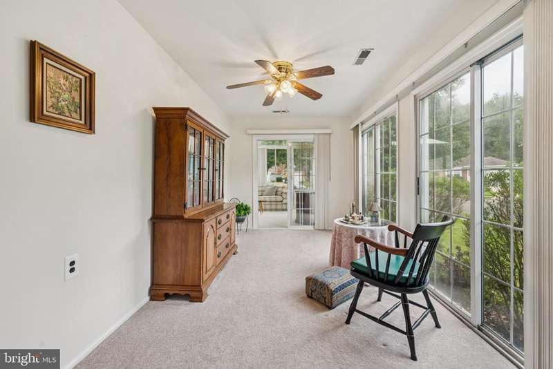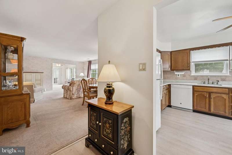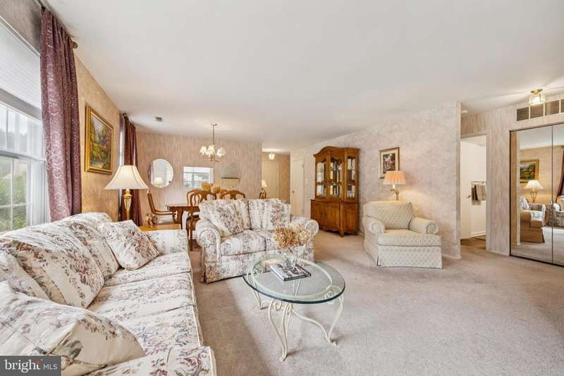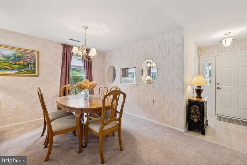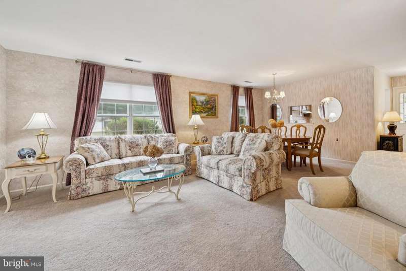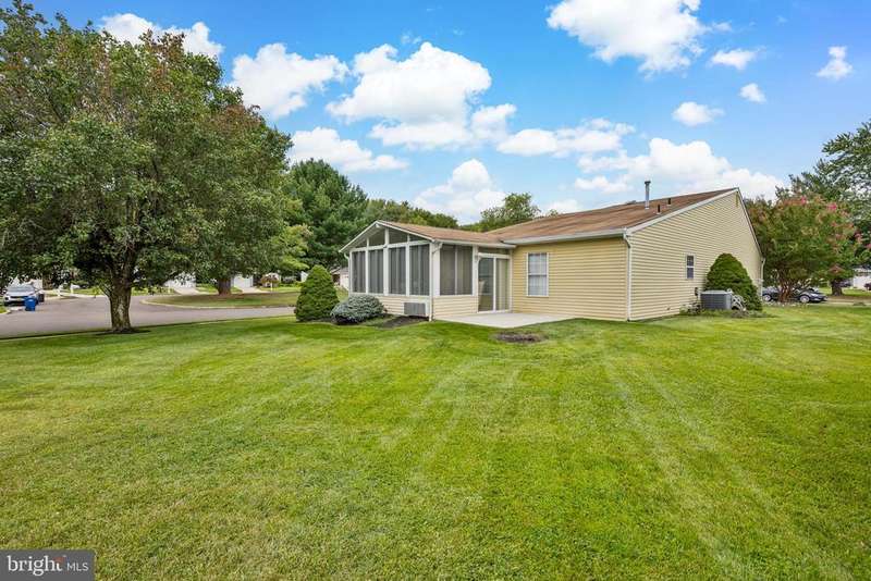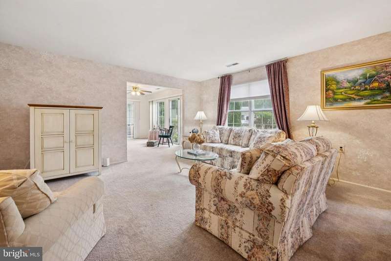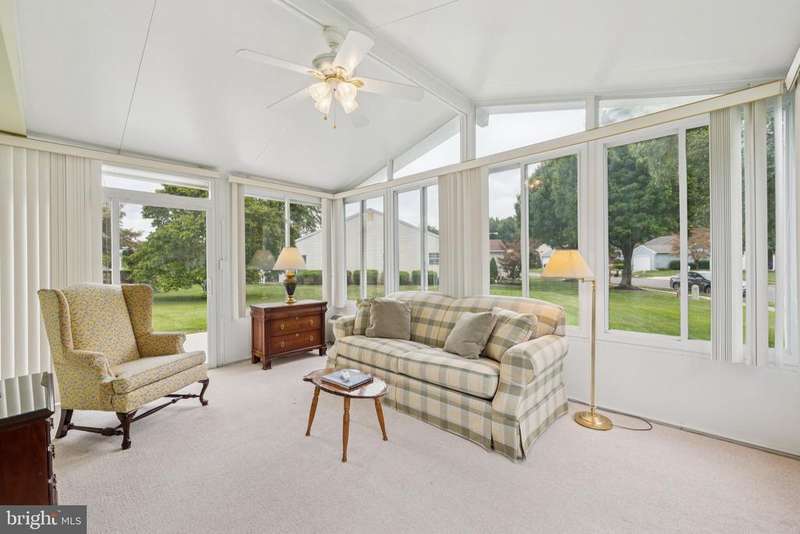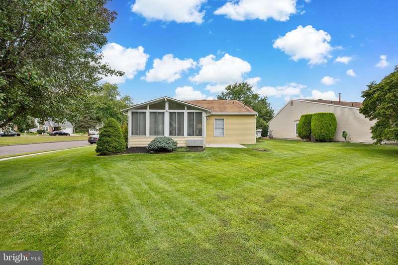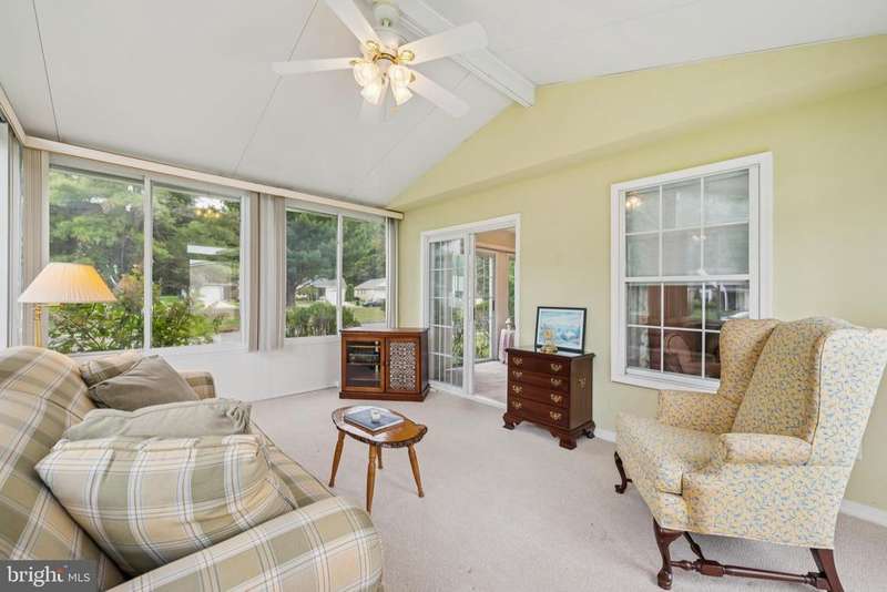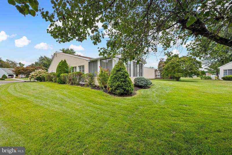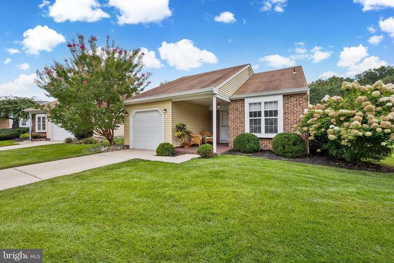 Welcome to 1 Carson Court in the desirable Holiday Village, a 55+ community. This Madison model offers 2 bedrooms, 2 full bathrooms, and thoughtful updates throughout. The eat-in kitchen features luxury vinyl plank flooring, granite countertops, tile backsplash, a quartz antimicrobial sink with upgraded faucet, and refreshed cabinetry with new hardware. The spacious Living Room/Dining Room combination has newer carpet, ceiling fans, and plenty of natural light. From here, step into the inviting sunroom with two sliding doors, ceiling fan with light, and entry to a rare Family Room addition. This bright and airy space offers cathedral ceilings, Berber carpeting, blinds on three walls of windows, and a door to the back patioproviding extra living space not typically found in this model. The carpeted primary bedroom includes a walk-in closet with shelving and light, and a private ensuite bath with LVP flooring, custom vanity with marble top and soft-close drawers, chair-height toilet, grab-bar features, and a shower with heat lamp and fan. The hall bath offers a marble-top vanity, tub/shower with handheld sprayer, upgraded faucet, chair-height toilet, and grab bar. A large linen closet is conveniently located in the hallway. Bedroom #2 is light-filled with newer carpet and ample closet space. The utility room includes a washer and dryer, while the attached garage provides inside access, an automatic opener, pull-down stairs, and a partially floored attic. Enjoy the beautifully landscaped yard, paved front porch, and wonderful location within the community. With pools, clubhouse, social activities, and a prime Mt. Laurel setting, this home is move-in ready and offers both comfort and convenience.
