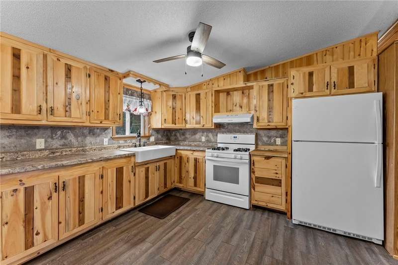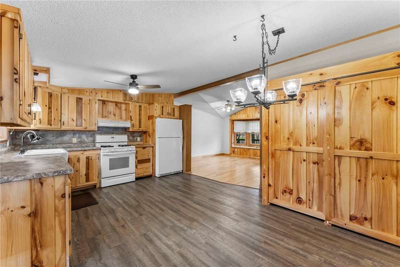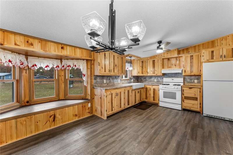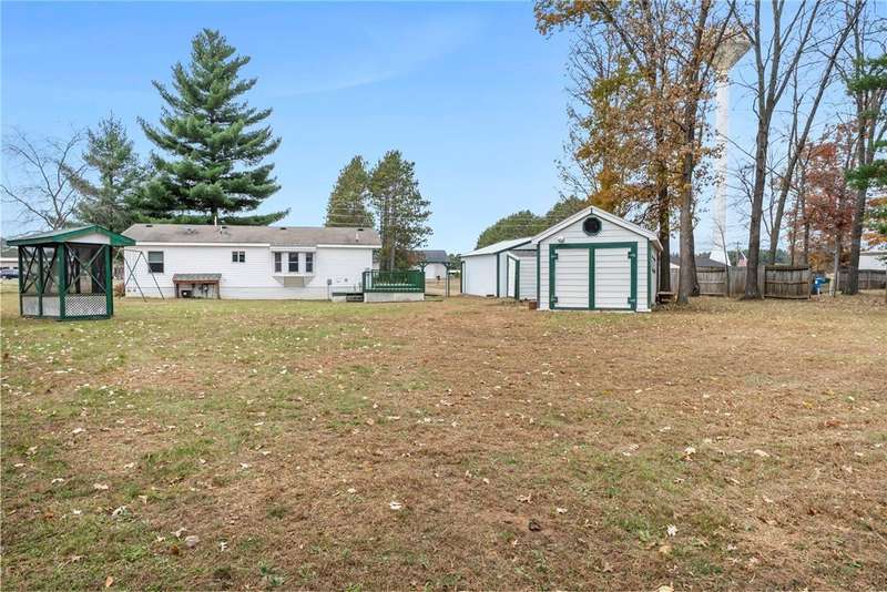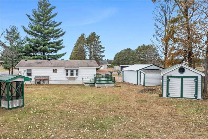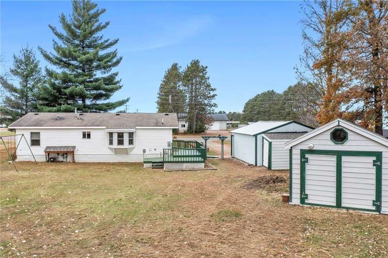 Welcome home to this beautifully maintained 3BR/2BA home on a spacious .53-acre lot in the village of Grantsburg! Enjoy the ease of single-level living with an open layout and warm wood accents throughout. The living room offers vaulted ceilings and a bay window that fills the space with natural light. The kitchen stands out with solid pine cabinets, a farmhouse sink, and a large dining area with another bay window. Features include big closets, modern lighting, and all windows replaced within the last 10 years. Outside, enjoy a huge front deck with ramp access, a 24x22 2-car garage with a steel roof, and a 32x12 heated workshop-perfect for hobbies or extra storage. The backyard offers plenty of space for entertaining, gardening, or simply relaxing under the trees. Convenient in-town location near schools, parks, and shopping makes this property a must-see!