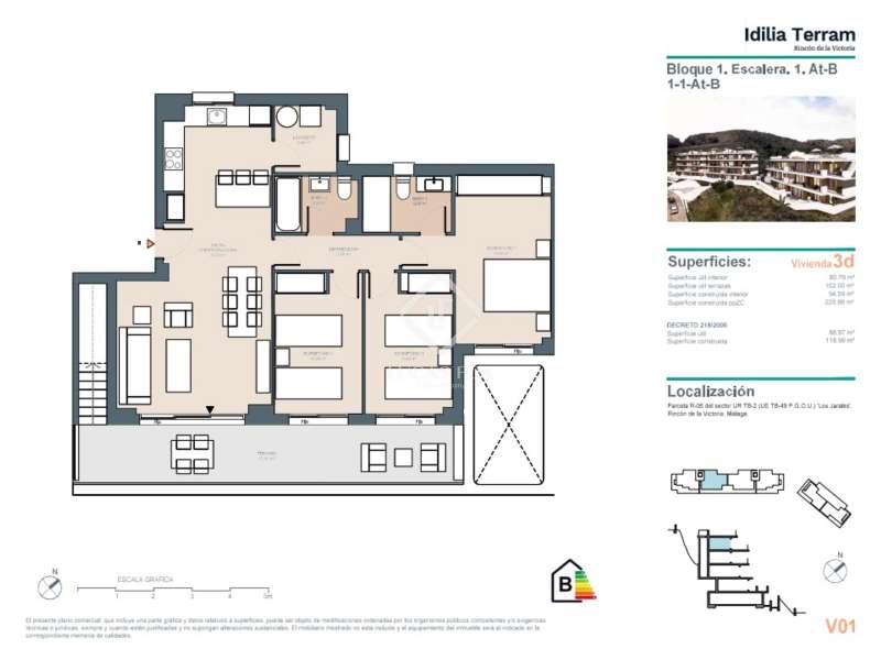 The Idilia Terram new build development is located in Rincón de la Victoria, a magnificent coastal location surrounded by nature. The development offers great accessibility and has avant-garde architecture. Thanks to its exclusive location, Idilia Terram offers incredible sea views and is located a short distance from the beach; all this without giving up proximity to all the city's amenities . This penthouse in Idilia Terram is distinguished by its modernity, spaciousness, functionality and exceptional qualities. Upon entering, we find ourselves directly in the day area , which offers an open-plan living-dining room with the open kitchen on one side. The kitchen connects with the utility room, while the living room has access to a wonderful terrace with impressive panoramic views of the sea. After crossing the day area, the night area is available, with two double bedrooms, a guest bathroom and the incredible main bedroom with a private bathroom and dressing room. The night area also has access to the terrace. The terrace benefits from impressive sea views and various enjoyment areas , such as the chill-out area or the exterior dining room . Finally, some stairs on the terrace lead us to the roof terrace, with a solarium area, perfect for placing hammocks. In addition, the property includes a garage and storage room room. The apartment has a series of features to offer total comfort in your daily life. The property includes a fully equipped kitchen with Bosch appliances , from a ceramic hob, oven and refrigerator to a dishwasher and washing machine. In addition, the LED lights in various rooms and the underfloor heating throughout the space, together with the aerothermics, provide a comfortable and efficient environment. As an exceptional novelty, the Select service is offered, where the new owner can choose between different types of environments according to their tastes, allowing them to further personalize their property at Idilia Terram. The development offers a series of neatly maintained community areas that offer a space to disconnect and relax, such as garden areas , small squares or the pool with a viewing point. The Idilia Terram pool, which crowns this complex, occupies a strategic position with views of the sea. Idilia Terram offers you a quiet and private environment, while also close to the city of Malaga and other communities. Malaga offers countless cultural and entertainment activities throughout the year, from renowned restaurants to internationally famous museums, film festivals, musical events such as the Starlite, parks and exquisite shopping experiences. On the other hand, the development is close to the main communication routes, such as the A7 motorway and the N340a, as well as the Malaga international airport and the AVE train station, making connections very practical. The centre of Málaga, the El Candado sailing club, Añoreta Golf and the Montes de Málaga natural park complete the entertainment options around Idilia Terram. Get in touch for more information.