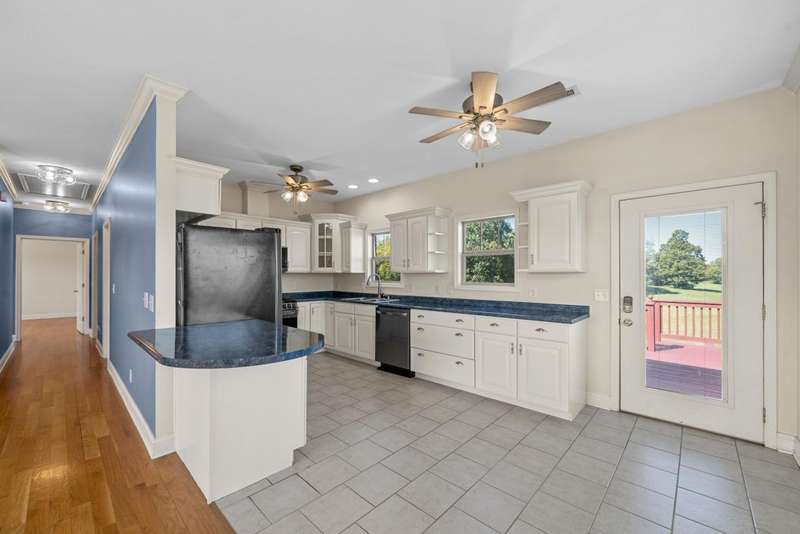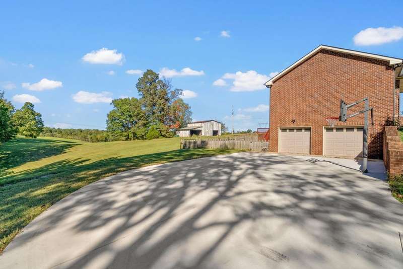 Escape to peaceful country living on over 18 acres of mostly level land in Montgomery County with no HOA and only county taxes. This all-brick 3-bedroom, 3-bath home offers more than 1,900 square feet of comfortable living space with a two-car garage, detached barn, and plenty of outdoor space to enjoy. Inside, you'll find beautiful hardwood floors, new updates throughout, and two fireplaces that create a warm and inviting feel. The country kitchen features white cabinetry, new flooring, and ample counter space, opening into a bright dining area and spacious living room filled with natural light. The primary suite includes hardwood flooring, generous closets, and a clawfoot tub with scenic views. The finished basement adds flexible living space with a second fireplace, full bath, and walk-out access-ideal for guests, a recreation room, or in-law suite. Outside, enjoy a covered front porch, two back decks, a new concrete driveway, and a fenced yard perfect for pets or entertaining. With its septic system, detached barn, and open acreage, this property offers endless opportunities for hobby farming, outdoor recreation, or simply enjoying a private retreat just minutes from Clarksville and Fort Campbell.