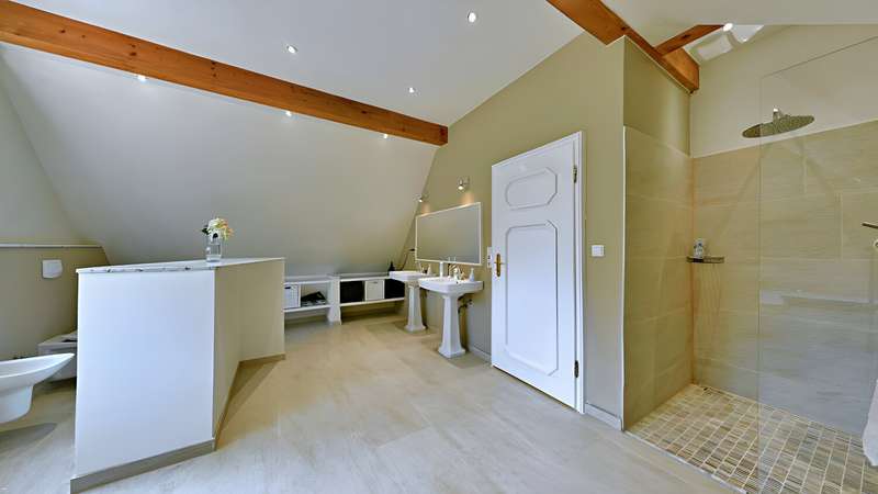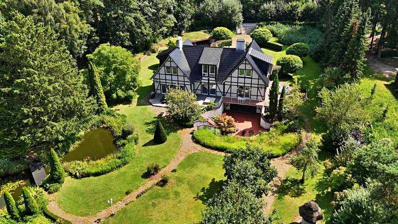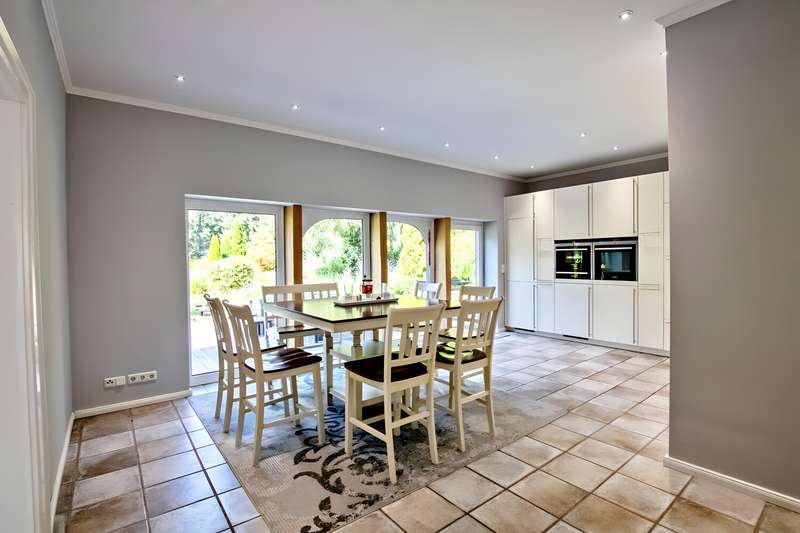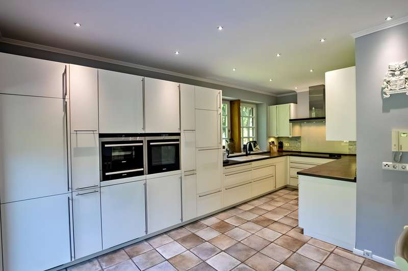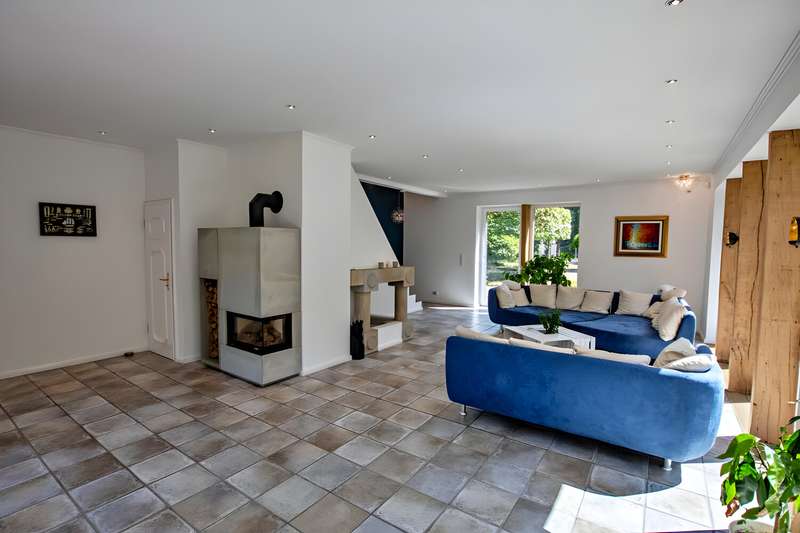 This exclusive detached house is situated on a spacious plot of approx. 6,536 m² and offers a living space of around 266.2 m², spread over a total of 10 rooms. Built in 1984, the building has been extensively modernized and impresses with its attractive, high-quality furnishings that meet the highest standards. As soon as you enter the house, you are greeted by a light-flooded entrance area. The room layout offers ideal possibilities for families: five bedrooms are available, which can be used individually. Four modern bathrooms offer comfort and functionality at the highest level. The bright living area is the focal point of the house, with floor-to-ceiling windows offering views of the property. A highlight here is the recently installed stove, which spreads a cozy warmth. The open-plan kitchen with high-quality, integrated electrical appliances has a timeless design. The kitchen area offers plenty of space for cooking and eating. The adjoining dining room is ideal for formal occasions. The private wellness area of the house is particularly noteworthy. A spacious swimming pool with waterfall and cold pool awaits you here. An open fireplace also creates a special atmosphere here. The wellness area is ideal for relaxing and unwinding after a long day. The furnishings are impressive with details such as extensive underfloor heating. Triple-glazed windows with safety glass not only provide excellent sound insulation, but also a high level of security, which is further enhanced by an installed alarm system. The fully fenced property, which is around two meters high, guarantees privacy and security. The spacious outdoor areas offer a variety of design options: from generous play areas and individually usable garden areas to relaxing on the terrace near the pool area. A carport with four parking spaces is available for your vehicles. The property can also be watered via the sprinkler system. This property combines sophisticated living culture with intelligent furnishing details and a high-quality building fabric. The location provides excellent connections to various infrastructures, while at the same time you can enjoy quality living in absolute privacy. See the benefits of this special detached house for yourself and arrange a personal viewing appointment. We will be happy to provide you with further information and answer any questions you may have.
