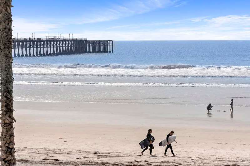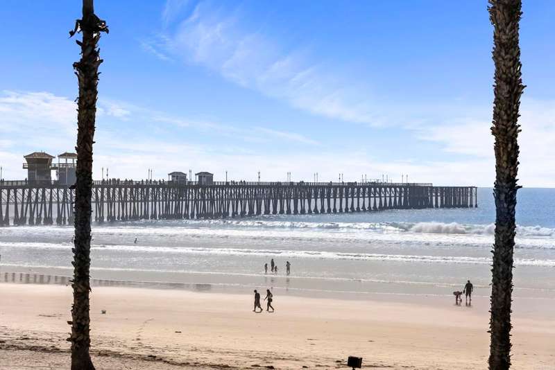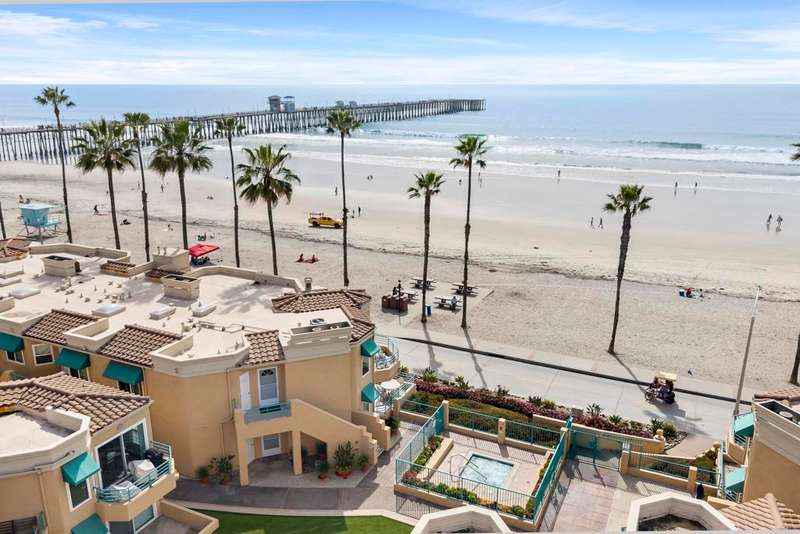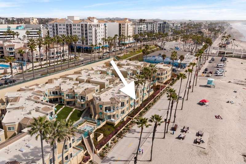 Experience breathtaking front-row coastal living at 400 N The Strand #27--a beachfront gem in the coveted San Miguel III community. This rare ground-level unit offers no-stairs access, making beachside living both luxurious and effortless. Enjoy panoramic white water ocean views and the soothing sound of waves from the comfort of home! Inside, the condo features fresh paint and tastefully updated bathrooms, creating a clean and modern coastal vibe. The open-concept living space is filled with natural light and opens directly onto an ocean-view patio--perfect for dining al fresco or soaking in the sunsets over the Pacific. As evening falls, take in the magical sight of the Oceanside Pier glowing against the night sky--an unforgettable view right from your living room or patio. The spacious primary bedroom features a walk-in closet and dual sink vanity. Additional highlights include in-unit laundry, a cozy fireplace, and two assigned underground parking spaces in a gated garage with elevator access. Ideally located just a short stroll from the Oceanside Pier, marina, and vibrant downtown, this home puts you steps away from Oceanside's best dining, coffee shops, and boutique shopping. San Miguel III is a well-maintained beachfront community featuring two spas, beautifully landscaped grounds, and multiple access points to the sand. Whether you're looking for a peaceful beachfront escape or an unbeatable location to enjoy all that Oceanside has to offer, this is your chance to own a front-row seat to Southern California's iconic coastline.