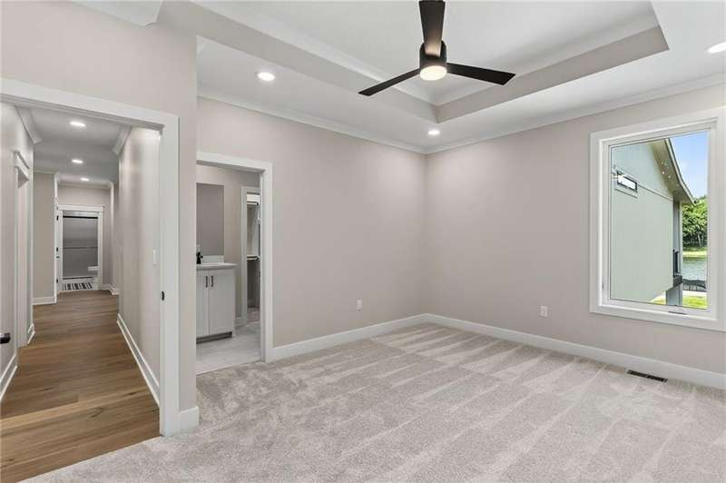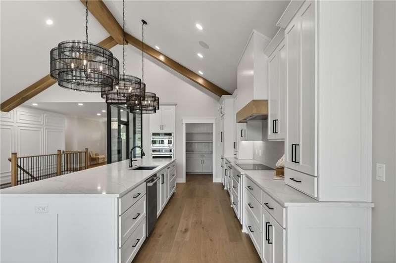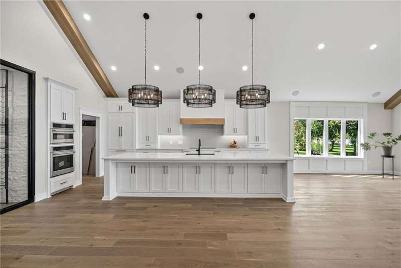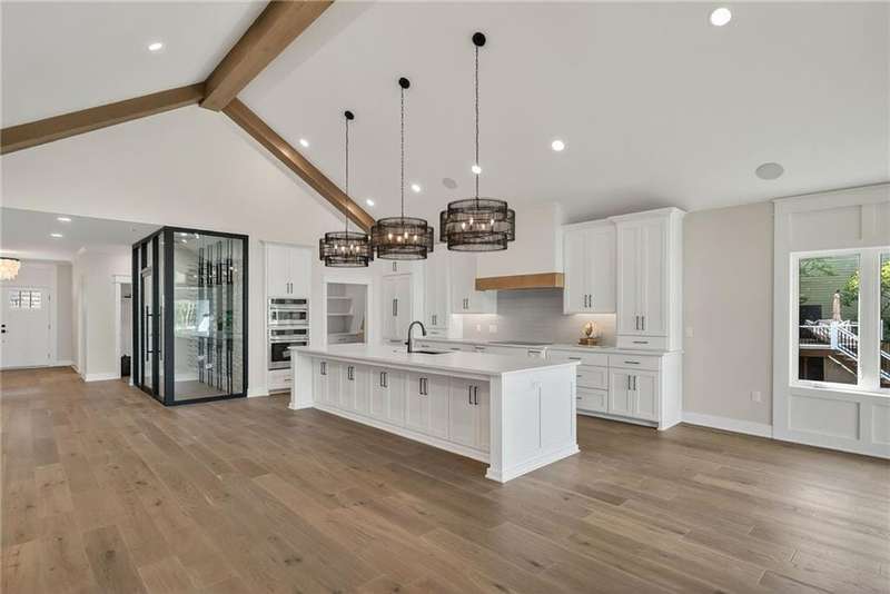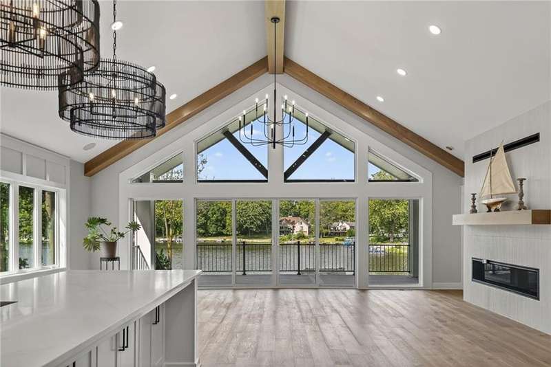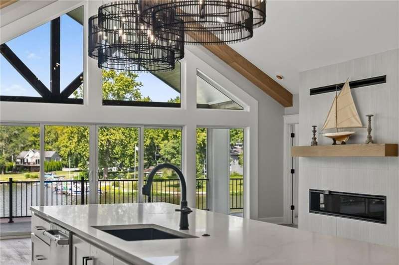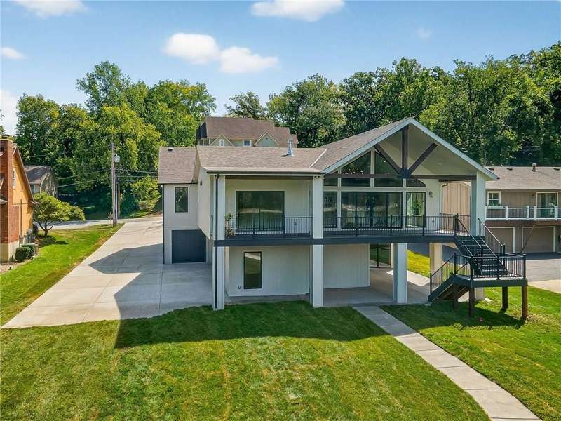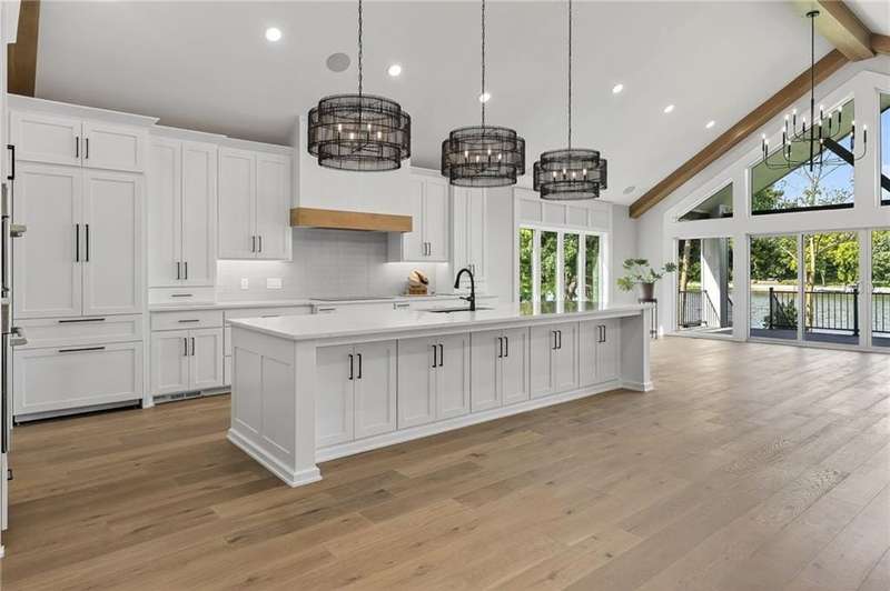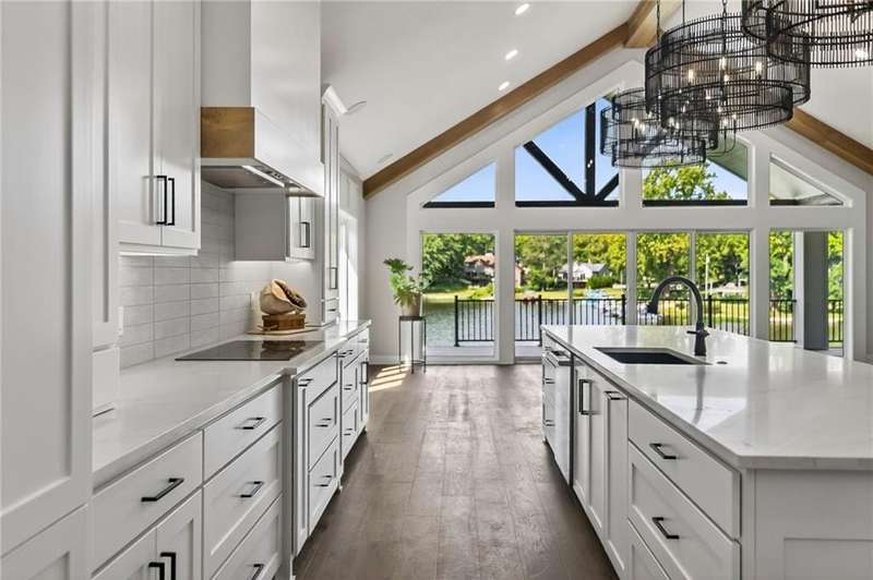 Wake Up Every Day to delicious Water Views in this brand new, never occupied luxury lakefront home at Weatherby Lake! This extraordinary 4-bedroom, 5.1-bath residence combines modern design, top-of-the-line finishes, with breathtaking water views. All bedrooms are conveniently located on the main level, creating both comfort and ease of living. The heart of the home is the dramatic great room and kitchen with vaulted ceilings, featuring an impressive 15-foot island, premium cabinetry, professional-grade appliances including an induction stove top, and a back kitchen/scullery pantry area for seamless entertaining and ease of lake living.Wine enthusiasts will love the temperature-controlled display holding 168 bottles, designed as both a showcase and functional cellar. It looks like a piece of art. Outdoors, a flat lakefront lot with a private dock makes boating and lake activities effortless. The 4-car garage with showroom-quality epoxy floors provides space for vehicles, storage, and hobbies. Built with care and precision, this home is equipped with a Bosch HVAC system for efficiency and a tankless water heater for your comfort.Offering unmatched quality and lifestyle, this property represents a rare opportunity to own a brand new waterfront estate at Weatherby Lakeperfect for entertaining, relaxing, and enjoying the beauty of lake front living.Designed for Entertaining, Crafted for Lake living. Experience the fantastic community with many options to participate from boating, kayaking, paddle boarding, swimming, sailing, Jr. Sailing, and the many Clubs. Come see it today! Move in ready and a truly one of a kind property.