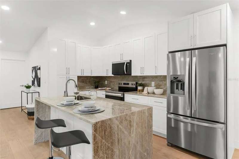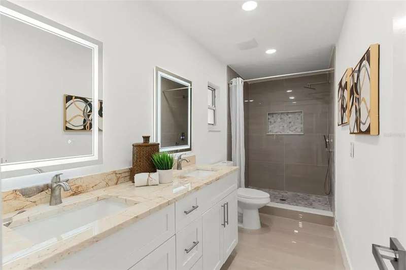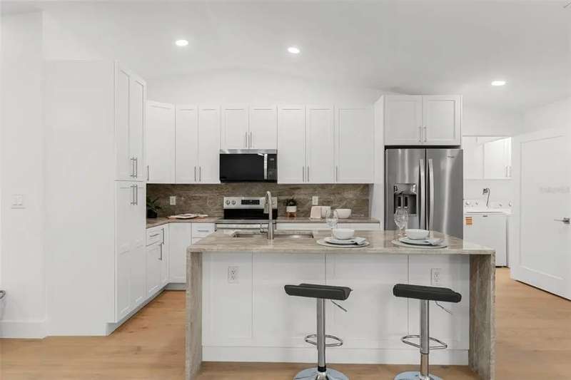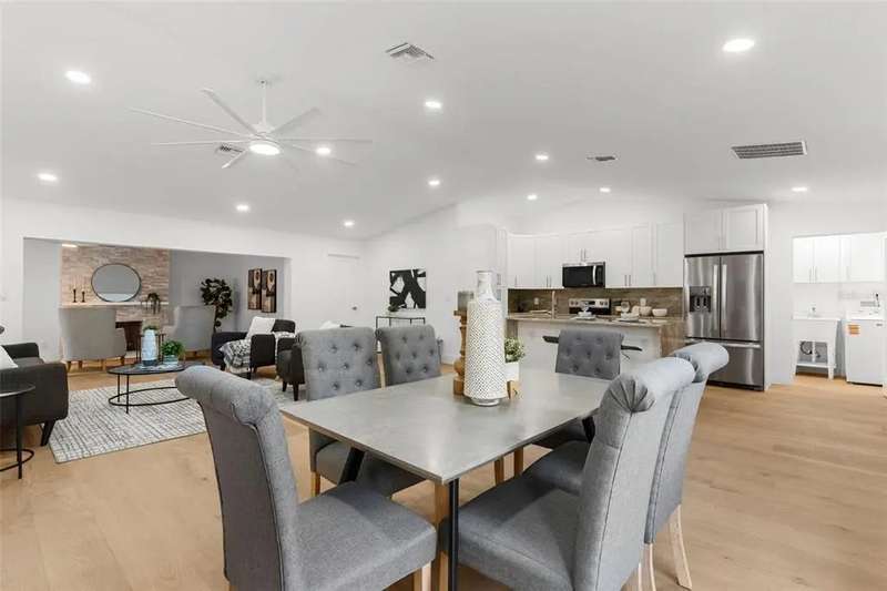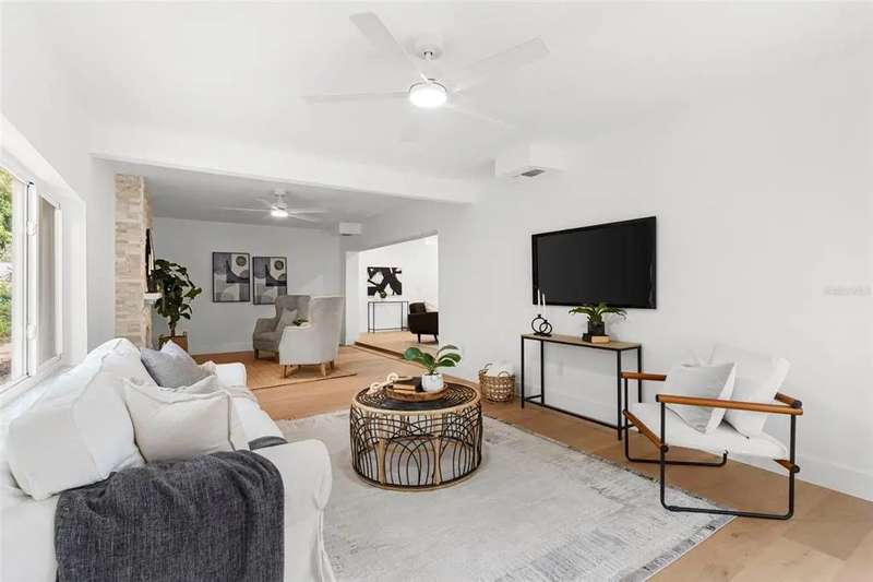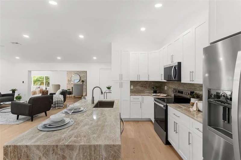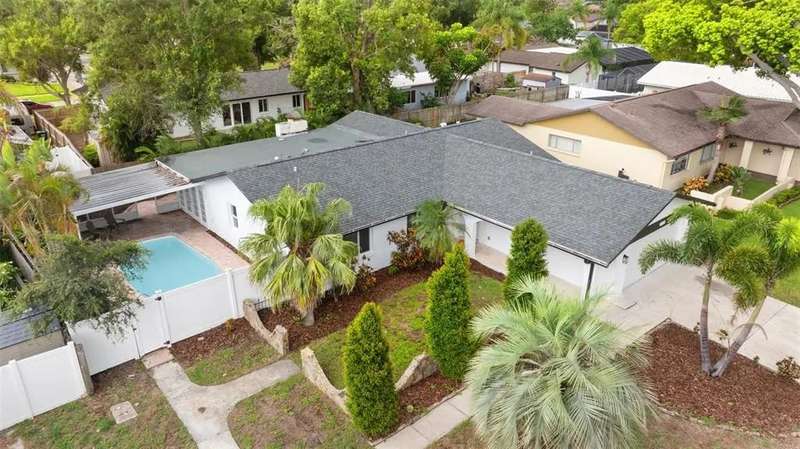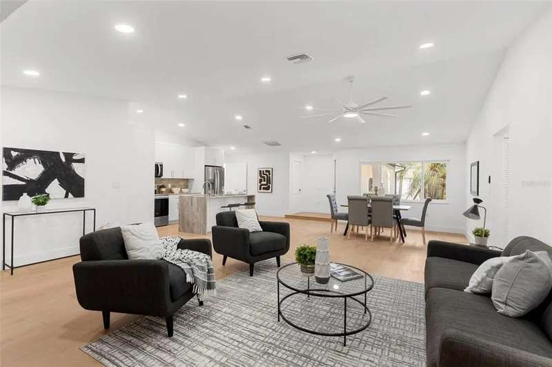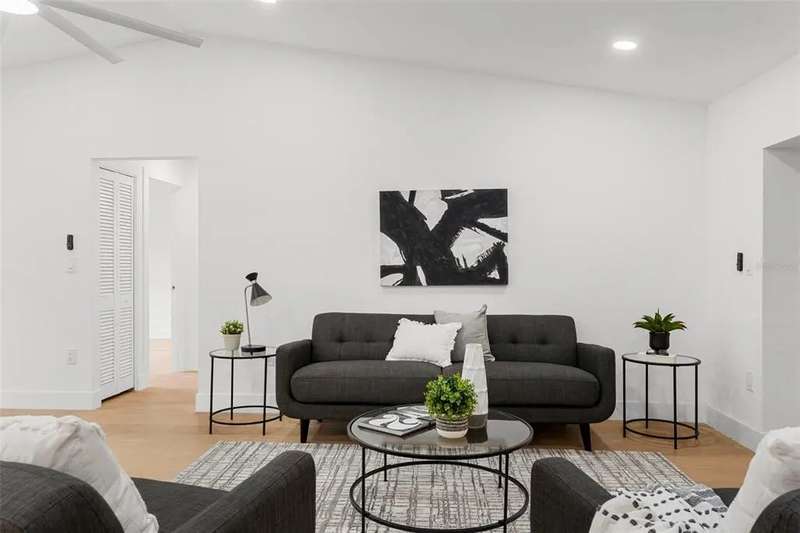 Located in the highly desirable neighborhood of Seminole Grove, on a quiet street just blocks from the Pinellas Bike Trail, this stunning 3-bedroom, 2-bath home with a 2 car garage offers nearly 2,000 square feet of comfortable, family-friendly living space that has been thoughtfully updated! The landscaped backyard features a large private pool and patio—ideal for relaxing or hosting guests year-round—and flows seamlessly into the living space, where vaulted ceilings and a light-filled open layout create an inviting atmosphere. Unique details like white oak hardwood floors and a beautiful stone fireplace in the bonus room add warmth and character throughout. The kitchen is equipped with Taj Mahal quartzite countertops, brand new Whirlpool stainless steel appliances, and an oversized walk-in pantry and laundry room for added functionality. With a stylish yet practical floor plan and thoughtful updates throughout, this home is truly move-in ready. Located just minutes from top-rated schools, parks, shopping, and the beach, it offers the perfect combination of location, lifestyle, and peace of mind.