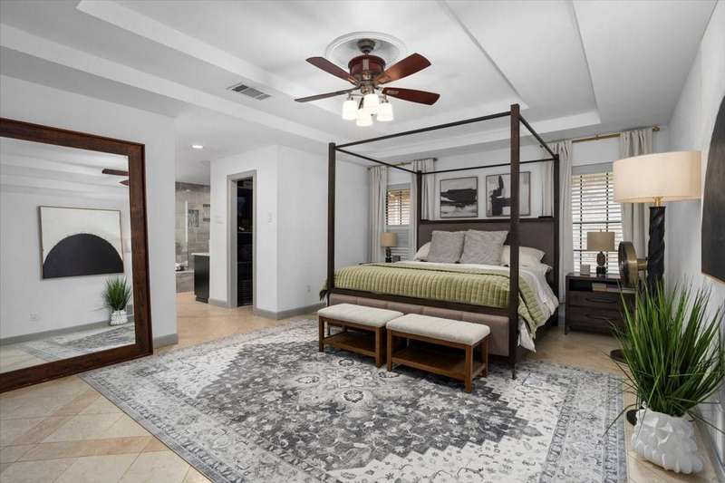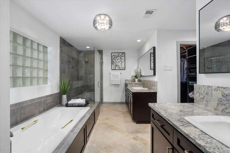 Beautiful Ranch Style Home on Corner Lot in Wimbledon Addition! Spacious 4 bedroom, 3 bath home with ideal layout for everyday living & entertaining. Features include formal living & dining, 2 fireplaces, large game room with wet bar, and picture window overlooking the sparkling pool & spa. Split in-law suite with private ensuite bath perfect for guests or multigenerational living. Enjoy a fully fenced backyard with electric gate, refinished rear-entry garage, mature oak trees, and lush landscaping. This home is a rare blend of luxury, privacy, and convenience. New HVAC system with 1 year transferable home warranty included. Located just minutes from major highways, airports, shopping, dining and entertainment. Dont miss this rare opportunity!