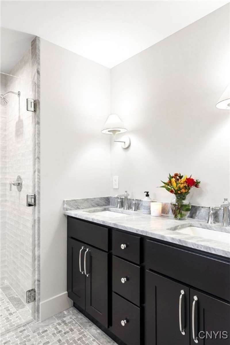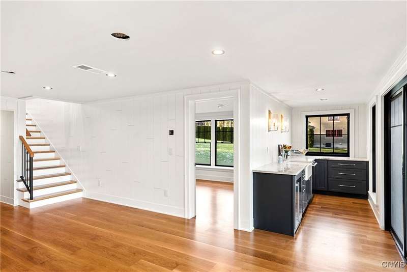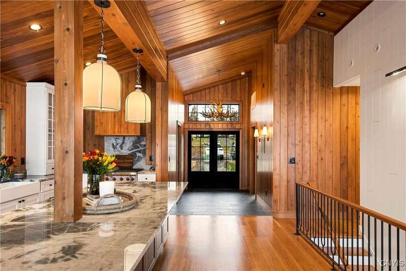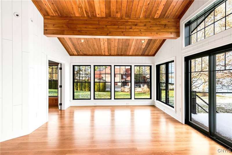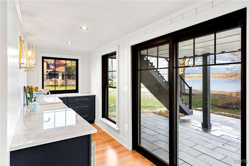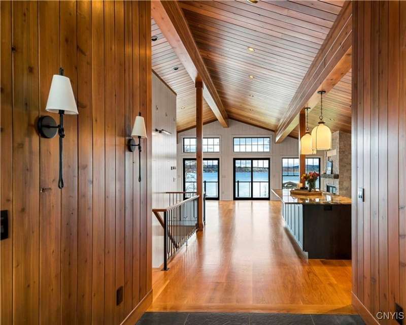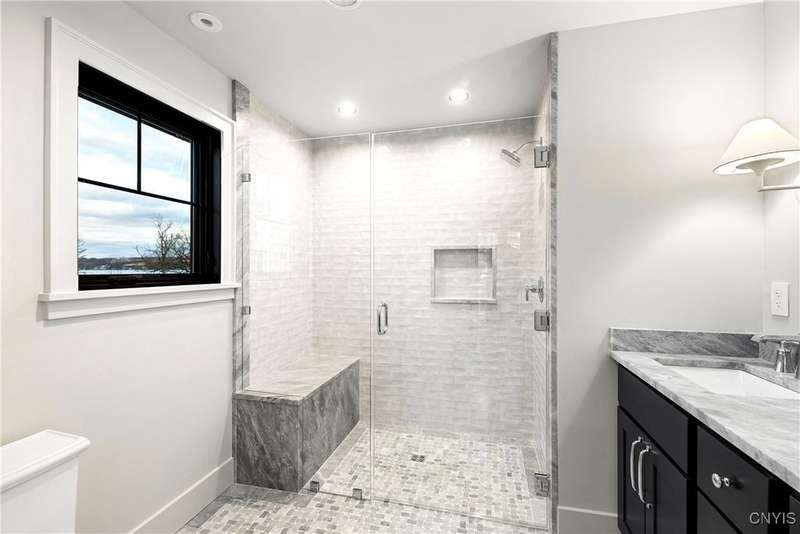 Exquisite Craftsmanship ? Sophisticated Design ? Level Waterfront Living! Welcome to a rare offering on the shores of Skaneateles Lake?an exceptional, fully reimagined and completely renovated residence, rebuilt from top to bottom with uncompromising attention to quality and detail. Every element of this home is brand new, including plumbing, electrical, siding, windows, heating systems, in-floor radiant heat, and central air, ensuring modern comfort and long-term peace of mind.Inside, warm cedar walls and soaring cedar cathedral ceilings set the tone for a sophisticated yet serene retreat. Expansive windows frame breathtaking water views, while the home's in-floor radiant heat provides year-round comfort in every room. Throughout the residence, elegant walnut Emtek hardware adds a subtle, luxurious finishing touch. At the heart of the home is a chef's kitchen, outfitted with top-of-the-line appliances, exquisite quartzite countertops, and a layout designed for both refined entertaining and everyday ease. Two stunning gas fireplaces with stone surrounds elevate the ambiance in the main living spaces, blending contemporary comfort with rustic warmth. Offering three beautifully appointed bedrooms and four luxurious full baths, this home provides both privacy and indulgence for residents and guests. Every space has been thoughtfully curated, reflecting a commitment to craftsmanship, style, and functionality.Outside, the property boasts 53 feet of pristine, level waterfront, offering effortless access to the crystal-clear waters of Skaneateles Lake. An expansive Trex deck, perfectly positioned for sunrise coffees and sunset gatherings, serves as an inspiring vantage point over the lake and an inviting extension of the living space. Located just minutes from the village center, this remarkable property combines the tranquility of lakeside living with the convenience of nearby shops, dining, and community amenities.A true showpiece?newly rebuilt, exquisitely designed, and perfectly positioned on one of the most coveted waterfronts in the Finger Lakes.