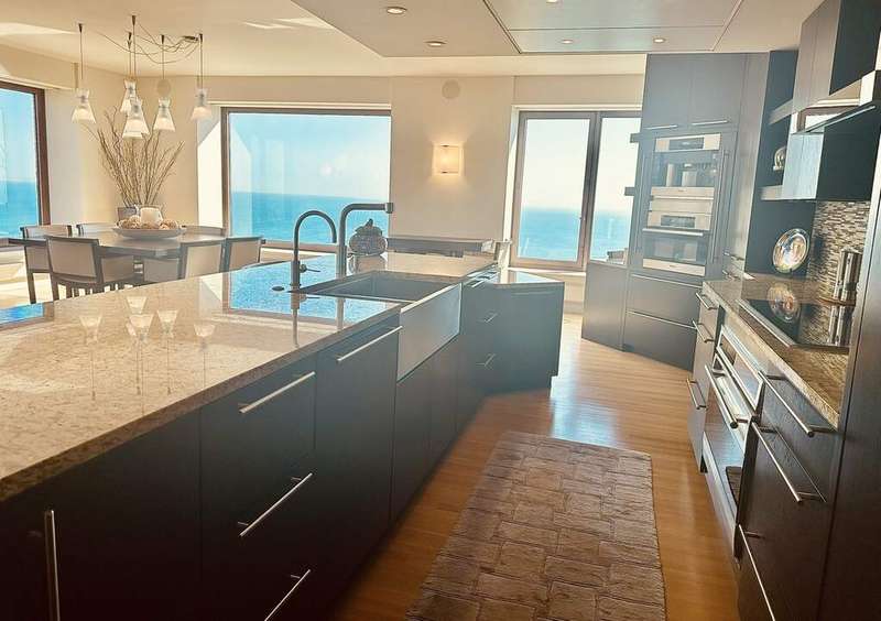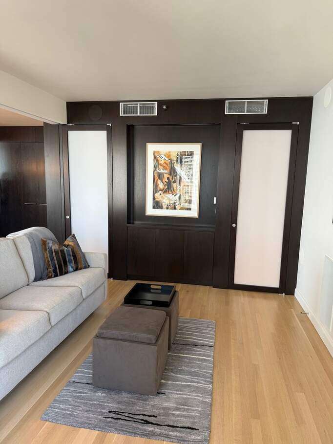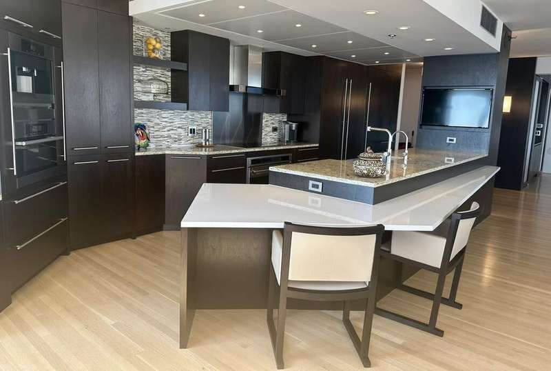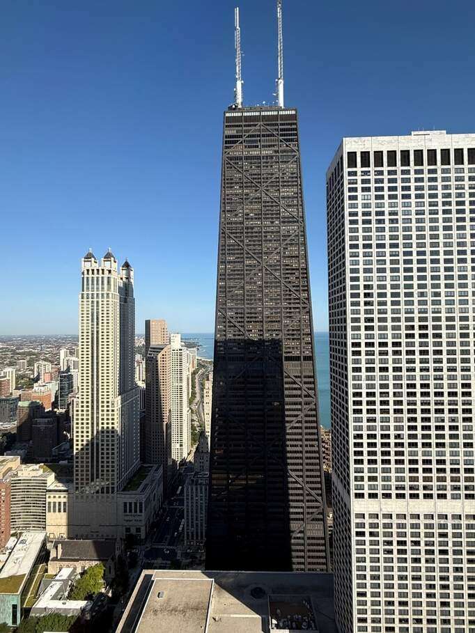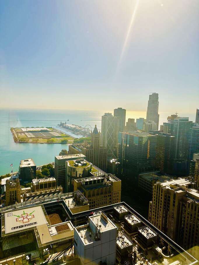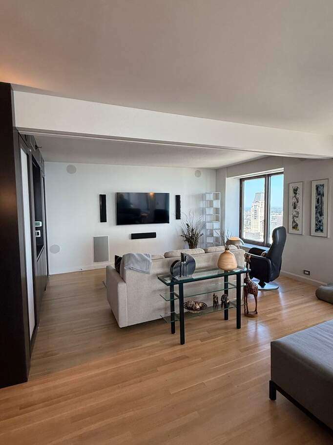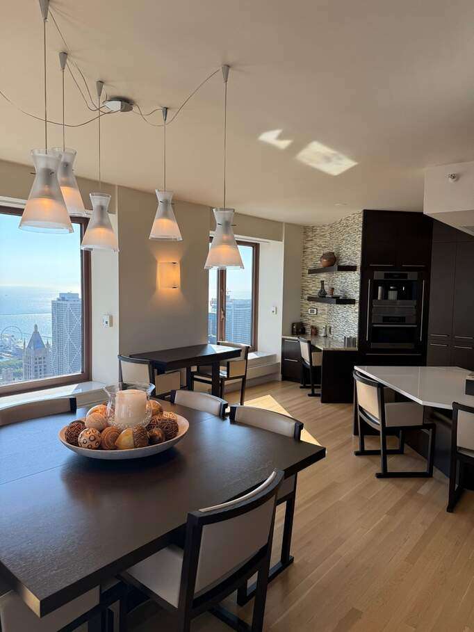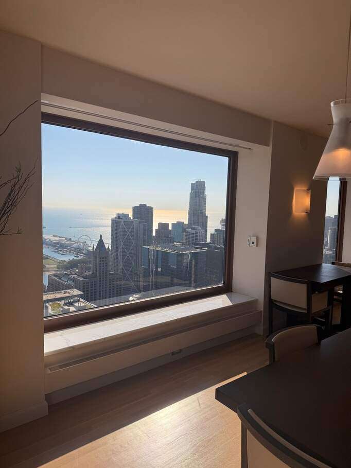 A home in the sky with sweeping city & lake views! Perched high on the 53rd floor, this stunning corner residence is truly a home in the sky. With the coveted **A-tier-the largest floor plan in the building-**you'll enjoy dramatic wall of windows with floor-to-ceiling views stretching from Navy Pier across Lake Michigan to the glittering Chicago skyline. Recently reimagined with a sleek, open-concept design, the luxurious kitchen is the centerpiece of the home. Start your mornings with an espresso from the built -in Miele cafe station, cook with a view from your Wolf induction cooktop and unwind with a bottle from the full-height wine fridge. The show-stopping extra-long, two-tiered stone island is perfect for entertaining while taking in the breathtaking views stretching as far as the eye can see!!! The primary suite basks in the glow of sunrises and sunsets over Navy Pier. Experience true luxury in this expansive master suite, designed to impress with unmatched comfort and sophistication. Featuring 2 newly rehabbed en-suite bathrooms adorned with timeless marble tile finishes, white oak vanities, a giant soaker tub and walk in shower. This retreat offers the ultimate in privacy and elegance. The suite boasts two spacious walk-in closets, providing abundant storage and organization, along with a dedicated sitting room that frames breathtaking views of Navy Pier and Lake Michigan. The versatile third bedroom is designed with flexibility in mind, featuring a custom retractable wall that seamlessly tucks away for open entertaining or closes to create a private retreat. A built-in entertainment center enhances the space, perfect for hosting or relaxing. A custom doorway leads directly to the hall bath, while Lutron lighting throughout adds a modern touch. All doorways have been thoughtfully redone to accommodate taller, more dramatic doors, elevating the home's sense of scale and style. Enjoy the well-appointed laundry room with Electrolux full size side-by-side washer/dryer, and a stylish powder room appointed with marble tiles, floating vanity with a Kohler sink. The Olympia Center embodies luxury life style experience with 24-hour door staff, indoor pool, whirlpool, sauna, steam room, party room, and on-site management. Parking is available for lease in the attached heated garage. Living here is a life style to love!
