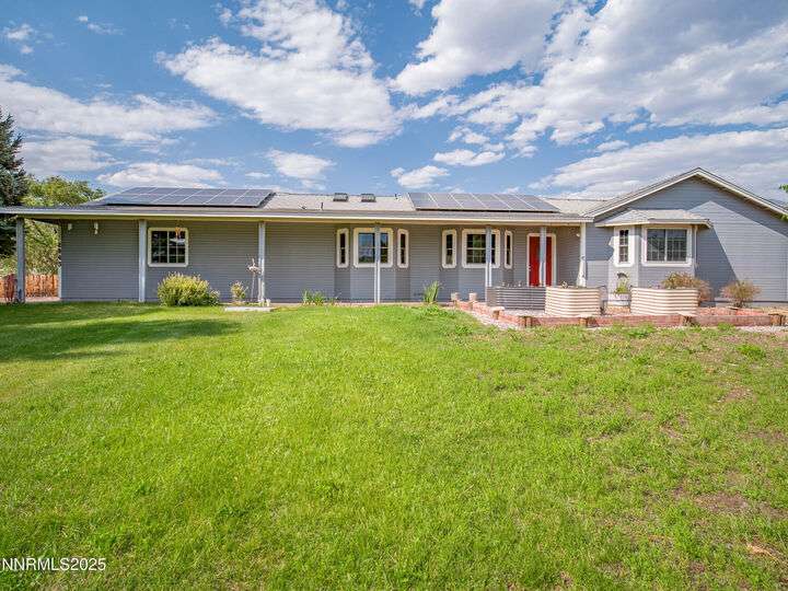 Welcome to this move-in-ready traditional home in charming Minden, Nevada. Nestled on a private one-acre lot, this 4-bedroom, 2-bath retreat features a roomy 3-car garage and three oversized sheds to house all your outdoor gear—perfect for adventures on the nearby BLM lands. The convenient hot tub hookups allow you to put in a new hot tub to unwind under the stars and the property allows you to tend to your chickens in their cozy coop, or harvest fresh produce from the front yard raised garden beds. This property brings your homestead dreams to life. Take in sweeping mountain vistas from the expansive front yard and enjoy plenty of space for backyard gatherings. All of this, yet just a short drive from excellent restaurants, shopping, and everyday conveniences. Your new home awaits!