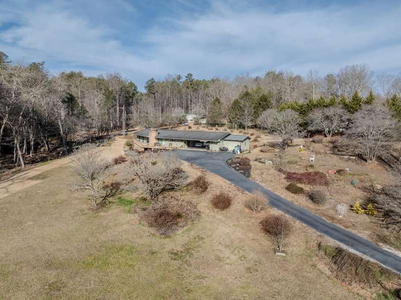 Adorable, one level home sitting on OVER 4+ acres of peaceful tranquility with a stream! Drive up to your paved driveway, (Close to the Main Road, and close to Andrews/Murphy) to an attached double carport with workshop & separate storage areas. Enter your home to your kitchen with granite, lots of cabinets, pantry & an eat-in breakfast bar next to your dining area. The home features a cozy living room with a fireplace in the middle of glass sliders to enjoy the view (See photos!)! The sunroom is being used as storage- w/ French doors. Down the hall is your guest bath and 2 bedrooms with sliders to deck access. Your spacious Main Level Ensuite, has sliders, 2x vanities and a separate sitting area. Ample room for storage, inside or outside! House Features a Large deck perfect for entertaining. The Seller Has chickens, great for Animal Lovers, Property could have a lovely garden! So much potential and endless opportunity! Seller is also using bonus room as storage. Selling As is. Seller negotiable on some things/Furniture/Appliances. Seller maintains well and collects a fee from neighbors. Schedule a viewing before this sells!!