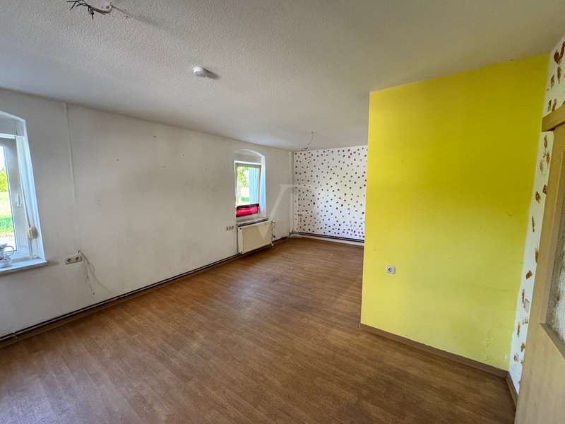 This semi-detached house, built around 1920, is situated in a quiet location within a one-way street and therefore offers a pleasant living atmosphere. With a living space of approx. 80 m² and a plot area of approx. 210 m², the property offers sufficient space for couples or a small family. The house comprises a total of four rooms, including a kitchen. Two of the rooms currently serve as bedrooms. With two bathrooms, each equipped with a shower, the property offers additional comfort. Despite its long existence, the house requires extensive renovation to bring it up to modern living standards. Over the last few decades, a number of modernization measures have been carried out to maintain the property. The electrics were renewed in the mid-1990s and the windows were replaced with double-glazed versions in 2005, contributing to the home's energy efficiency. The façade of the house was repainted in 2021, which significantly enhanced the exterior appearance. In addition, the courtyard was repaved in the same year, making the outdoor areas more pleasant to use. The property is heated centrally using oil. The heating pipes run on plaster, while the oil tanks and the heating system itself are located in a shed in the courtyard, allowing for easy access and maintenance. Despite being in need of renovation, this semi-detached house offers solid foundations and the opportunity to design the rooms according to your own preferences and needs. The location in a one-way street also promises a quiet environment where you can quickly feel at home. Interested parties have the opportunity to acquire a house with charm and history and to modernize it according to their personal ideas. With its solid building fabric and the modernization measures already carried out, the property offers an ideal basis for individual adaptation and value appreciation. Thanks to the already renovated windows and central oil heating, the first steps towards energy efficiency have already been taken. In summary, this semi-detached house is an interesting option for buyers who are looking for a property that they can design and adapt themselves. With ample living space and land as well as a solid basic structure, future owners can realize their dream home here. To get a more detailed picture of the property and discover the many possibilities this house has to offer, we recommend a viewing on site.