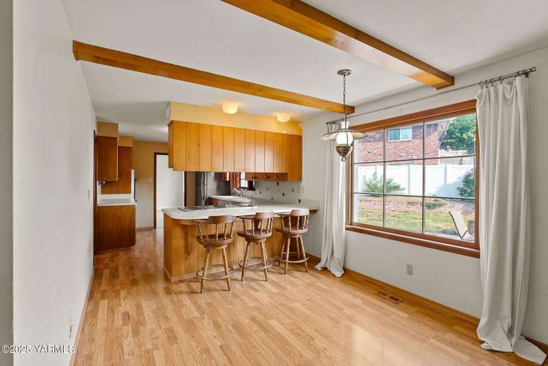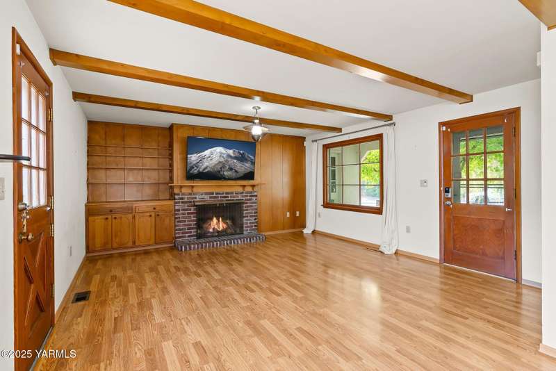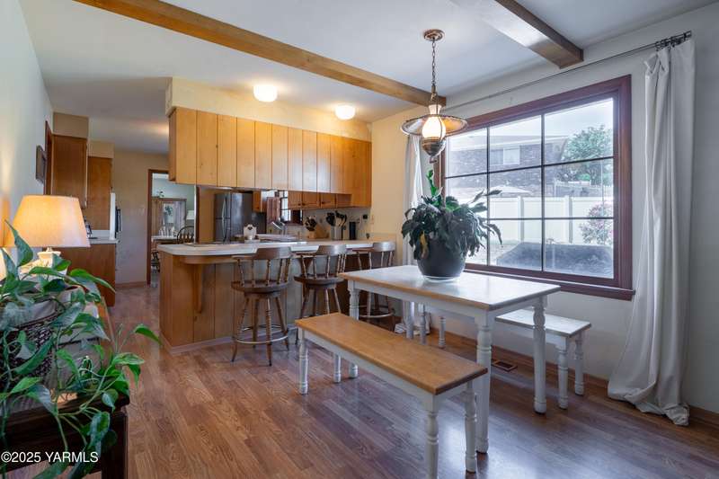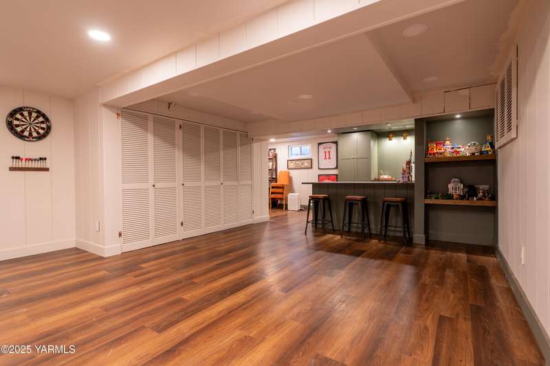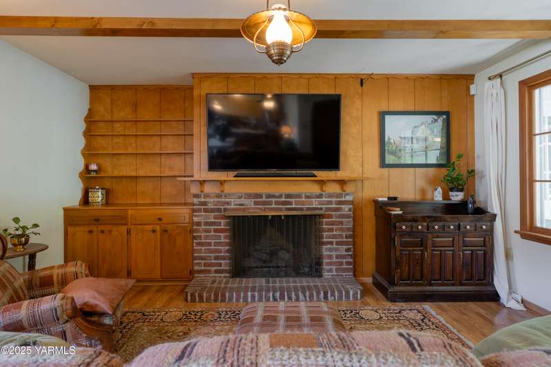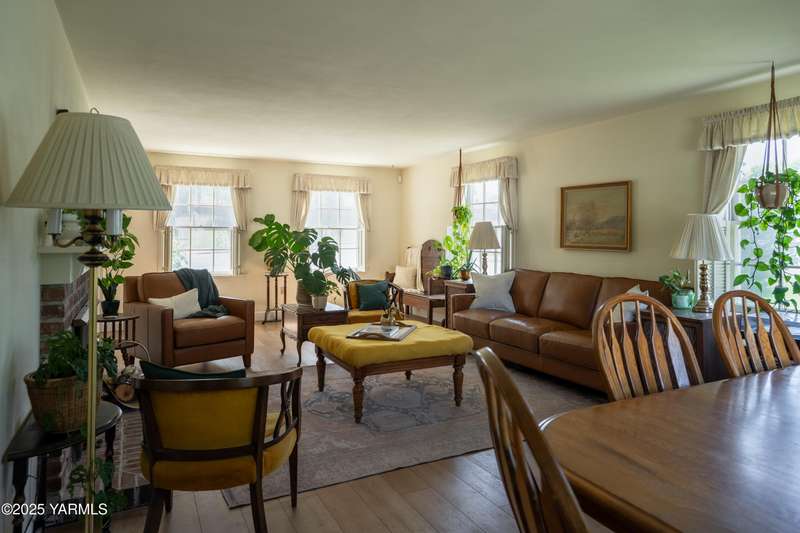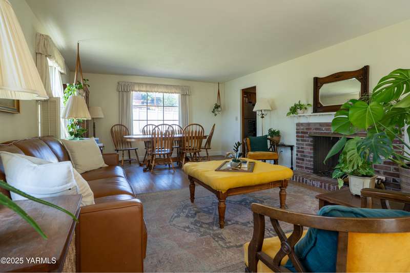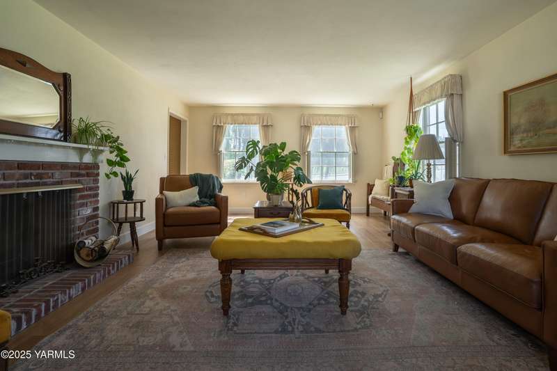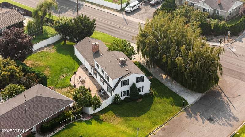 Centrally located in Yakima lies this 1960's colonial beauty with a total of 3,676 square feet of living space spread across three levels and mature landscaping.The home features upgraded tile and vinyl plank flooring upon walking through the front door, loads of built in storage, and two cozy fireplaces. Natural light pours through the home which features exposed wooden beams in the family room, bar-style seating, and spacious cabinetry.Continue your tour through the home and observe three bedrooms upstairs along with two bathrooms, crown moulding, and some classic hardwood flooring. The primary suite upstairs has double closets along with a connected continental bathroom as well.Walk downstairs and you'll see a completely remodeled basement with a full wet bar, mini fridge, bar style seating, updated lighting, and tons of cabinet space.Take a stroll in the backyard and see your brick patio, which is perfect for relaxation, along with a fully fenced backyard. Additional items include a formal living room, dedicated laundry room, forced heat, central air, underground sprinklers, a two-bay attached garage, extra parking with a half circle driveway, security system, and more!