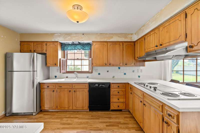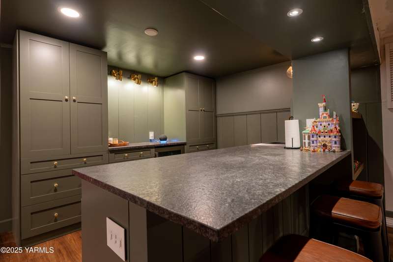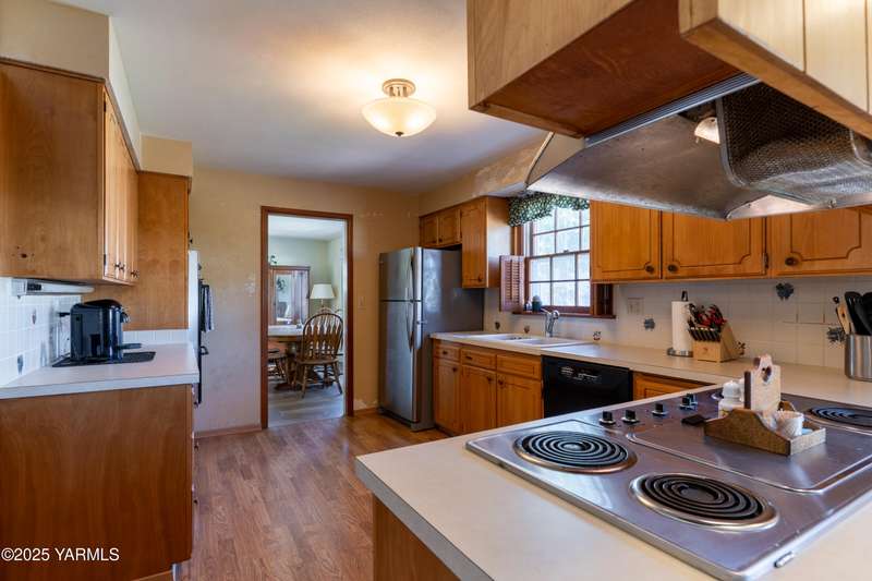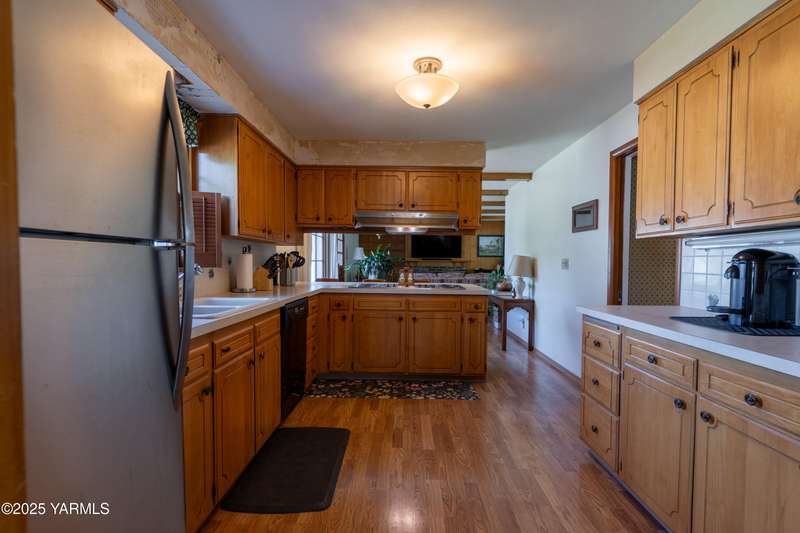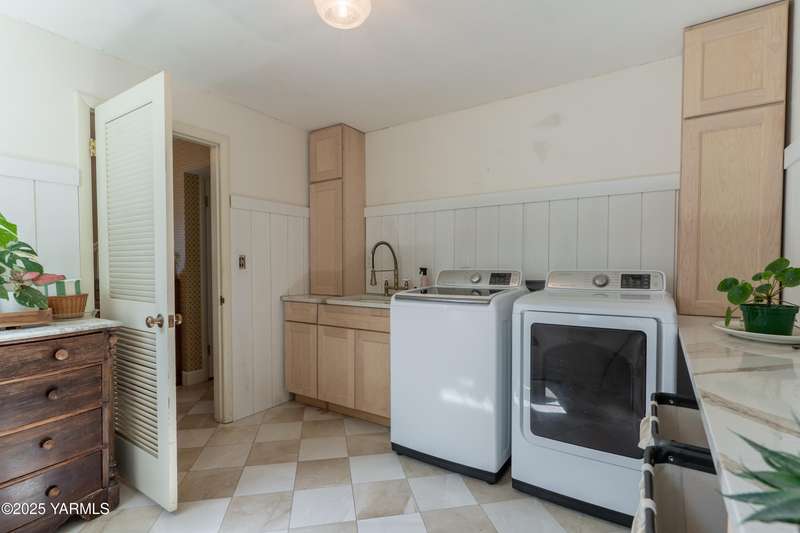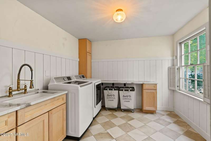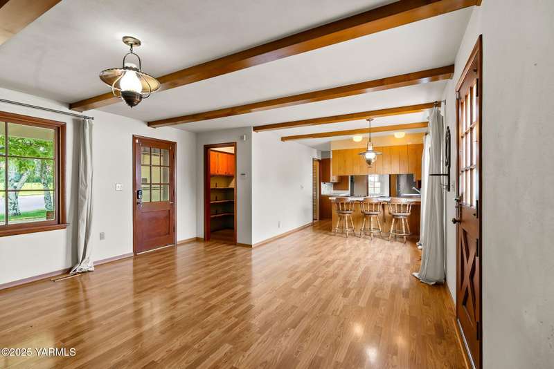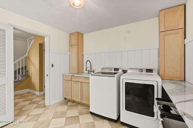 Centrally located in Yakima lies this 1960's colonial beauty with a total of 3,676 square feet of living space spread across three levels and mature landscaping.The home features upgraded tile and vinyl plank flooring upon walking through the front door, loads of built in storage, and two cozy fireplaces. Natural light pours through the home which features exposed wooden beams in the family room, bar-style seating, and spacious cabinetry.Continue your tour through the home and observe three bedrooms upstairs along with two bathrooms, crown moulding, and some classic hardwood flooring. The primary suite upstairs has double closets along with a connected continental bathroom as well.Walk downstairs and you'll see a completely remodeled basement with a full wet bar, mini fridge, bar style seating, updated lighting, and tons of cabinet space.Take a stroll in the backyard and see your brick patio, which is perfect for relaxation, along with a fully fenced backyard. Additional items include a formal living room, dedicated laundry room, forced heat, central air, underground sprinklers, a two-bay attached garage, extra parking with a half circle driveway, security system, and more!
