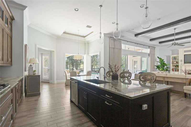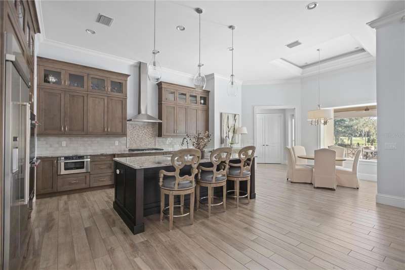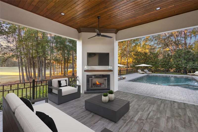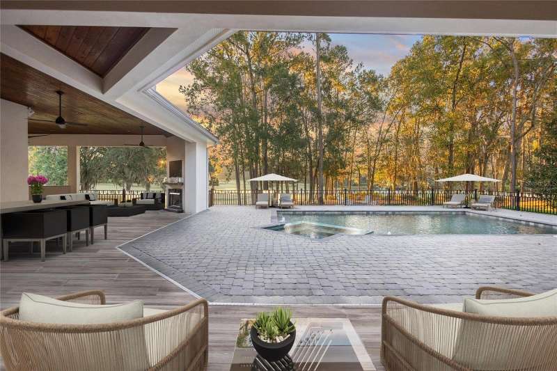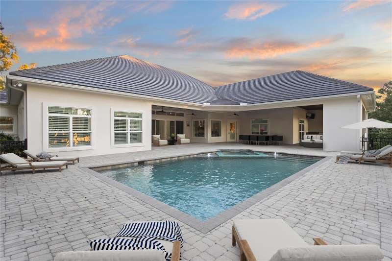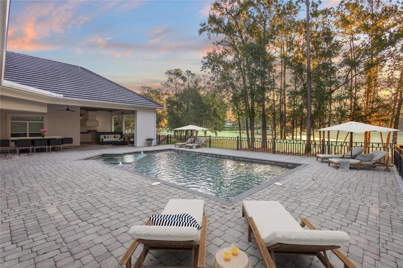 Under contract-accepting backup offers. One or more photo(s) has been virtually staged. The Golden Ocala home of your dreams sits perched over the famous tribute golf hole from Augusta National, the "Amen Corner". If spectacular views are important to you, this home is a must see. Beautifully constructed by Luetgert Development, this home features over 4,100 square feet of modern living. Boasting tall ceilings and open concept living with numerous windows and patio doors to showcase natural light and a grand outdoor living space, which inevitably shows off the picturesque views. A stunning paver patio surrounds the pool and spa featuring a complete summer kitchen with a bar to entertain and enjoy the view. For the equestrian, this home is very near and accessible by golf cart to the Golden Ocala private barns as well as all the other amenities. The spacious garage has extra tall ceilings which could easily house car lifts to add to the two car+ golf cart, if needed. Beautifully landscaped, this home offers lovely seclusion. Live golden in this beautiful home and enjoy all of Golden Ocala's spectacular amenities, and just a short golf cart ride away from the World Equestrian Center.