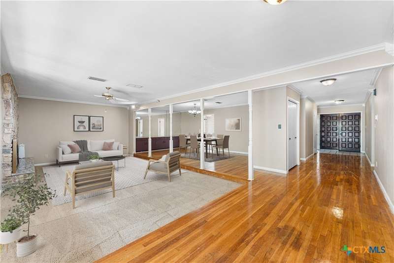Charming 4-Bedroom Home with Spacious Layout & Oversized Backyard Welcome to this beautifully spacious 4-bedroom, 2-bath home featuring a 2-car garage—an ideal opportunity for entertainment, or anyone ready to add their personal touch. With generous square footage and a thoughtful layout, this home offers both comfort and versatility. As you enter, you're greeted by a large living room centered around a cozy fireplace, perfect for relaxing evenings or gathering with guests. The open-concept design seamlessly connects the living room to the kitchen, creating a natural flow for everyday living and entertaining. The kitchen features ample counter space and cabinetry, making it a great space for meal prep and conversation. A second, separate living area adds even more flexibility to the floor plan—use it as a media room, game room, playroom, or a dedicated home office. Nearby, a formal dining area complements the eat-in kitchen, providing multiple options for hosting holidays or dinner parties. Step outside to the expansive backyard, a true blank canvas ready for your vision. Whether it's a custom patio, garden beds, or a play area, there's more than enough room to bring your outdoor dreams to life. It's the perfect spot for Texas summer BBQs. Recent updates include fresh interior paint in key areas, and a brand-new roof is has been installed giving added peace of mind to the next owner. The pool table to stay with the home. This home is bursting with potential and offers the perfect foundation for someone with vision and creativity to make it shine. Don’t miss your chance to explore all that it has to offer—schedule your showing today before this opportunity is gone!