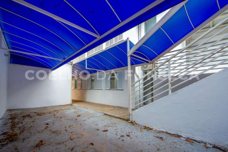No piso térreo, uma área de recepção na entrada e quatro salas, uma delas muito ampla com várias janelas tornado o ambiente bem ventilado e com bom aproveitamento da luz natural. Banheiro masculino e feminino e área de serviço.
