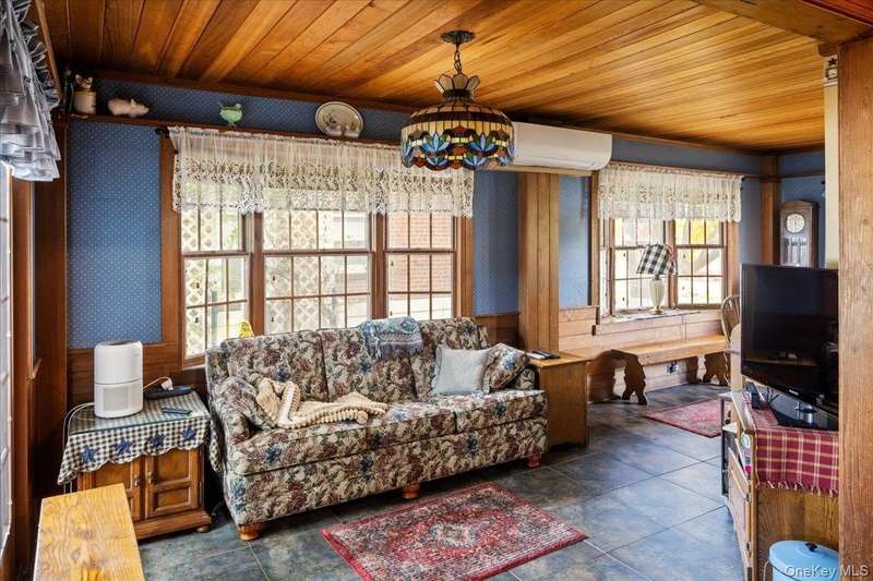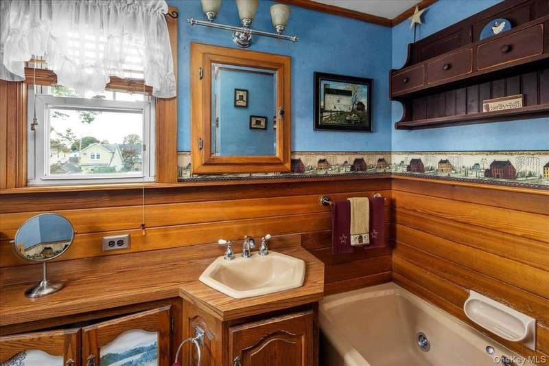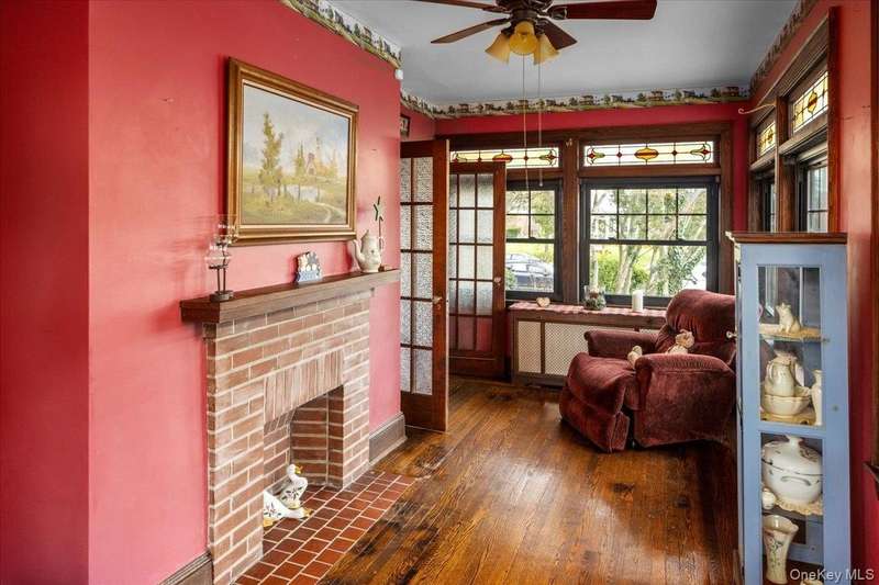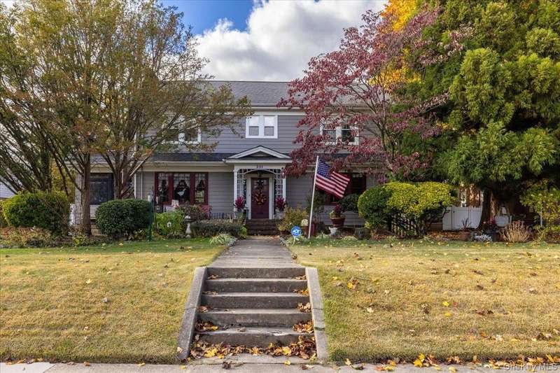 Welcome to 331 Mineola Boulevard, Mineola. Very rarely does a home of this grandeur, this pedigree and in the famed "Boulevard Section" come on the market. It has been almost 50 years since this JEWEL of the Boulevard Section has been for sale. This could be a once in a lifetime opportunity. This classically designed Colonial Revival home was custom built in 1921 and was one of the original grand estates on Mineola Boulevard. The classic and timeless details of this masterpiece of a home are found throughout. It grandly sits on a raised property on one of the largest parcels in the area. The oversized and magnificent property has 100 foot frontage. The lot dimensions of 100 x 232 x100 x 235 make an approximate lot of 23,400 square feet which is over a half acre of lush grounds. The palatial backyard has covered porches, a large koi pond, a stunning large and separately fenced area perfect for a pool and a newly built oversized detached two car garage. Looking at the grand facade of this home you can feel the history and character of its 104 years. Inside on the first floor you enter the home through a spacious foyer which leads to a grand and oversized living room with original beamed ceilings, original woodwork that has never been painted and a large mantled wood burning fireplace. Off the living room is a porch with all brand new windows with original stained glass, fireplace and split AC/heating unit. The truly grand and formal dining room exudes timeless grandeur with original stained glass, original wood decorations and an dropped ceiling shelf to showcase cherished momentos. The oversized eat in kitchen also has a separate butlers pantry and opens up to a cozy den with original stained glass windows and sliding doors to the rear of the home. Also on the first floor is a half bathroom and the original library of the home which is also used as a home office. The kitchen also has a split staircase for easy access to the second floor. The second floor consists of a large primary bedroom that has an interior door that connects it to another full bedroom that could be used a dressing room. The other four bedrooms on this floor are all oversized. The second floor also has a large landing area as well as a full bathroom. A full wide staircase opens up to the huge attic that can be utilized for storage. The basement of the home is full and partially finished with several finished rooms, a half bathroom, Bilco door access to the rear property, laundry area as well as extensive storage. 331 Mineola Boulevard, Mineola is a dream come true...make it your reality.