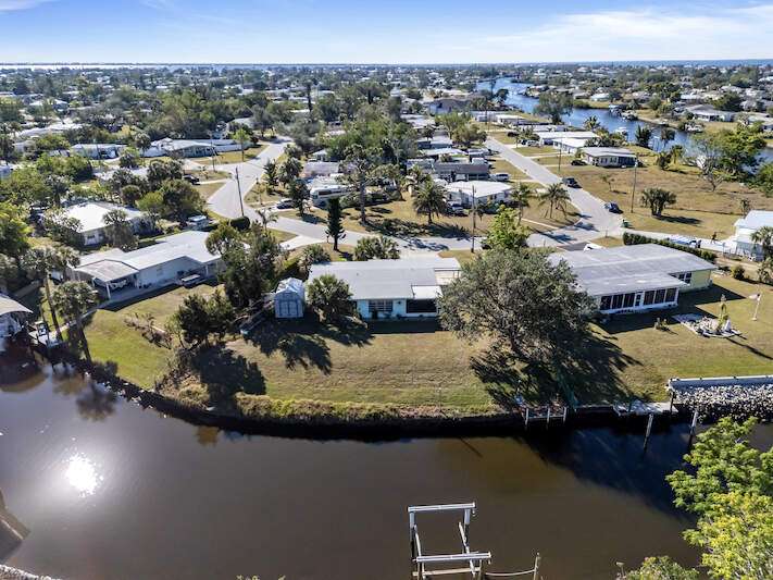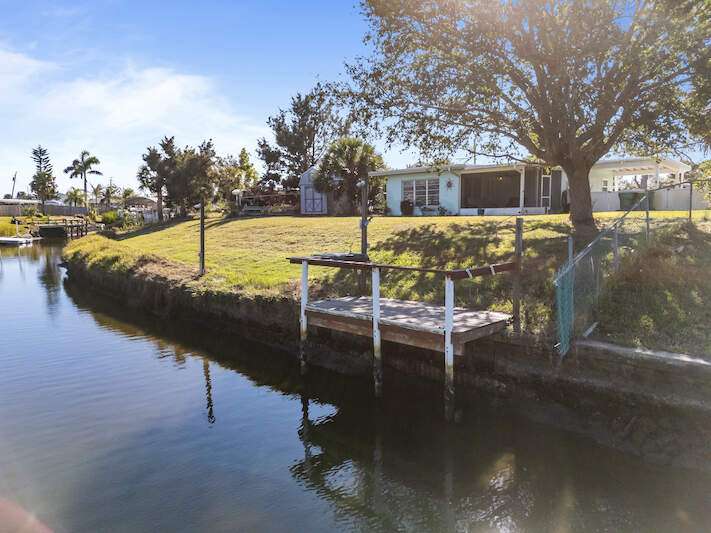 REDUCED PRICE! Welcome to your dream waterfront oasis on a tranquil canal with direct access to Charlotte Harbor and the Gulf of Mexico. This charming 3-bedroom, 2-bathroom home offers beautifully designed living spaces. The open-concept floor plan posses vaulted ceilings and stylish hardwood laminate flooring throughout. The remodeled kitchen features granite countertops and modern appliances, perfect for culinary adventures. Enjoy breathtaking water views from the spacious Florida room, an ideal spot for relaxing or entertaining guests. Step outside to the screened lanai, where you'll find a dock complete with a fish prep station with water and electric - a fisherman's paradise. The oversized backyard, adorned with vinyl fencing, offers privacy and a generous shed for added storage. This home is turnkey and a true hidden gem, blending comfort and convenience with a touch of coastal elegance. Make this waterfront retreat yours today!