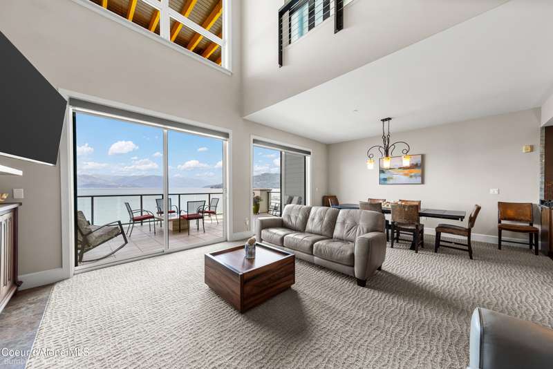 LUXURY PENTHOUSE RETREAT with Panoramic Views -Seasons at Sandpoint Experience waterfront luxury in this 2-story penthouse in desirable Bldg 7 at Seasons at Sandpoint Resort. This 3BD/3BA, 2,118 SF home features soaring ceilings, auto view shades, and an open kitchen, dining & living area showcasing Lake Pend Oreille views. Fully furnished with top-floor privacy and a 330 SF deck perfect for sunrises & 4th of July fireworks. Includes primary suite, guest ensuite, and main-level BD w/ full BA. Comes with a 40' dock slip w/ dock box, 2 prime parking spaces, and large garage storage. Resort amenities: heated pool, spa, gym, beach, pavilion & docks. Walk to downtown Sandpoint, only 25 min to Schweitzer Mtn. 'The primary challenges for owners at Seasons at Sandpoint are adequate parking, sufficient storage, and access to a boat slip. Most units here have limited availability of each of these key amenities.' — Scott Olpin, GM. This unit has beat the challenges!