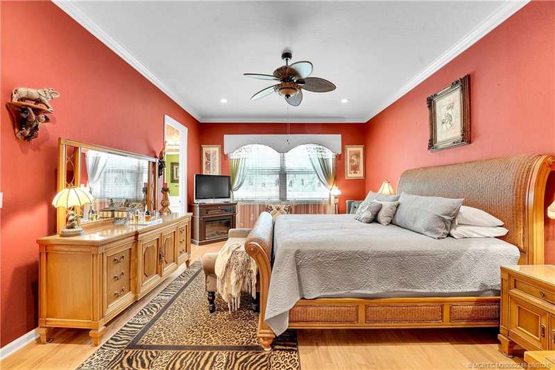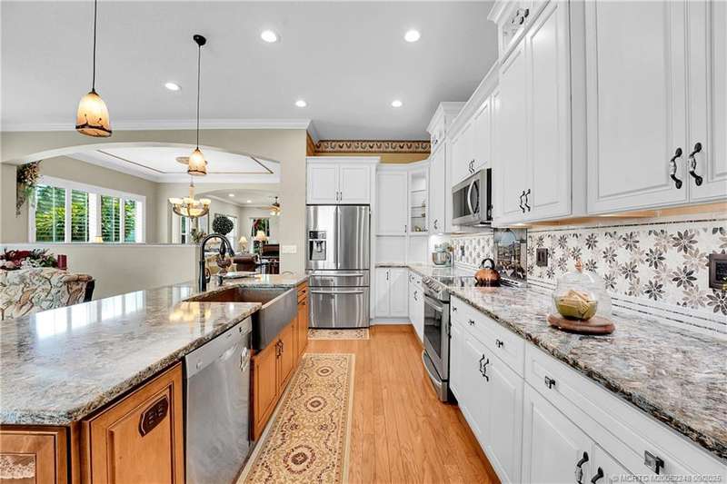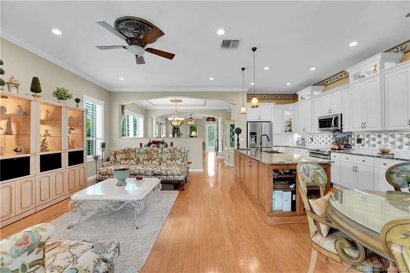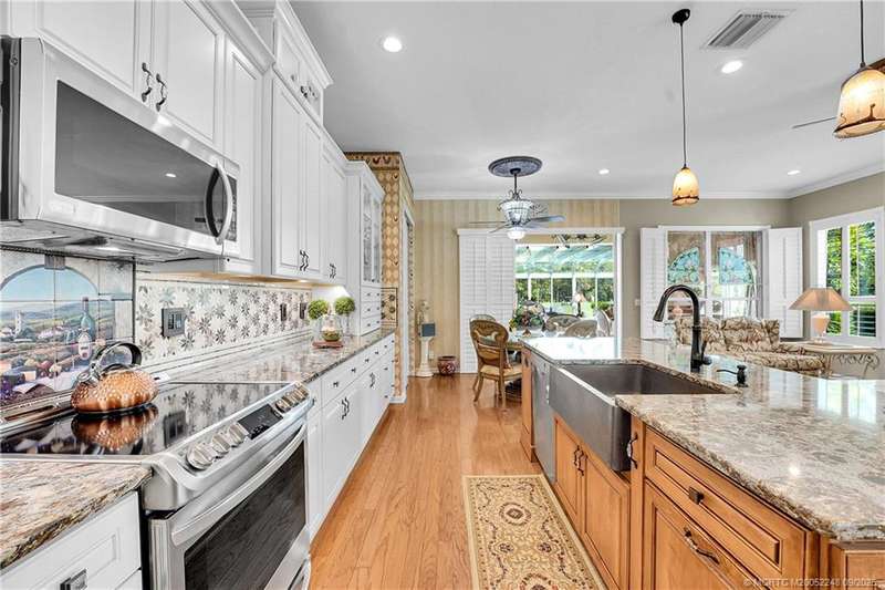Here we present to you the “Golfers Dream” situated on the 1st Fairway of this Jack Nicklaus golf course. This beautiful, upgraded home is Unique with its own style. The kitchen is Custom with stunning Quartz counters, center island with hammered copper sink, upgraded lighting, cabinets, and separate pantry with etched glass doors. The open floorplan has custom ceilings, real wood flooring throughout the main living areas, built in cabinets for the dining room with Granite countertops, hurricane impact glass throughout, plantation shutters, and custom fans and lighting. The A/C’d Sunroom is the best feature of the entire home with stunning views of the golf course, stars and moon, it is wind rated up to 140MPH and is Golf ball Proof. The outdoor space has new Roof 2016; brick pavers, upgraded landscaping, irrigation and additional open deck for those winter nights under the stars. This Gated community is Minutes to I95 for the commuters and A Rated Schools for the kiddos.