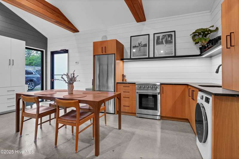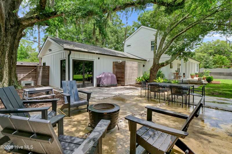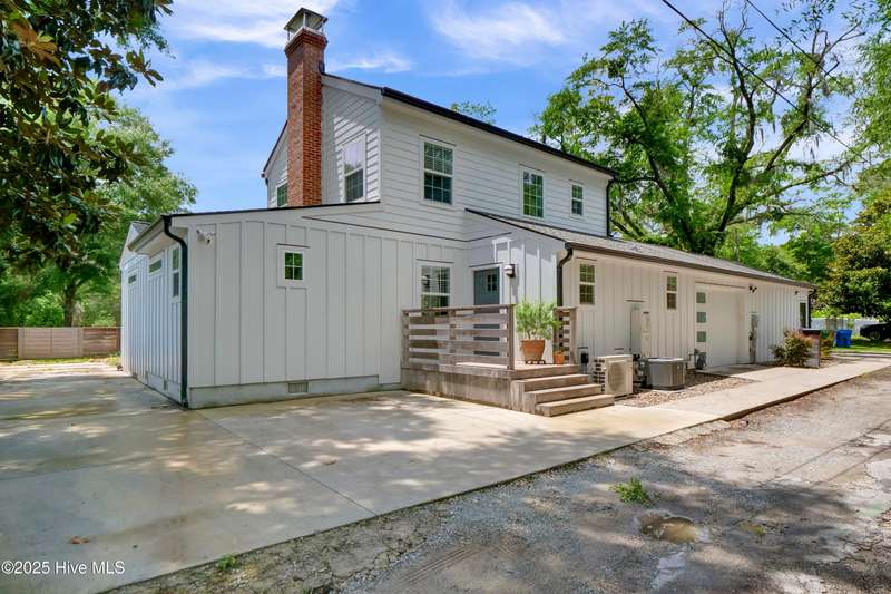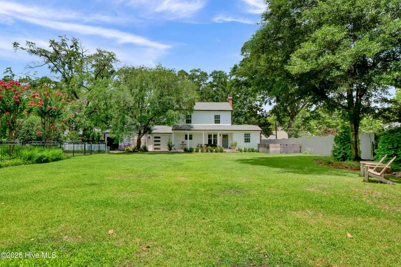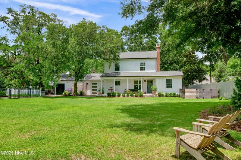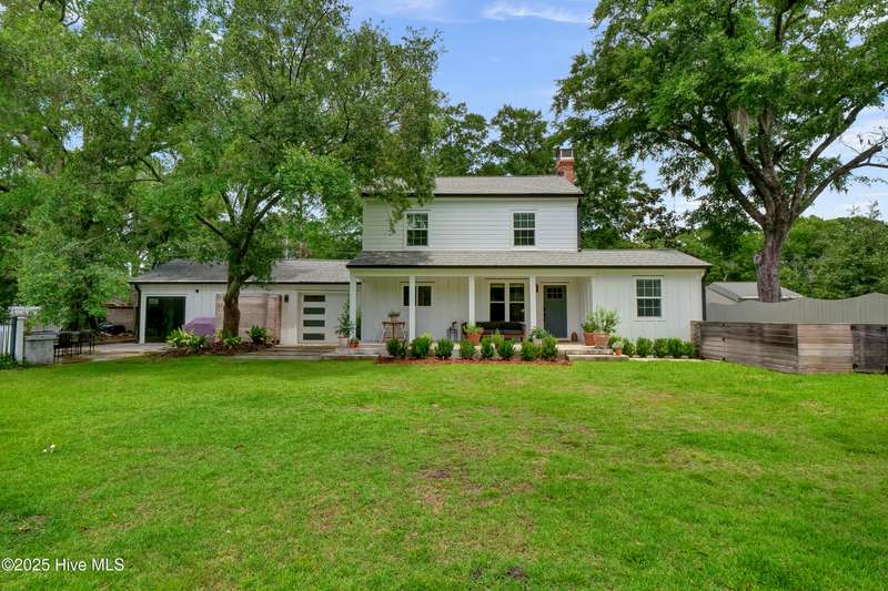 Nestled in the heart of Midtown Wilmington, just minutes from the sand and surf of Wrightsville Beach and a quick hop to downtown Wilmington, this home effortlessly blends charm, function, and flexibility. With 4 spacious bedrooms, 3.5 beautifully updated bathrooms, that includes a studio apartment complete with its own kitchen and bath, there's space for everyoneand every stage of life. The interiors are a thoughtful mix of classic craftsmanship and modern touches, from warm wood accents to clean lines and curated details. The yard is expansive and lush, perfect for morning coffee under the trees or weekend gatherings in the sun.