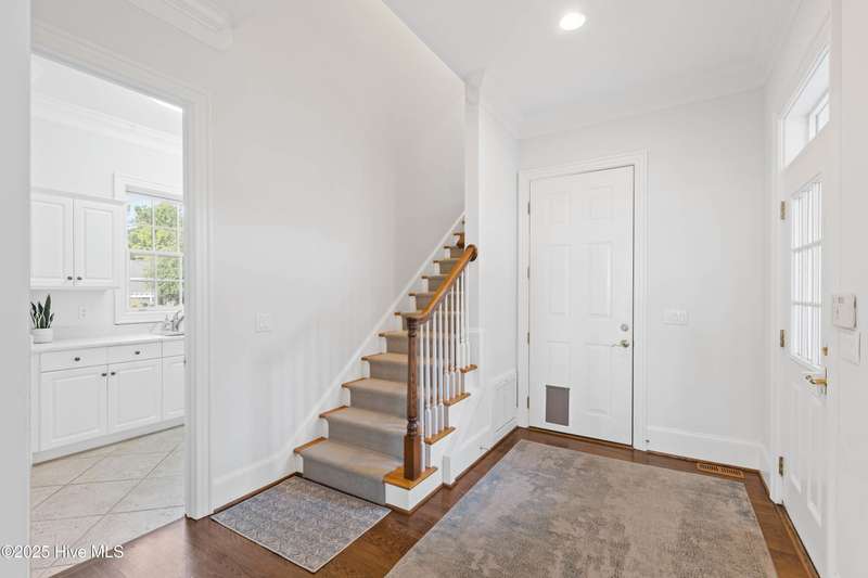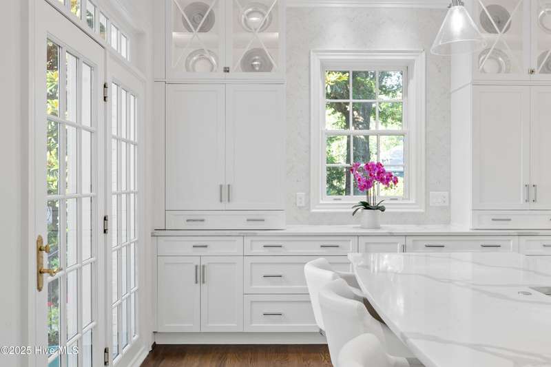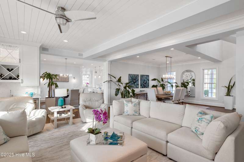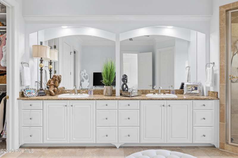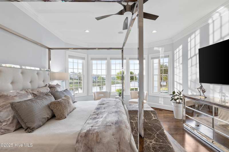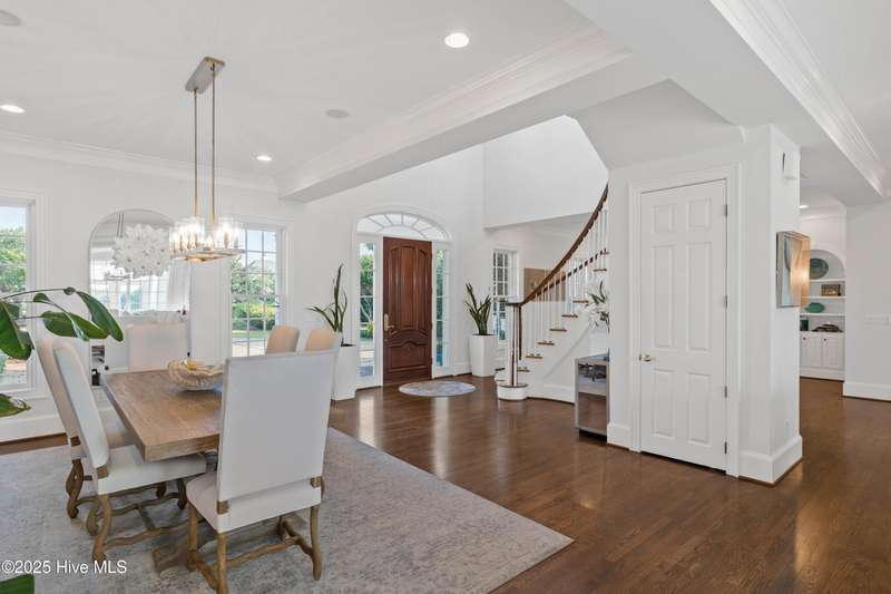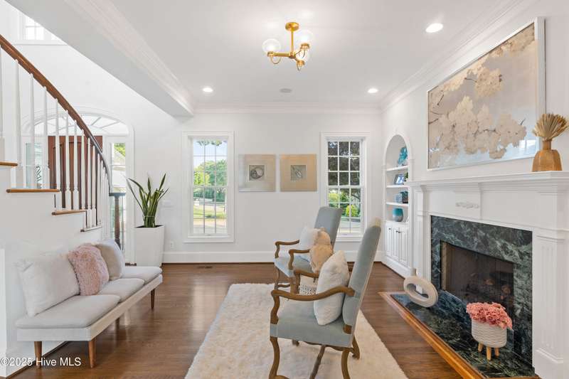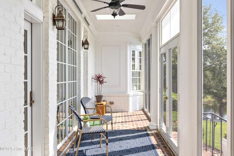 Welcome to 2220 Moreland Drive on the stunning Landfall Lake with breathtaking views. As you pull up to this stately home you will notice the great curb appeal, large driveway, and 3 car garage. As you step inside, your eyes will be drawn straight to the gorgeous view of the lake and even views of the Intracoastal waterway. The open foyer has a formal dining room to the right and a living room to the left complete with a gas fireplace. The family room is center in the house with a wet bar, gas fireplace, and leads to a lovely screened-in porch. The updated kitchen is light and bright with quartz countertops, ceiling-height cabinets, and a Wolfe range. There are two powder rooms downstairs plus a spacious laundry room. The master bedroom is also on the first floor positioned perfectly to wake up to heavenly views. Over the garage is a large bonus room that would be make a great fifth bedroom as it has a huge ensuite bathroom, the bonus room is currently being used as a home gym. There are 3 additional bedrooms upstairs plus a loft/flex space which would make a great playroom, media room, or office. One of the best features of this property is the high elevation of this almost one acre lot complete with a pool, spa, patio, and built-in grilling area just off the kitchen. You can start or end your day with a walk around the idyllic Landfall Lake which is right in your backyard. Whether you want to relax or entertain, this house checks all the boxes.