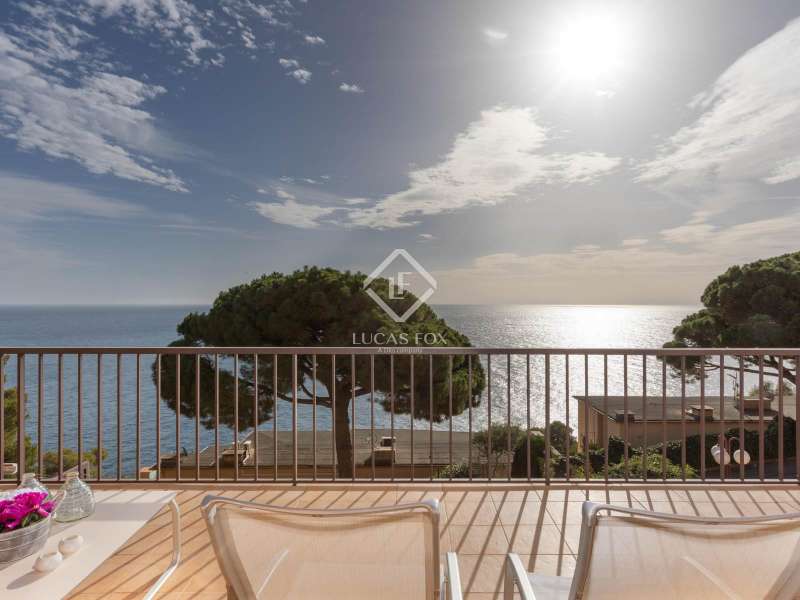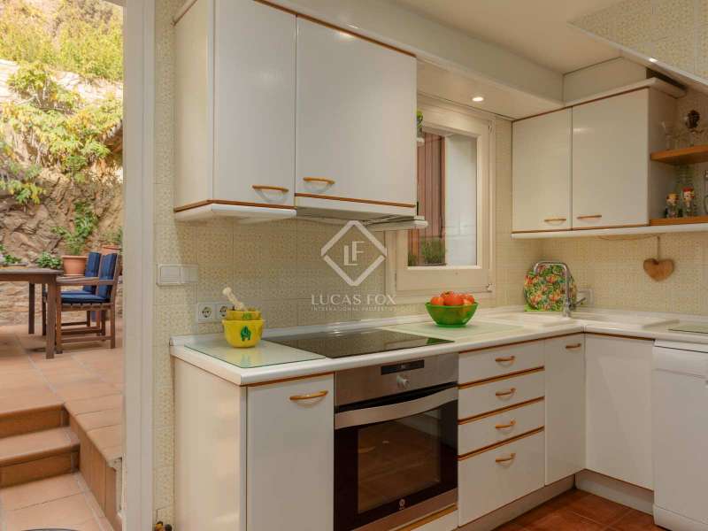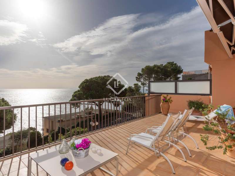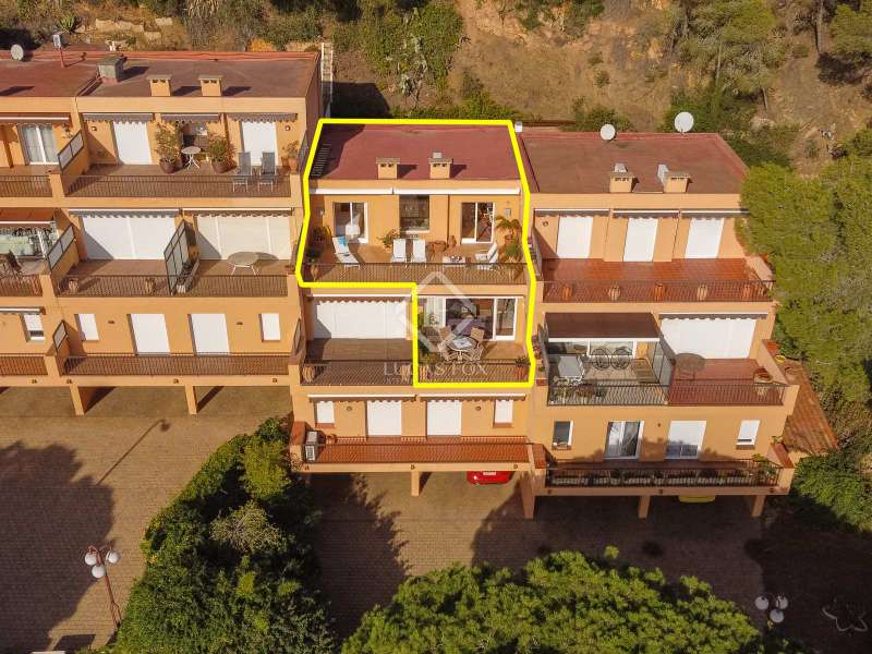 Discover a captivating two-storey terraced house located in the prestigious El Faro area of Llafranc, offering an unparalleled blend of coastal charm and a comfortable residence. Boasting a prime south-easterly aspect, this residence enjoys abundant natural light throughout the year and provides a warm haven during the winter months. Nestled in a small community of only nine neighbours, this property is ideally situated within a short walking distance from the Llafranc beach, offering a perfect balance of tranquility and proximity to coastal amenities. The house offers breathtaking frontal sea views, providing a daily backdrop of the Mediterranean that can be enjoyed from the inside of the property and also from the spacious terraces on both floors. The ground floor encompasses the day area, featuring a comfortable living and dining room, a semi-open kitchen, and two outdoor spaces. A large terrace, with a space for a dining table, and an interior patio, with a summer kitchen, that offers total privacy and the potential for a jacuzzi or small pool installation. Ascend to the upper floor, dedicated to the night area. Currently configured with two double bedrooms, two bathrooms, a living space, and an office area, the layout allows for easy redistribution to accommodate three bedrooms. The main bedroom is en-suite, equipped with a private bathroom and built-in wardrobes. The upper floor boasts a vast terrace of 35 m², providing an idyllic space for sunbathing, reading, and relaxation. This outdoor haven offers unparalleled panoramic sea views, creating a serene retreat at home. Both floors are equipped with gas heating radiators and air conditioning system, to add to an overall comfort and possibility to use the house during the whole year. The property has a private parking space, ensuring convenience, and a large private storage area, adding to the practicality of this exquisite residence. Please contact us for further information.