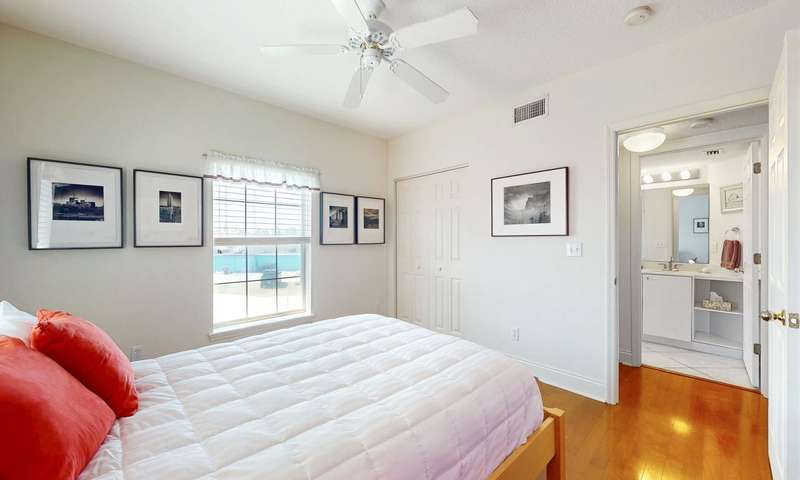 This stunning luxury unit offers a beautifully renovated kitchen that blends style and function effortlessly. Featuring sleek quartz countertops, top-of-the-line Bosch appliances, rich walnut shelving, elegant hardwood counters, soft-close drawers, and striking nautical tile accents in both the kitchen and foyer. Beautiful light fixtures throughout the home add a warm, sophisticated ambiance. Rich hardwood floors extend through the entire unit, elevating its timeless appeal. The split floor plan offers excellent privacy for you and your guests. The spacious primary suite includes a generous walk-in closet and a luxurious en-suite bathroom with double vanities, a garden tub, and a separate walk-in shower. Enjoy your morning coffee or evening wine on the oversized balcony, overlooking a tranquil cedar garden that is meticulously maintained by caring neighbors. This unit offers a one car garage for convenience. Just a leisurely 10-minute walk takes you into the heart of the city, where you???ll find a vibrant blend of historic charm and modern amenities???shops, restaurants, art galleries, and year-round entertainment. Don???t miss the world-famous Nights of Lights and other exciting local events. Don???t miss this incredible opportunity!
