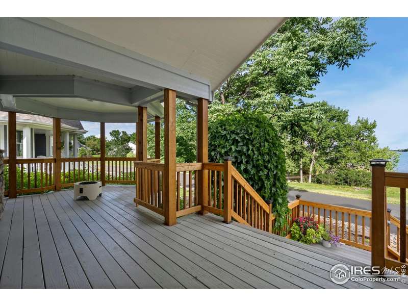Welcome to 459 Cape Dory Drive, a beautiful home directly across from Boedecker Lake, offering stunning water views, lake access, and the peaceful lifestyle of the sought-after Mariana Cove neighborhood. This quiet, charming community in west Loveland offers easy access to walking trails, Boedecker Lake, and is just minutes from Mariana Butte Golf Course. A large covered front porch welcomes you with breathtaking views of the lake-perfect for relaxing or entertaining. Inside, you'll find a classic, well-defined layout filled with natural light and wood flooring throughout the main level. The main level features a bright living room with soaring ceilings, a warm and inviting family room with a cozy fireplace, and a well-appointed kitchen with a sunny breakfast nook, perfect for casual dining and everyday gatherings. A separate dining room, convenient laundry room, and a half bathroom complete the main floor. Step out from the breakfast nook to a covered back deck overlooking the backyard, which flows into a spacious concrete patio-ideal for outdoor living and entertaining. Upstairs, the primary suite offers a peaceful retreat with a 5-piece en-suite bathroom and a generous walk-in closet. Three additional bedrooms and a full bathroom provide ample space for family, guests, or office use. The finished basement adds incredible flexibility with a large media room featuring a dry bar, one bedroom, an additional bonus room or bedroom, and a 3/4 bathroom. Set in the desirable Mariana Cove neighborhood, this home combines comfort, lakefront beauty, and a fantastic location. Enjoy peaceful surroundings, direct access to Boedecker Lake and trails, and close proximity to one of Loveland's most beautiful golf courses.