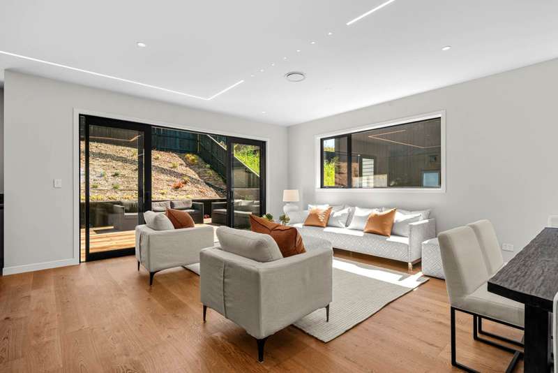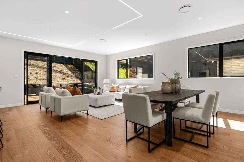 A truly exceptional opportunity awaits to secure this beautifully presented residence in the highly sought-after coastal community of Long Bay. Designed for supreme comfort and functionality, this four-bedroom, three-bathroom home offers a refined lifestyle for the discerning modern family. Step inside to be greeted by a superb sense of light and space. The heart of the home is the magnificent, open-plan ground floor, featuring a seamless integration of the main living and dining areas. This expansive space flows effortlessly into a beautiful designer kitchen, which is complemented by a highly practical walk-through scullery. This configuration is perfect for both daily family life and grand-scale entertaining. Full-width sliding doors provide direct access to the easy-care rear yard and deck, allowing you to maximise indoor-outdoor living. The ground floor also offers highly desired flexibility with a separate, private double bedroom and a full, modern bathroom. This versatile configuration is ideal for guests, extended family, or use as a dedicated home office. Upstairs, a bright second living area or lounge provides an essential retreat for relaxation or family time. This level hosts the remaining three bedrooms. Two well-appointed double bedrooms share a stylish family bathroom, while the magnificent master suite is a true sanctuary. Complete with its own large ensuite and ample closet space, the master offers a private haven after a long day. This thoughtfully configured residence provides four bedrooms and three full bathrooms, catering comfortably to families of all sizes. Beyond the home, the location adds even more appeal. It is just moments away from Long Bay Village, the beach, and the stunning Long Bay Regional Park. This is more than a home—it is a secure, stylish, and highly functional way of life. Opportunities of this calibre in Long Bay are exceptionally rare. Contact us today to arrange your private viewing. Auction: 8-12 The Promenade, Takapuna on Wednesday 26 November 2025 at 9:30AM (unless sold prior)