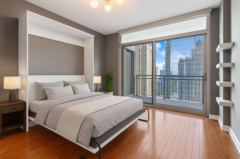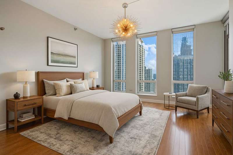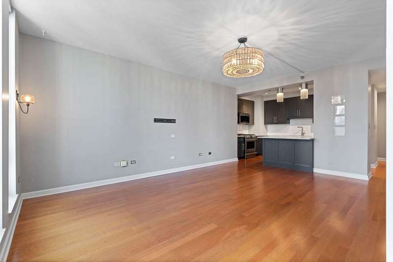 Upgraded and move in ready 2bed + den, 2bath residence in a highly sought after full amenity building in prime South Loop location. Hardwood floors flow seamlessly through out the home which features an an open floor plan to creates an inviting, seamless flow. The spacious, south facing light filled living/dining area opens to a large private balcony with city and sunset views, perfect for grilling, entertaining, or unwinding outdoors. The updated kitchen boasts sleek dark cabinetry, granite countertops with a breakfast bar, stainless steel appliances, and modern lighting. The king-size primary suite offers hardwood floors, balcony access, a walk-in closet with custom organizers, sophisticated lighting, and a large bathroom with a dual sink vanity with granite counters, glass enclosed shower plus separate tub. The second bedroom features sliding doors, a Murphy bed and access to the balcony. A dedicated office nook with custom cabinetry and a built-in desk provides the ideal work from home setup. Additional highlights include in-unit laundry and garage parking available for $35K. Building amenities include 24-hour door staff, a sundeck, outdoor pool, fitness center, party room, and more. Unbeatable South Loop location just steps to Grant Park, Museum Campus, CTA, the lakefront, and an array of shops, dining, and entertainment options.