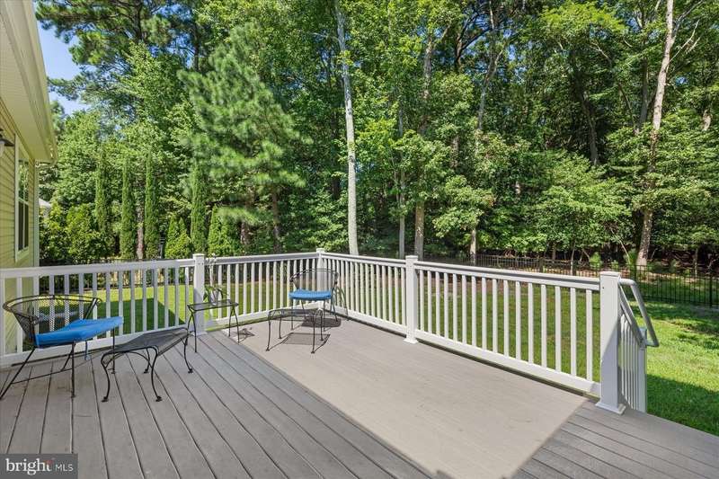 Welcome to this beautifully maintained, turnkey home on a private .41-acre fenced lot backing to a wooded preserve. With its southwest orientation, the home enjoys wide-open evening skies and, unlike many in the area, is outside the flood zone. Designed with an open floor plan, soaring 9' ceilings, and oversized windows, the interior is filled with natural light. The main level features a private office, powder room, and a spacious living room with cathedral ceiling, built-in cabinetry, recessed lighting, and a gas fireplace. The dining area and kitchen-with upgraded granite counters, lightly used stainless appliances, and breakfast nook-flow seamlessly to the composite screened porch and deck, where expansive glass sliders frame tranquil wooded views. The main-level primary suite offers a large walk-in closet and spa-style bath with dual vanities, soaking tub, oversized shower, and private water closet. Upstairs are three generously sized bedrooms, two with en suite baths. None are located above the primary suite, ensuring privacy. An oversized two-car garage provides excellent storage, complete with heavy-duty shelving and an extra refrigerator. Recent updates include dual HVAC systems (2025, transferable warranty), premium black aluminum fencing with two locking gates (2024, transferable warranty), a new storm door with self-storing screen (2025, transferable warranty), and fresh landscaping (2024-25). The fenced yard is only part of the property-beyond the gate, the deep rear lot extends into a partially wooded area. Additional features include a tankless water heater, gas heat, ceiling fans, irrigation system, outdoor shower, and inviting front porch. Located in The Refuge at Dirickson Creek, a sought-after, amenity-rich community, residents enjoy a pool, clubhouse with fitness center, tennis, pickleball, basketball, volleyball, kayak storage, and boat launch with direct access to Dirickson Creek, Assawoman Bay, the C&D Canal, and the Atlantic. With mature trees, lush landscaping, low HOA fees, and a prime location near Fenwick Island, Ocean City, Bayside Golf, Freeman Stage, and walking distance to a cafe and supermarket, the setting is unmatched. Offered mostly furnished (exclusion list to be provided).