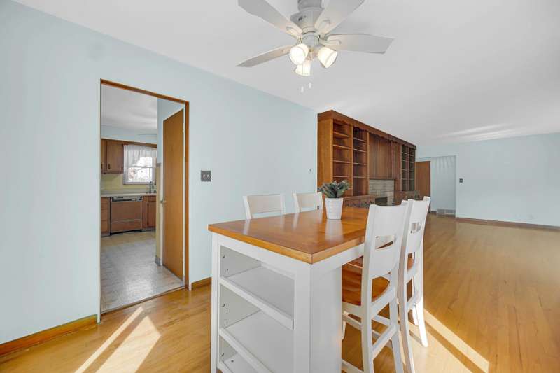 Nestled in the quaint and desirable South Park Acres Neighborhood, this beautifully maintained 3 bedroom, 3 bath home offers warmth, character, and plenty of space for comfortable living. With only two owners, this property has been meticulously cared for inside and out. Stepping inside the front door the welcoming slate-tiled entryway leads to the living room and the main hallway to the bedrooms. Stunning hardwood floors throughout, with the exception of the newly carpeted 3rd bedroom/office and the kitchen, the flowing floor plan includes a spacious living room with built-in bookcases and a classic limestone fireplace. The kitchen with a walk in pantry offers an eat-in option or choose to utilize the formal dining room which opens seamlessly into the large living space. The half bath with new flooring is located conveniently between the kitchen and 3rd bedroom for easy access. A newly carpeted breezeway offers safe and protected access to the home from the garage while also providing extra space for relaxing with a view of the outdoors. Downstairs, a huge full basement presents endless opportunities. A large laundry/utility room with a 3/4 bath on one half of the basement while the other half provides a spacious family living area, which extends further into a recreation/workroom complete with dedicated workshop space and plenty of built in storage. Outside, enjoy the beautifully landscaped yard, a flagstone back patio with a built-in gas grill, garden boxes and a fenced in yard, perfect for gatherings or quiet evenings. A private well for irrigation keeps the landscaping lush and vibrant. Located within walking distance of the Duneland Family YMCA Healthy Living Campus to be completed in 2026 and downtown Chesterton. Also close to schools, highways, the South Shore Train and the Indiana Dunes National Park. This property combines classic charm with thoughtful updates and is being sold "As Is".