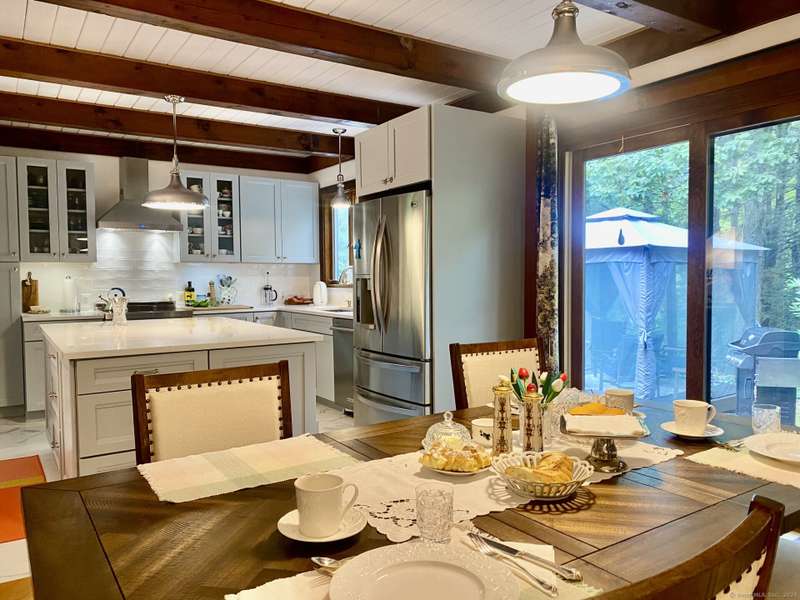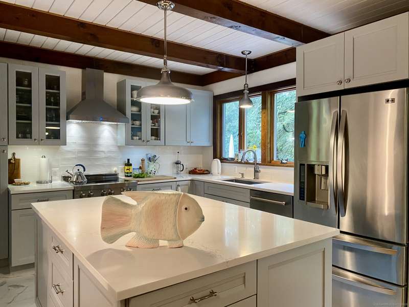 WELCOME TO 21 CHRISTMAS TREE HILL,CANTON,CONNECTICUT! THIS BEAUTIFULLY RENOVATED CONTERPORARY HOME OFFERS AN OPEN FLOOR PLAN FILLED WITH NATURAL LIGHT FROM ITS MANY WINDOWS AND SKYLIGHTS,CREATING A BRIGHT AND CONNECTED ATMOSPHERE.IN 2024 ,THE PROPERTY UNDERWENT A STUNNING RENOVATION,INCLUDING NEW HARDWOOD FLOORS THROUGHOUT AND A BRAND- NEW KITCHEN FEATURING QUARTS CONTERTOPS,A CENTER ISLAND,AND A SLIDER THAT OPENS TO A GROUND-LEVEL DECK OVERLOOKING THE PROFESSIONALLY LANDSCAPED GARDEN. ADDITIONAL UPDATES INCLUDE A NEW MINI- SPLIT SYSTEM WITH AC AND A HEAT PUMP FOR YEAR-ROUND COMFORT. SITUATED ON OVER 2 ACRES,THIS HOME OFFERS PRIVACY AND SPACE,ALONG WITH AN OVERSIZE TWO CAR-GARAGE FOR CONVENIENCE.