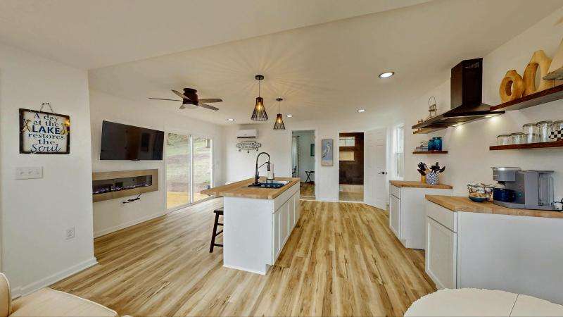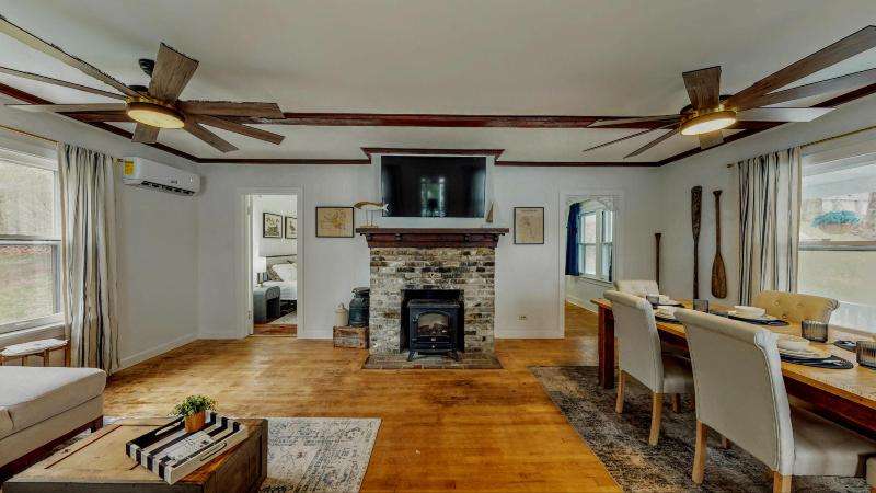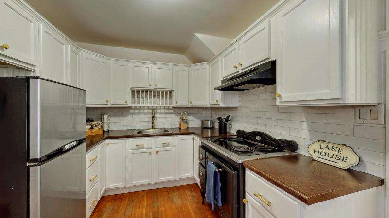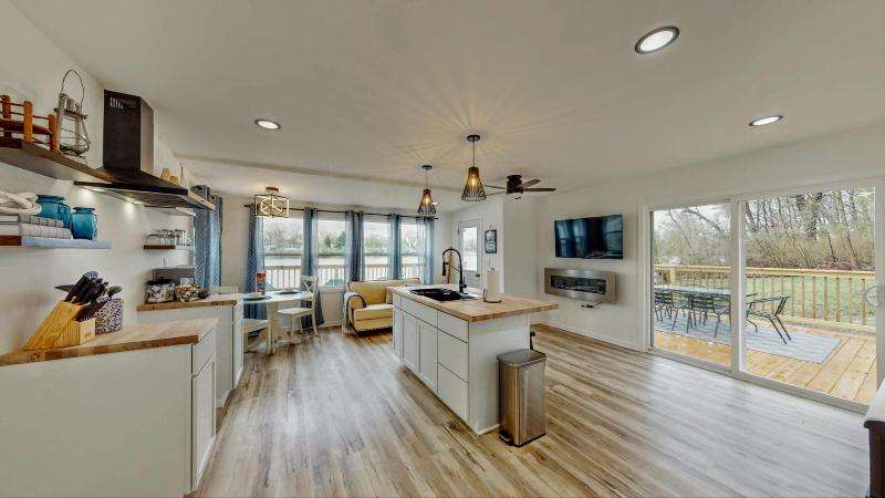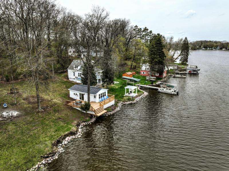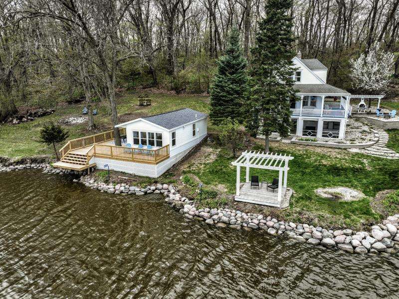 Imagine waking up to the tranquil sounds of Sinissippi Lake on an island! This exceptional property offers a truly unique opportunity to own *two* exquisitely renovated cottages and approximately 150' of pristine lake frontage. The main house is a haven of relaxation, featuring 3 bedrooms, an open living and dining area, wraparound deck for panoramic views, bathroom with a claw-foot tub for indulgent soaks, in-unit laundry, an outdoor shower, and an inviting screened-in porch. The second cottage has been meticulously remodeled, offering a functional and stylish living space, gorgeous bathroom with tiled shower and double vanity, and a large deck that gazes out over the sparkling water. Both cottages come fully furnished and boast new exteriors, private piers, and dedicated garage spaces.
