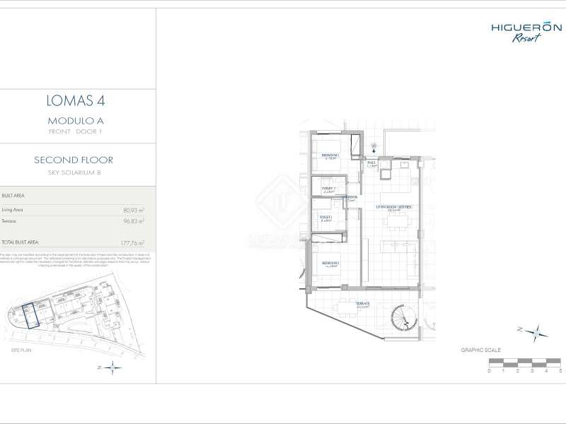 Lomas del Higueron 4 is a new residential complex located in the 5-star Higuerón Resort, the most exclusive Resort on the Costa del Sol, where you will find the 5-star Higuerón Hotel with its 10 restaurants, spa, sports centre, beach club and more. The complex is surrounded by nature and benefits from a swimming pool, gym, co-working spaces, a concierge service, 100,000 m² of gardens and green areas, a 24-hour security service and an exclusive tram service that will take you to the beach, the nearby shopping centre and Carvajal train station. This penthouse apartment has 2 bedrooms and 2 bathrooms and is in a block of three levels with sea views and plenty of privacy in each home. The penthouse has a pleasant airy living area and measures 177 m² plus private terrace space of 96 m², where you can enjoy the wonderful local climate. Sustainability and innovation are two of the driving forces behind the design of these contemporary luxury homes, which also boast elegant modern interiors with the very finest finishes and fixtures, such as Silestone kitchen work surfaces, Teka sanitary ware and heated bathroom floors, just to name a few. Finally, each property comes with two parking spaces and a storage unit. Please contact us for further information.