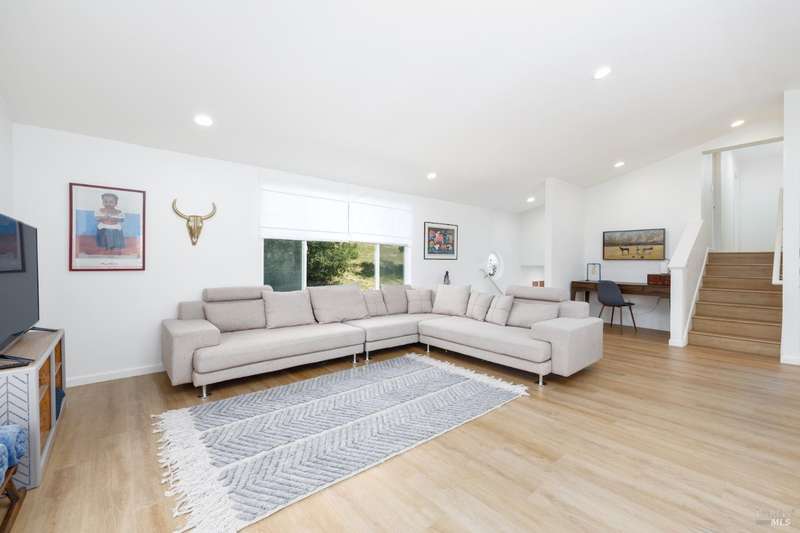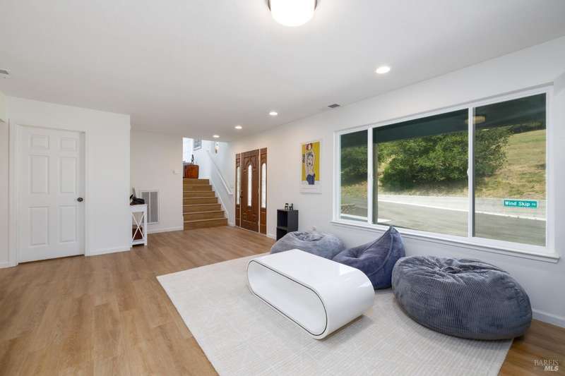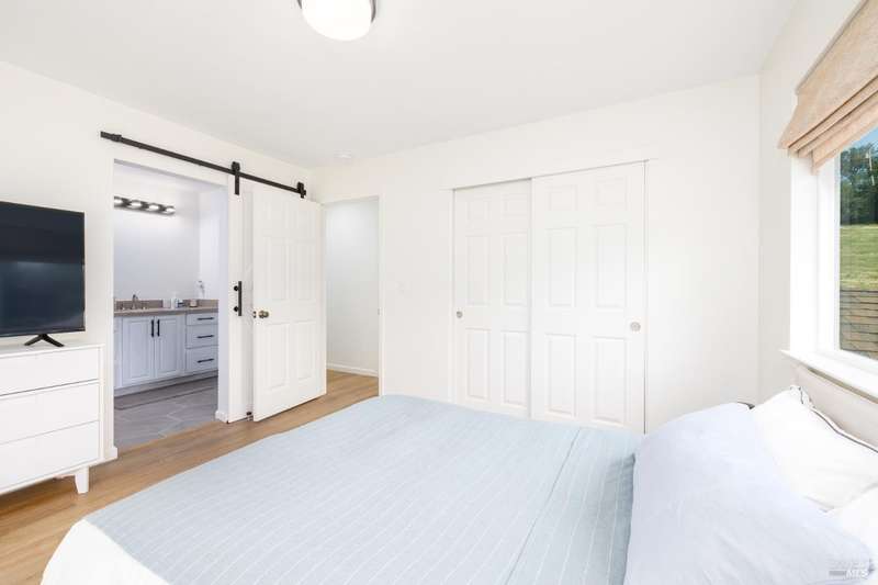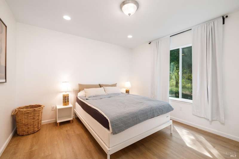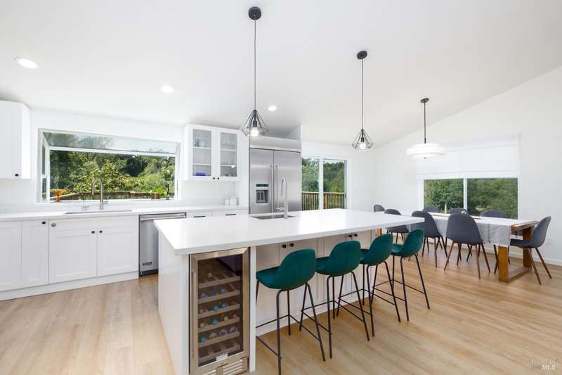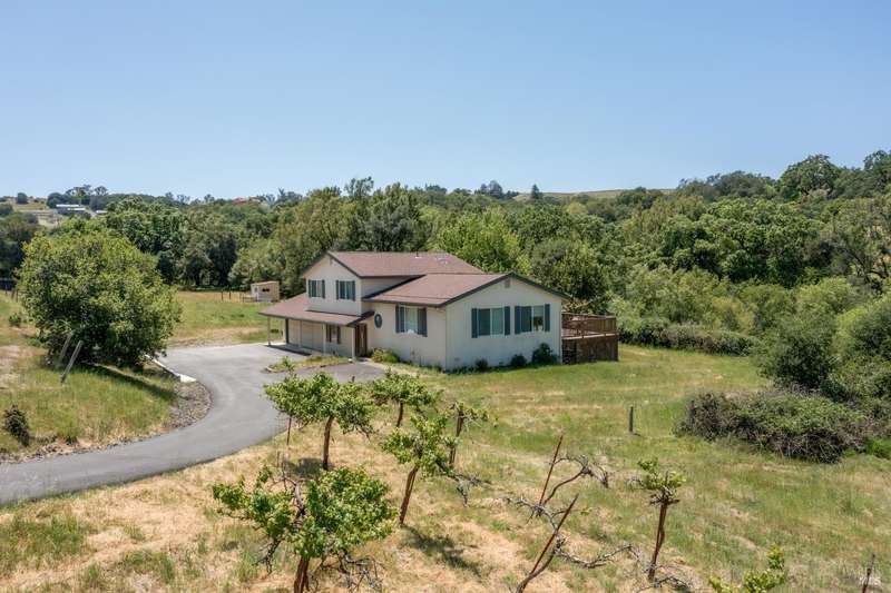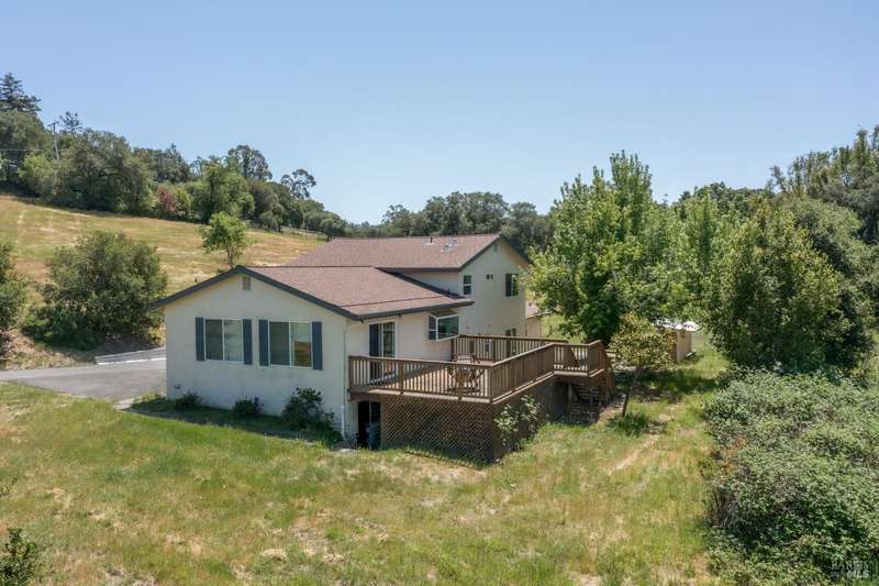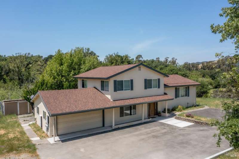 This thoughtfully updated 4-bedroom, 3-bathroom home offers 2,080 SgFt of living space on 4.43 private acres in Sonoma's Bennett Valley. Extensively remodeled, the property has been upgraded for comfort, functionality, and long-term durability. The downstairs flex room is great for kids or entertainment. Recent improvements include a redesigned kitchen with new cabinets, countertops, island, fixtures, and a wine fridge, along with updated bathrooms, new flooring throughout, and fresh interior and exterior paint. Upstairs, the bedrooms were reconfigured to create a dedicated master suite alongside two additional bedrooms, and a new walk-in service closet. The exterior features a repaved driveway with added parking, new concrete flatwork, and a west-facing deck overlooking hillside views. A Tesla Powerwall provides whole-house backup during outages, while the upgraded water system includes a 2,500-gallon tank, booster pump, and pressure tank. A new retaining wall, trench drains, and catch basins improve drainage and reduce the need for sump pumps. Additional updates include WiFi-enabled controls for the Google Nest system, garage door, and smoke detectors. Beautifully updated and ready to enjoy home offers privacy, modern updates, and peaceful surroundings.