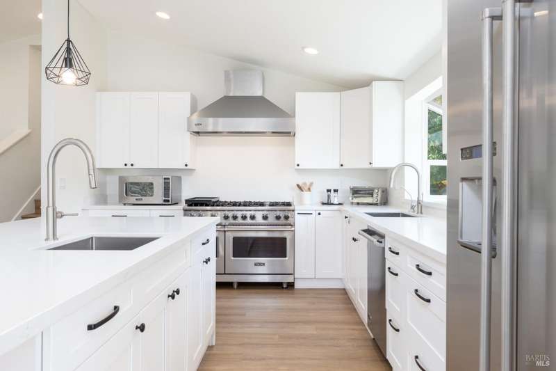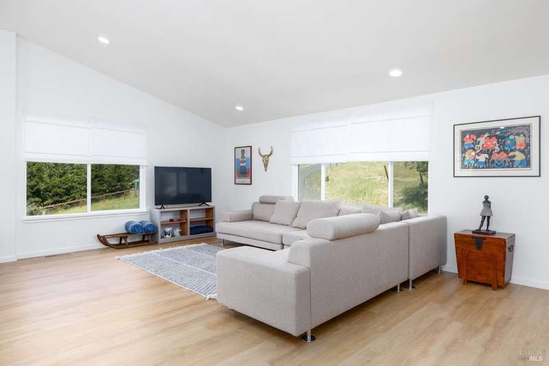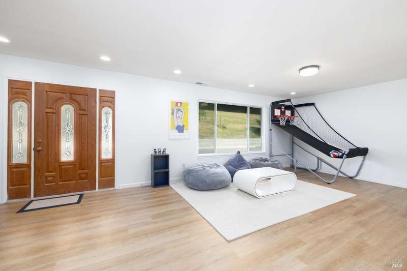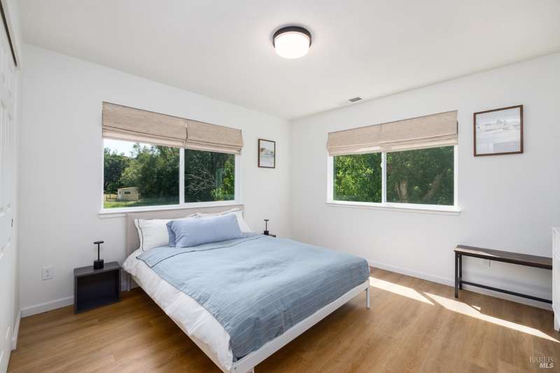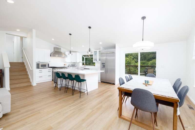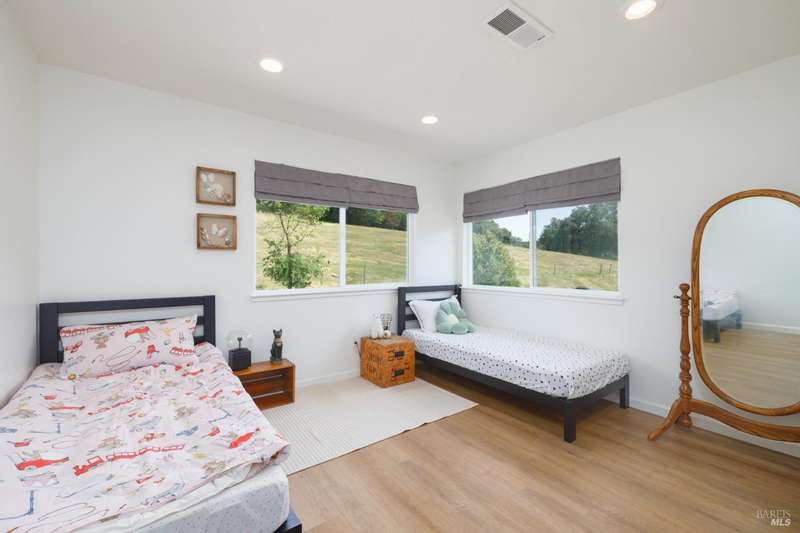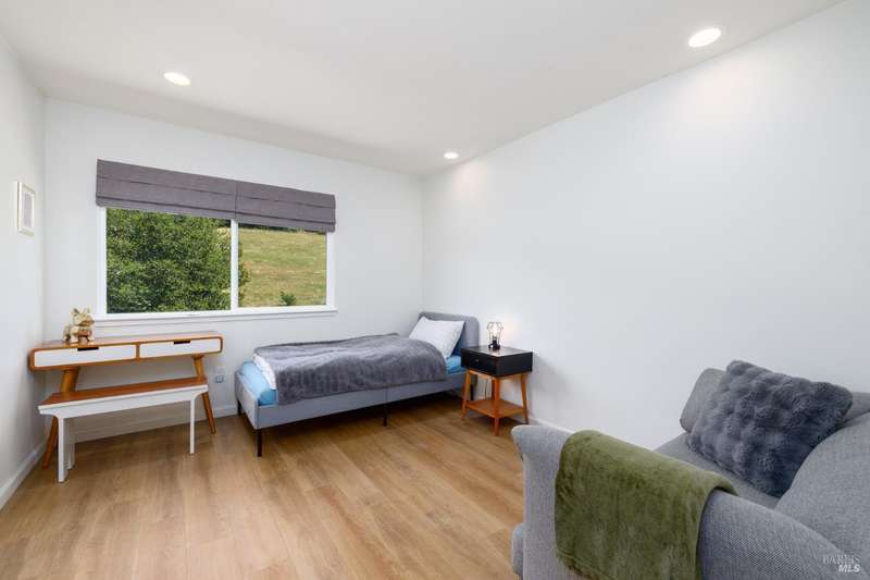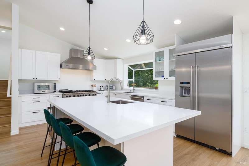 This thoughtfully updated 4-bedroom, 3-bathroom home offers 2,080 SgFt of living space on 4.43 private acres in Sonoma's Bennett Valley. Extensively remodeled, the property has been upgraded for comfort, functionality, and long-term durability. The downstairs flex room is great for kids or entertainment. Recent improvements include a redesigned kitchen with new cabinets, countertops, island, fixtures, and a wine fridge, along with updated bathrooms, new flooring throughout, and fresh interior and exterior paint. Upstairs, the bedrooms were reconfigured to create a dedicated master suite alongside two additional bedrooms, and a new walk-in service closet. The exterior features a repaved driveway with added parking, new concrete flatwork, and a west-facing deck overlooking hillside views. A Tesla Powerwall provides whole-house backup during outages, while the upgraded water system includes a 2,500-gallon tank, booster pump, and pressure tank. A new retaining wall, trench drains, and catch basins improve drainage and reduce the need for sump pumps. Additional updates include WiFi-enabled controls for the Google Nest system, garage door, and smoke detectors. Beautifully updated and ready to enjoy home offers privacy, modern updates, and peaceful surroundings.