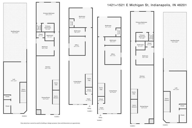 Welcome to 1421 E Michigan St, a rare and refined opportunity to own a brand-new construction masterpiece just minutes from downtown Indy. This striking property features two expansive townhomes (or a full duplex), each offering over 2,600 square feet of sophisticated living space with 4 bedrooms and 2.5 baths per unit. Designed with both elegance and versatility in mind, this home is perfect for luxury house hacking, live in one side while generating passive income from the other. Whether you're interested in long-term rentals, Airbnb, or multi-generational living, the investment potential here is unmatched. Step inside to find sleek modern finishes, sun-filled open layouts, and thoughtfully designed low-maintenance living. Each unit boasts upscale features, including designer kitchens, spa-inspired bathrooms, and spacious living areas that exude style and comfort. But the true showstopper? A massive rooftop deck on the third floor offering breathtaking skyline views of downtown Indianapolis, perfect for entertaining, relaxing, or simply enjoying the city from the privacy of your own retreat. A detached 2-car garage completes the package, adding convenience and functionality. This is more than just a home, it's a lifestyle upgrade and a smart investment in one of Indy's fastest-growing areas.