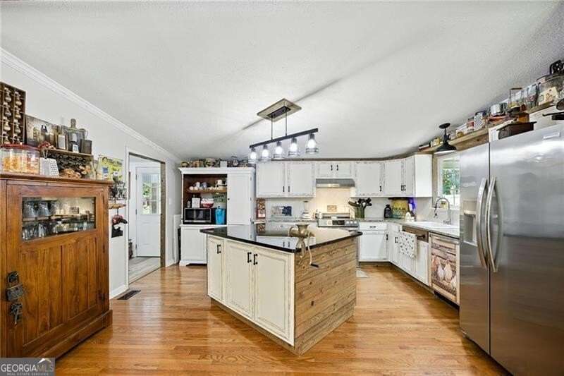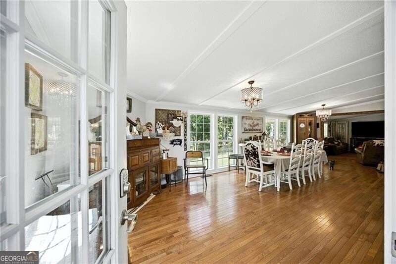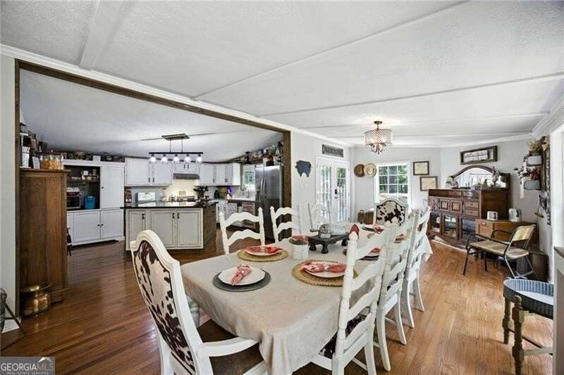 Discover the perfect blend of country charm and modern convenience with this beautifully remodeled Manufactured home set on a permanent foundation. Nestled on 26 acres with 200+ Feet of Hudson River Frontage, this property offers privacy, space, and endless possibilities-all just minutes from downtown Commerce and convenient to I-85. Currently operating as a working mini-farm, the property is fully fenced and features multiple barns and outbuildings, a detached garage, and a 4-stall pole barn ideal for large campers, boats, or farm equipment. A natural pond adds to the serene landscape, while a custom outdoor fire pit or the Hand built pier on the pond makes the perfect gathering spot for family and friends. Animal lovers will appreciate the opportunity to continue the legacy of this farm: while livestock is not included, the seller is willing to leave behind two cherished donkeys (a bonded mother and son pair) for the right buyer. Whether you're seeking a private homestead, hobby farm, or a retreat with abundant space for recreation and storage, this property delivers. With gated drive, gorgeous landscape, and river frontage, it's truly a rare find.