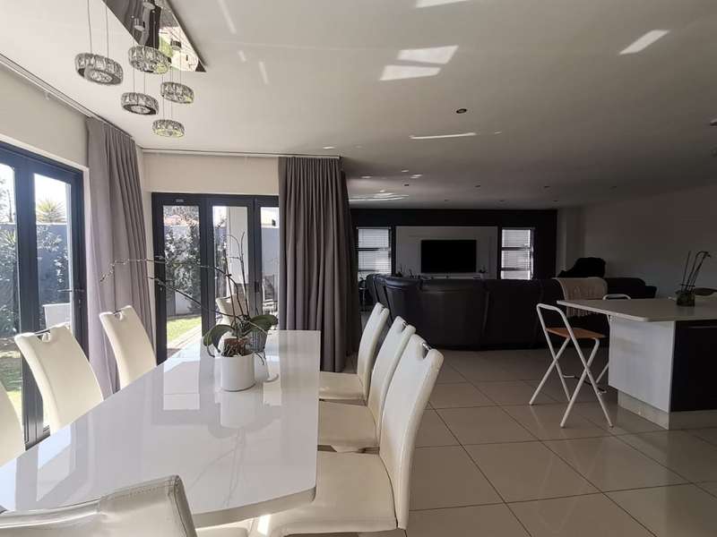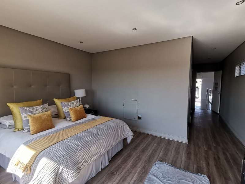 Discover an extraordinary lifestyle in this expansive family residence nestled in the heart of Ormonde - Designed for ultra modern living and effortless family entertaining, this home offers the perfect balance of space, style, and functionality — all within a secure, family-friendly community. Upon entry, you’re welcomed by a grand foyer highlighted by a magnificent skylight that bathes the space in natural light. The family's open-plan living area features superior finishes, a versatile layout, and seamless access to the patio through sleek aluminium sliding doors to a sparkling swimming pool—perfect for braais and outdoor living. Downstairs features an ultra-modern an open plan formal lounge, dining, a separate family sitting area, and the kitchen. Completing the downstairs area is a well-sized bedroom with built-in cupboards and a bathroom, ideal for a guest or elderly family members. The kitchen is spacious, beautiful, and functional. Upstairs, the home continues to impress with a grand staircase that leads to 3 modern bedrooms, each fitted with high-quality tiles for warmth and comfort. The passage is spacious and bright. The main bedroom is luxurious with an en-suite bathroom and a balcony with views. The second bathroom serves the 2 bedrooms. This home is well secured and complete with 1 garage and modern staff quarters. Situated close to amenities and easy access to all main roads and highways..