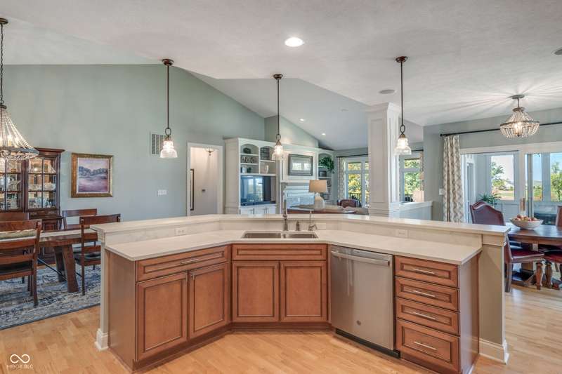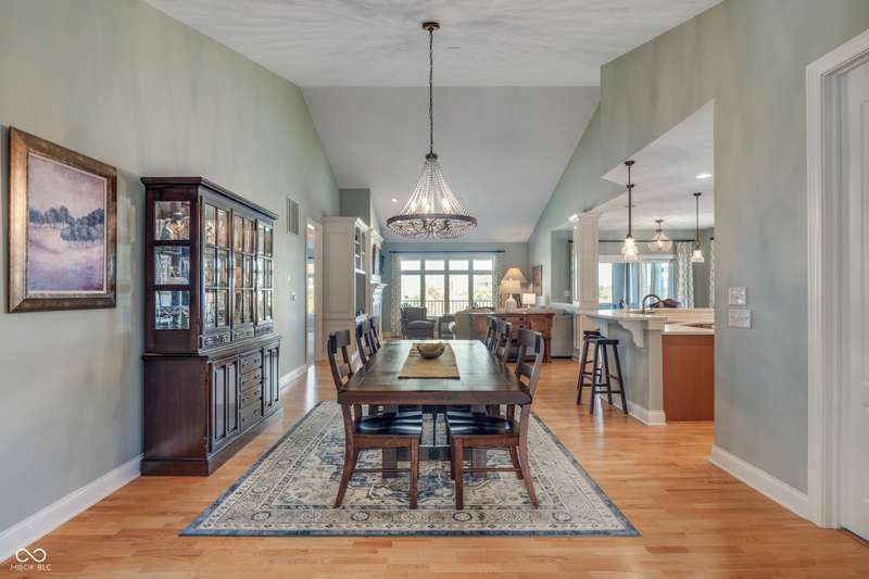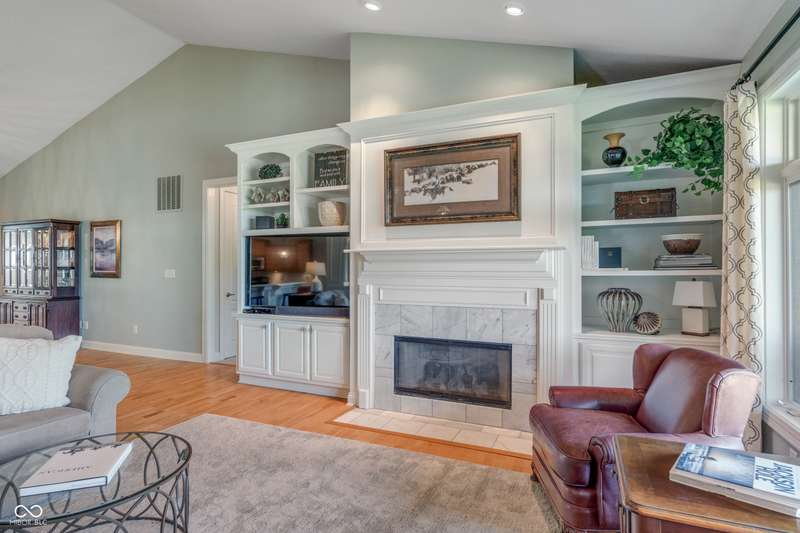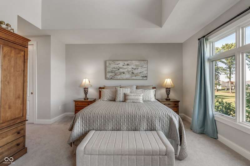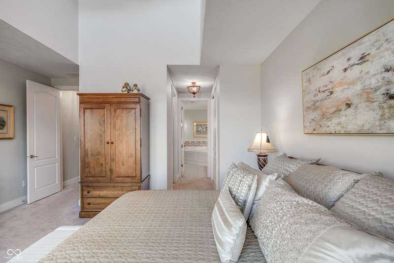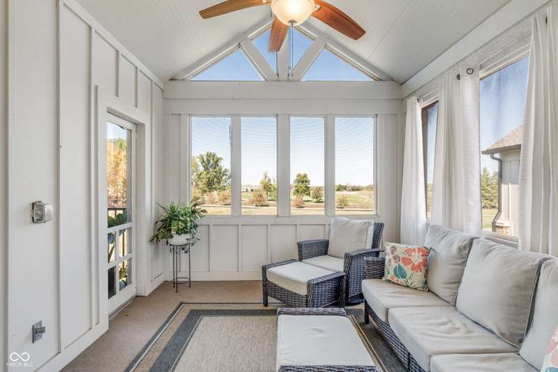 WOW! Luxury living w/impressive views of the private 18-hole Jack Nicklaus Signature designed course in sought after Sagamore. Enjoy a maintenance free lifestyle in the gated community located on the 13th fairway. Welcoming main level & garage entry just steps away from your private elevator for convenience. This high end 2nd level condo offers 3 bedrooms + a den. The large open concept great room/dining room/kitchen flow together making entertaining easy. Soaring ceilings & windows that flood the space w/ natural light and panoramic views overlooking 4 holes on the golf course. Great Room includes cozy fireplace w/ built ins & cathedral ceiling. Kitchen features white quartz counters, tile backsplash, double oven, breakfast bar w/seating for 6, high end cabinets w/dovetailed drawers, pullouts + large pantry. From the Hearth or Breakfast Room step out to a screened in porch + covered balcony to enjoy morning coffee and stunning sunsets. Den w/built ins offers a cozy retreat/office space. Owners suite provides more gorgeous views, towering ceiling, his & her closets. Ensuite bath w/comfort height quartz vanities, soaking tub & shower. 2 additional bedrooms, one w/direct ensuite bath, the other currently used as a family room. 10' ceilings, 8' solid doors, quality craftsmanship, size & THE VIEW, nothing compares! Sellers extending a Sagamore Club Membership featuring on site dining, pools, pickleball, tennis, workout facility & classes, social events & kids club. Convenient location just a short drive to everything you need. So much to love!