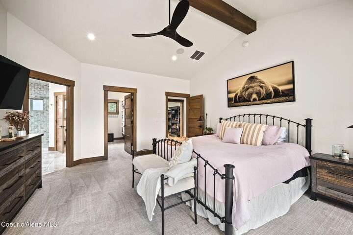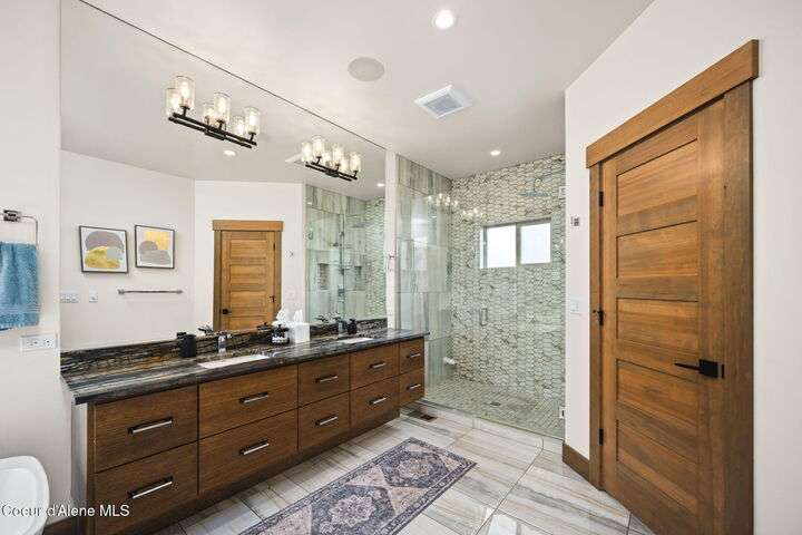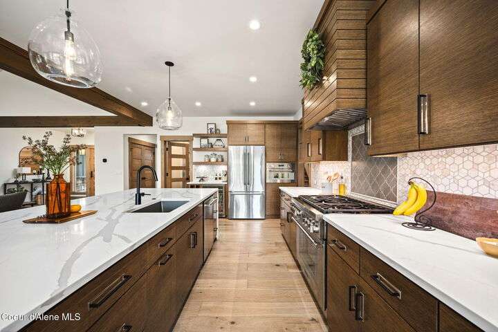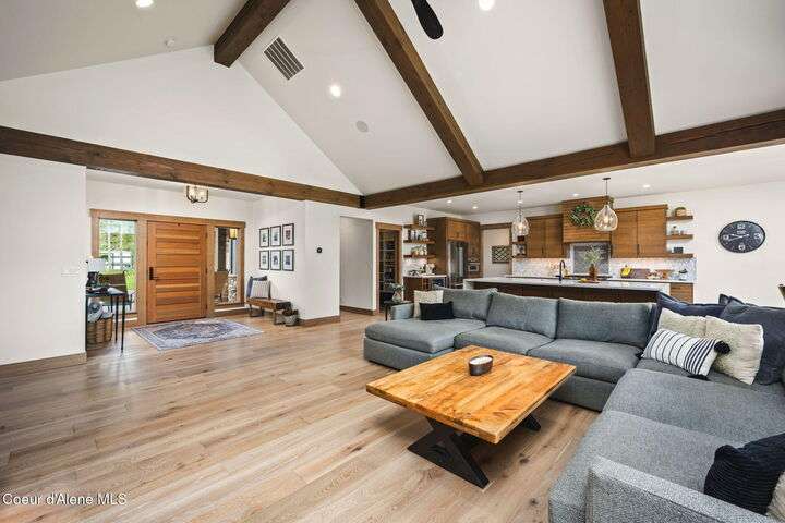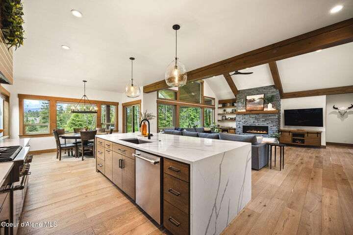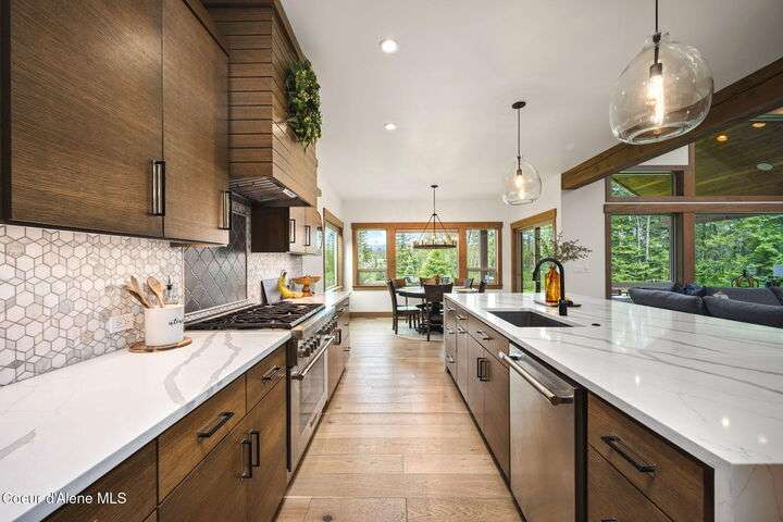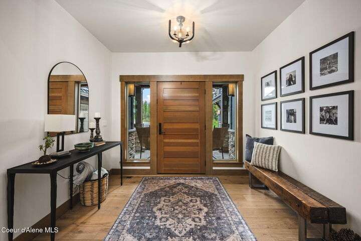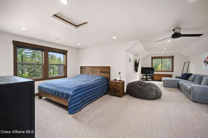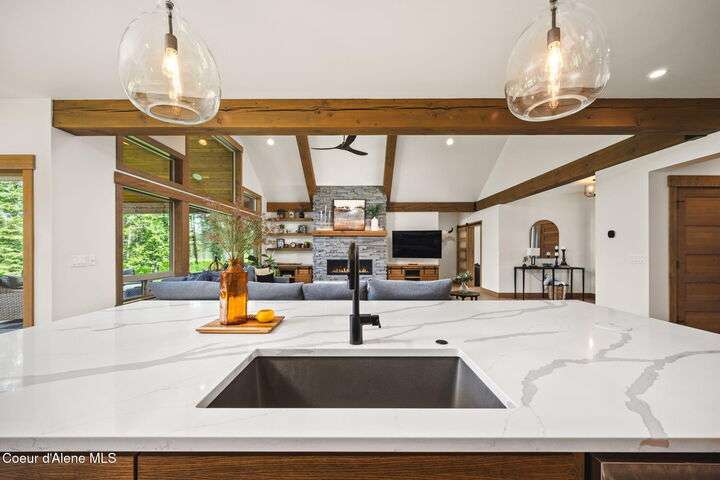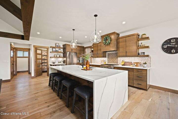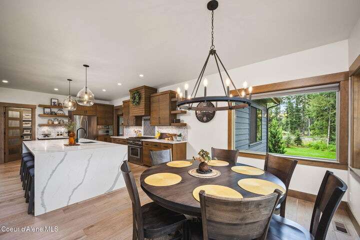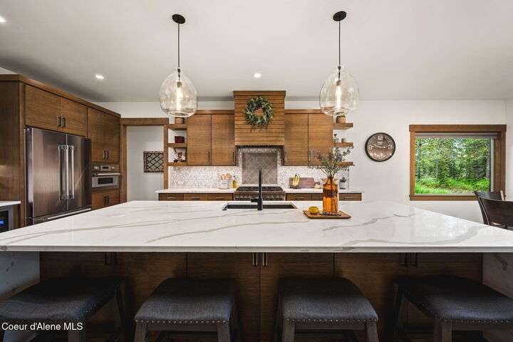 LUXURY 4 BED, 3.5 BATH, 3,290 SQ FT HOME ON 4.57 ACRES WITH STUNNING RATHDRUM MOUNTAIN VIEWS. Spacious & open main-level living with upstairs bonus room room(that doubles as 4th bedroom) + wet bar & full bath. Premium finishes include cedar fascia, timber/shingle accents, masonry exterior, and solid wood entry. Perfect for entertaining, with a chef's kitchen featuring quartz waterfall island, tile backsplash, walk-in pantry, and WiFi-enabled Thermador appliances. Enjoy the linear gas fireplace, hardwood floors, office, powder room, and whole-house audio. Spa-like primary suite with tile shower and soaking tub. Outdoors: covered patio, landscaped yard with bluetooth enabled irrigation system, natural gas fire pit with flagstone surround, paved drive, landscape lighting, and dusk-to-dawn LED exterior lights. Plus: a 30x50 heated shop with 12x30 loft, 12x15 enclosed man cave, and 12x50 lean-to. Fiber Optic internet, 20 minutes to Kootenai Health. THIS HOME CHECKS ALL THE BOXES!