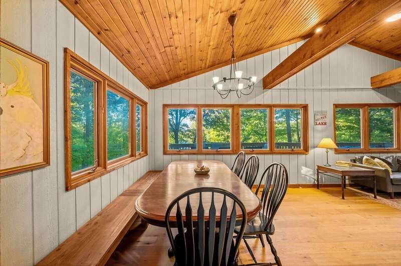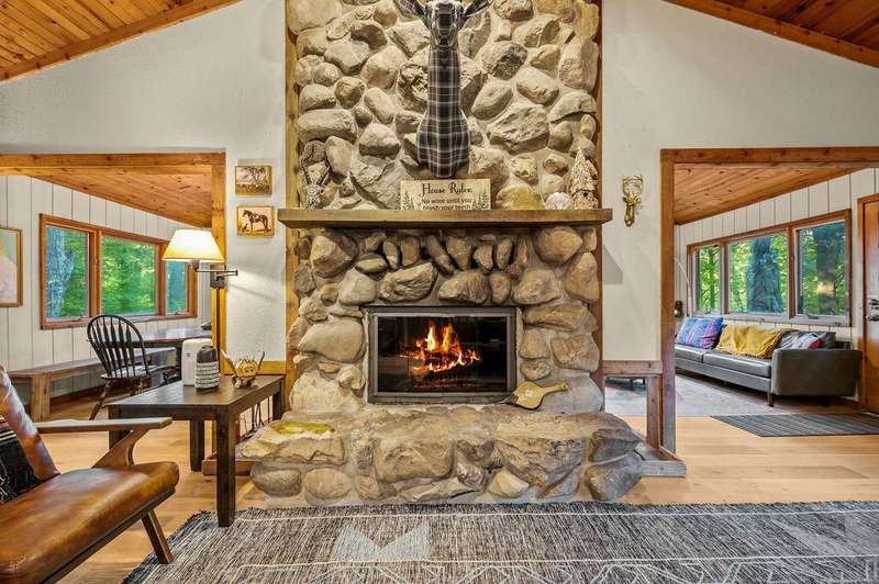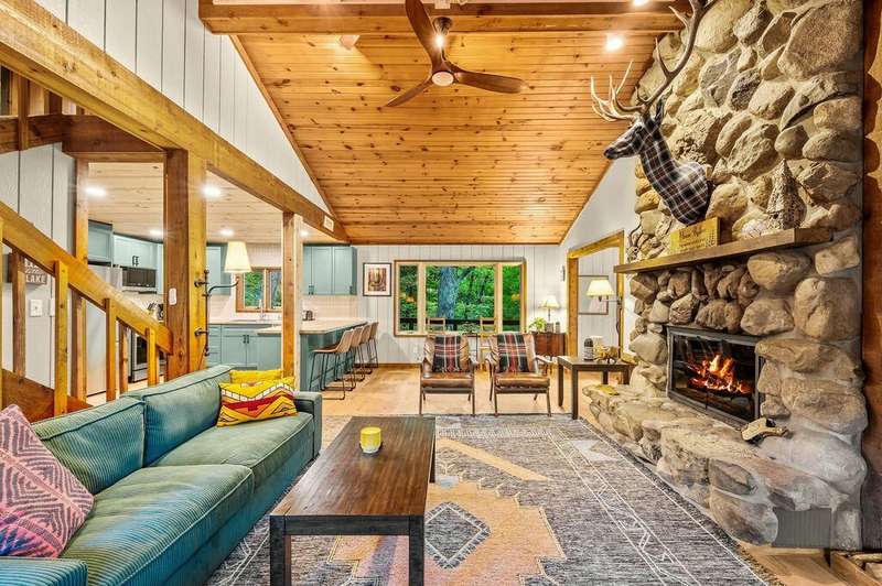 Welcome to your Corey Lake waterfront retreat, the perfect blend of privacy, space, and modern updates. Nestled among trees on the calm channel just off the open lake, this fully furnished home is ideal as a second home, investment property, or full-time lakeside residence.Enjoy panoramic lake views from the main floors open layout featuring new flooring, a BRAND-NEW KITCHEN, and a custom-tiled bathroom. A stunning floor-to-ceiling fieldstone fireplace anchors the living room, flowing naturally into the dining area and family room that opens to a wraparound upper deck ? perfect for entertaining. Downstairs, a large walkout lower level includes a family room and a spacious rec room/guest suite, offering flexible sleeping and gathering areas for guests. Upstairs, the private primary suite includes a loft-level retreat and a walk-in closet large enough for extended stays.Step outside to your private dock on the peaceful channel, ideal for boating, kayaking, or simply relaxing before heading out to the 630-acre, all-sports Corey Lake. A three-car attached garage provides secure storage for vehicles, boats, and gear. This property has a proven short-term rental history and comes FULLY FURNISHED (excluding artwork), making it an immediate, turnkey investment opportunity or weekend escape. Conveniently located near US-131, just two hours from Chicago and minutes from Swiss Valley Ski Resort, this home offers year-round recreation and lasting value. BUY WITH PEACE OF MIND: 1 YEAR HOME WARRANTY IS INCLUDED!